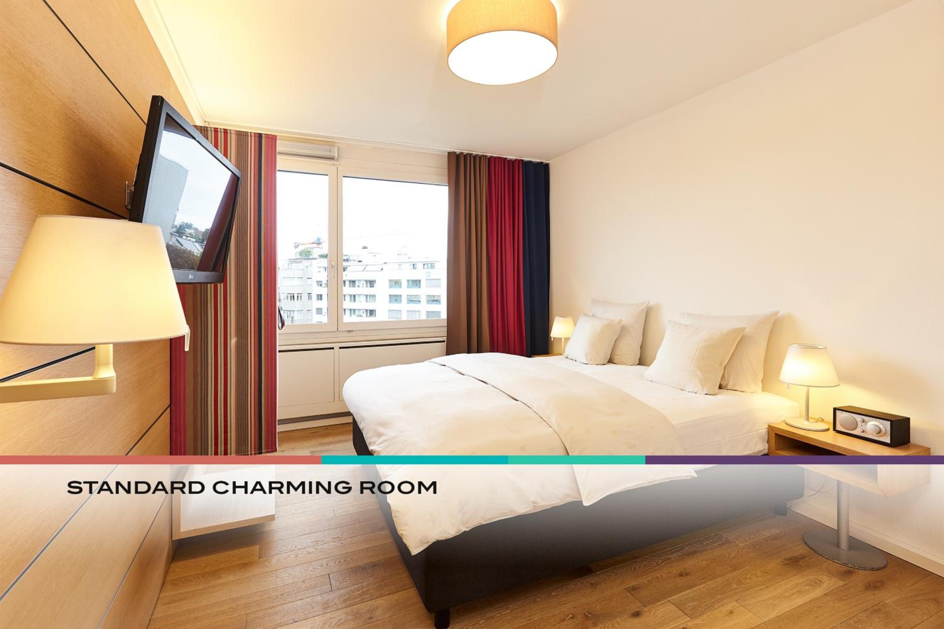 Guests receive a BaselCard upon check in. This Guest Card includes complementary use of Public Transport within Basel City and surroundings (Zone 10, 11, 13, 14 & 15, including Euroairport), free WiFi, as well as discounts on admission to cultural and leisure activities.
