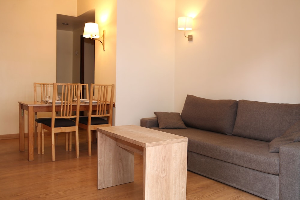 Located in a residential area walking distance from the Plaça and other major tourist spots. We stayed in a 2 bedroom unit with good air conditioning and lots of small cafes and restaurants in the area.