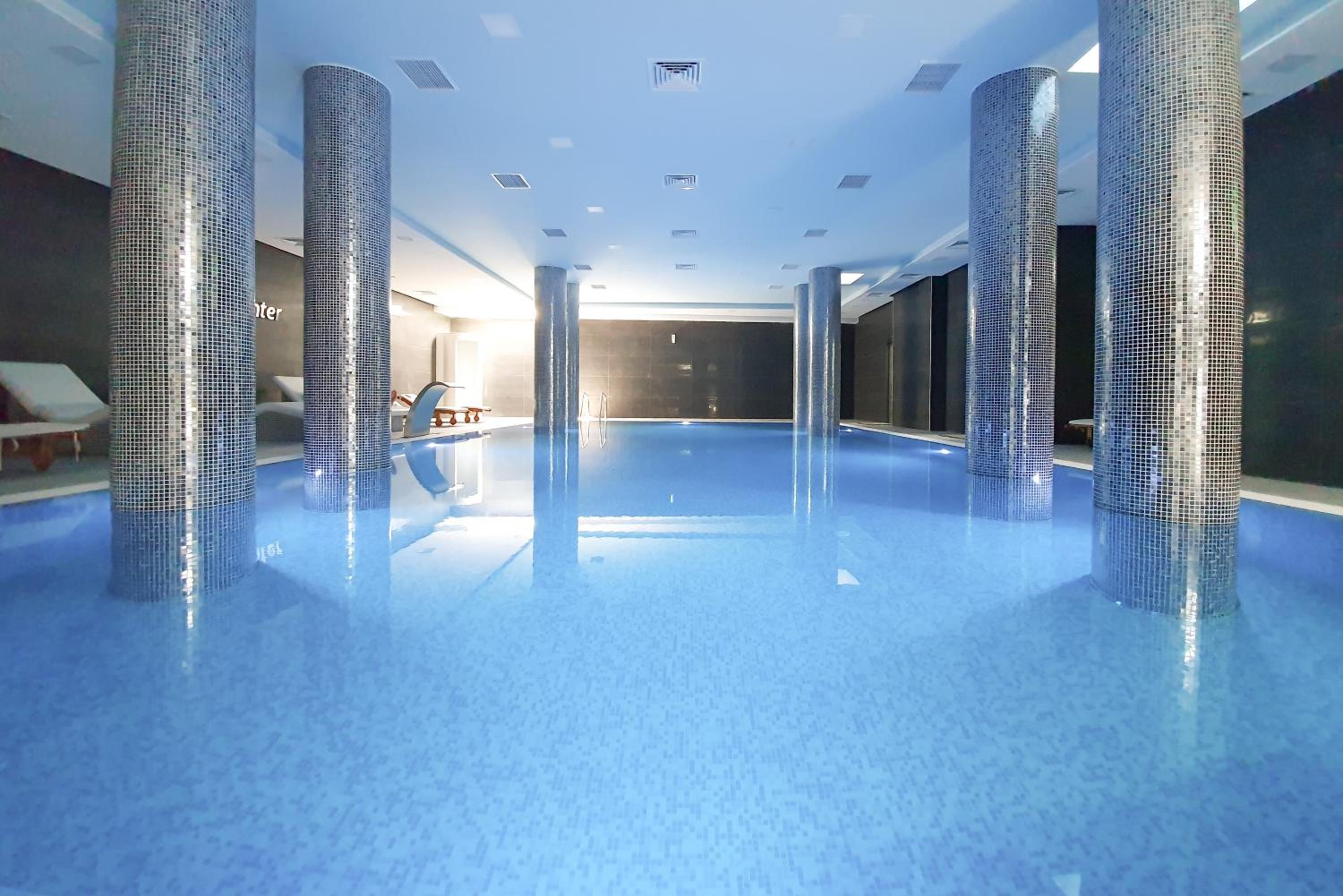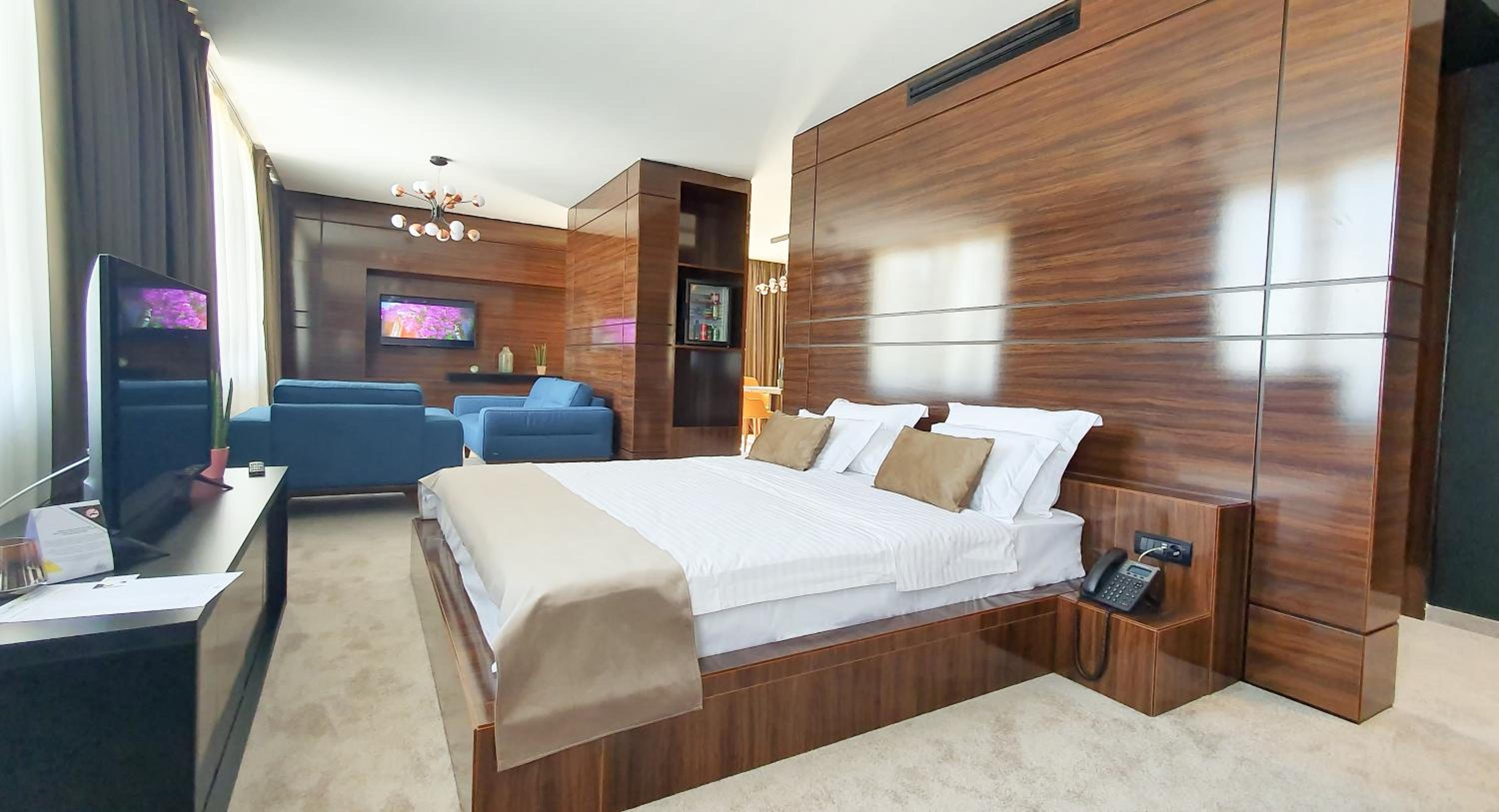 Experience 5-star luxury at NB Hotel&Spa in Tetovo. Indulge in elegantly designed guest rooms equipped with modern amenities such as air conditioning, flat-screen TV, and a private bathroom. Relax in the indoor pool, sauna, and hot tub for the ultimate pampering experience.
