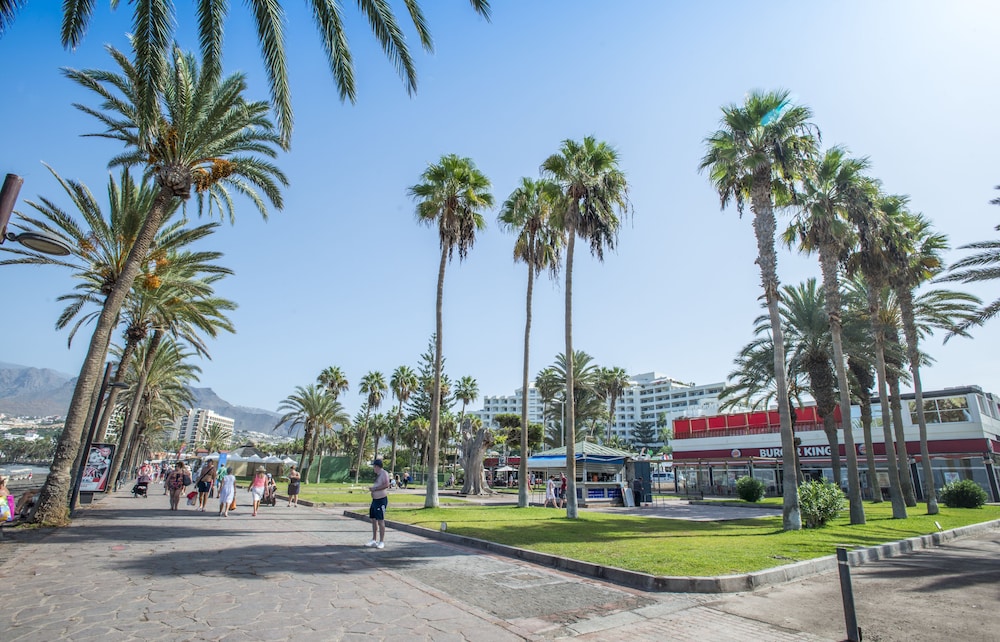 Explore nearby beaches including Troya Beach and Torviscas Beach. Experience various leisure activities at Water Sports Tenerife and Golf Las Americas.