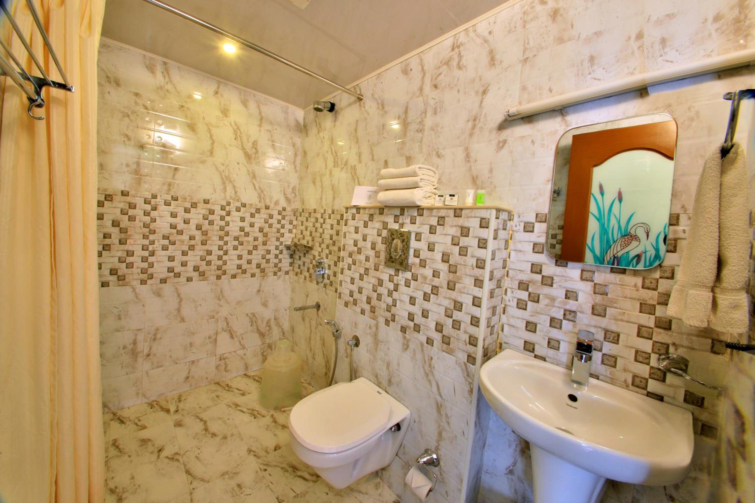 Monsoon Grande offers elegantly designed rooms with modern amenities like flat-screen TVs, minibars, and comfortable seating areas. The attached bathrooms are stocked with complimentary toiletries for a relaxing stay.