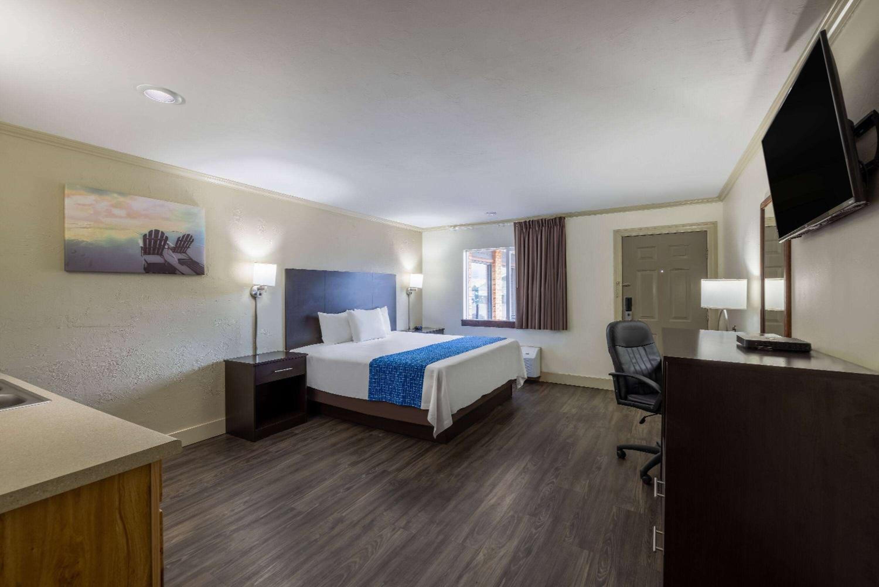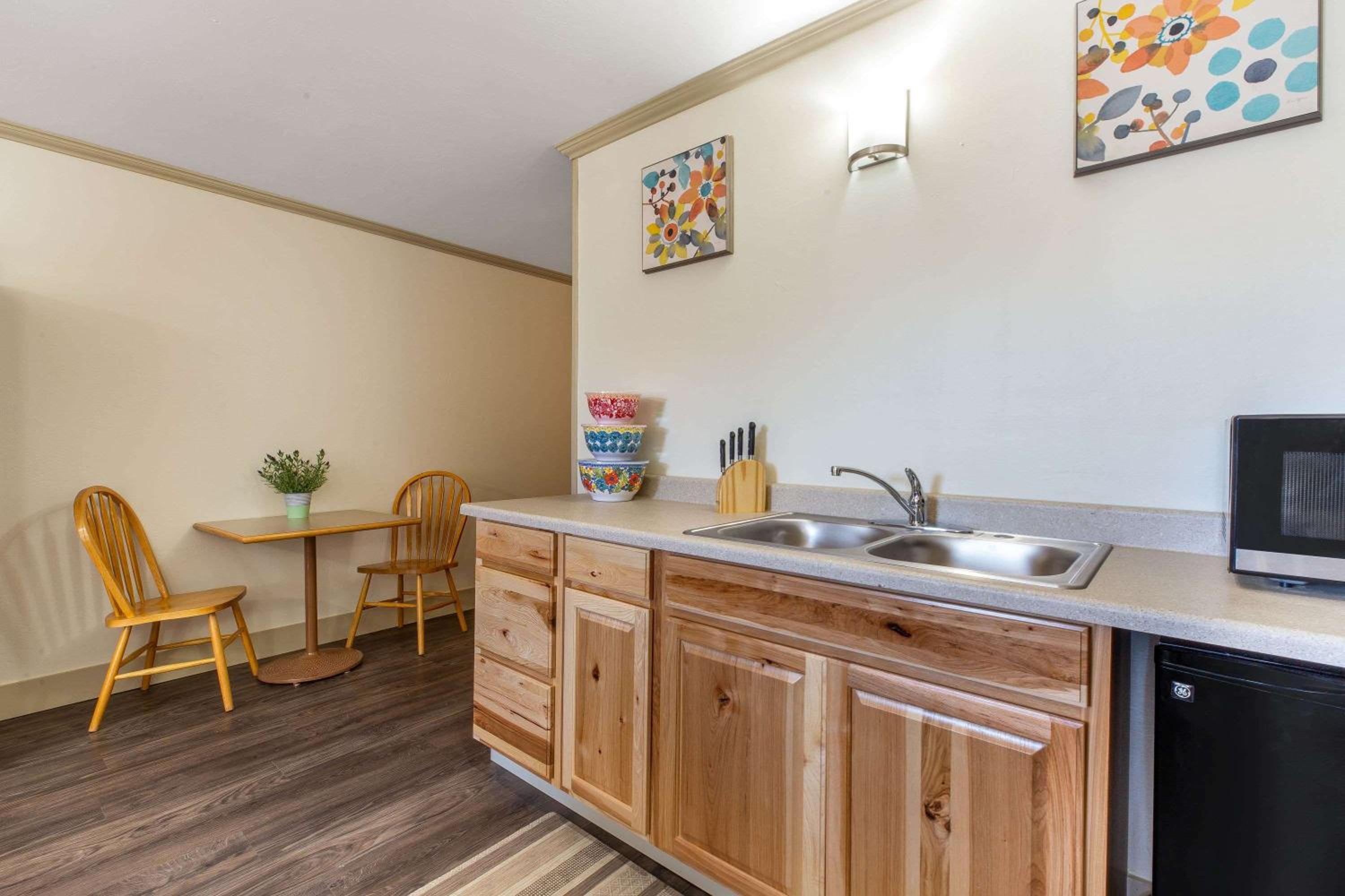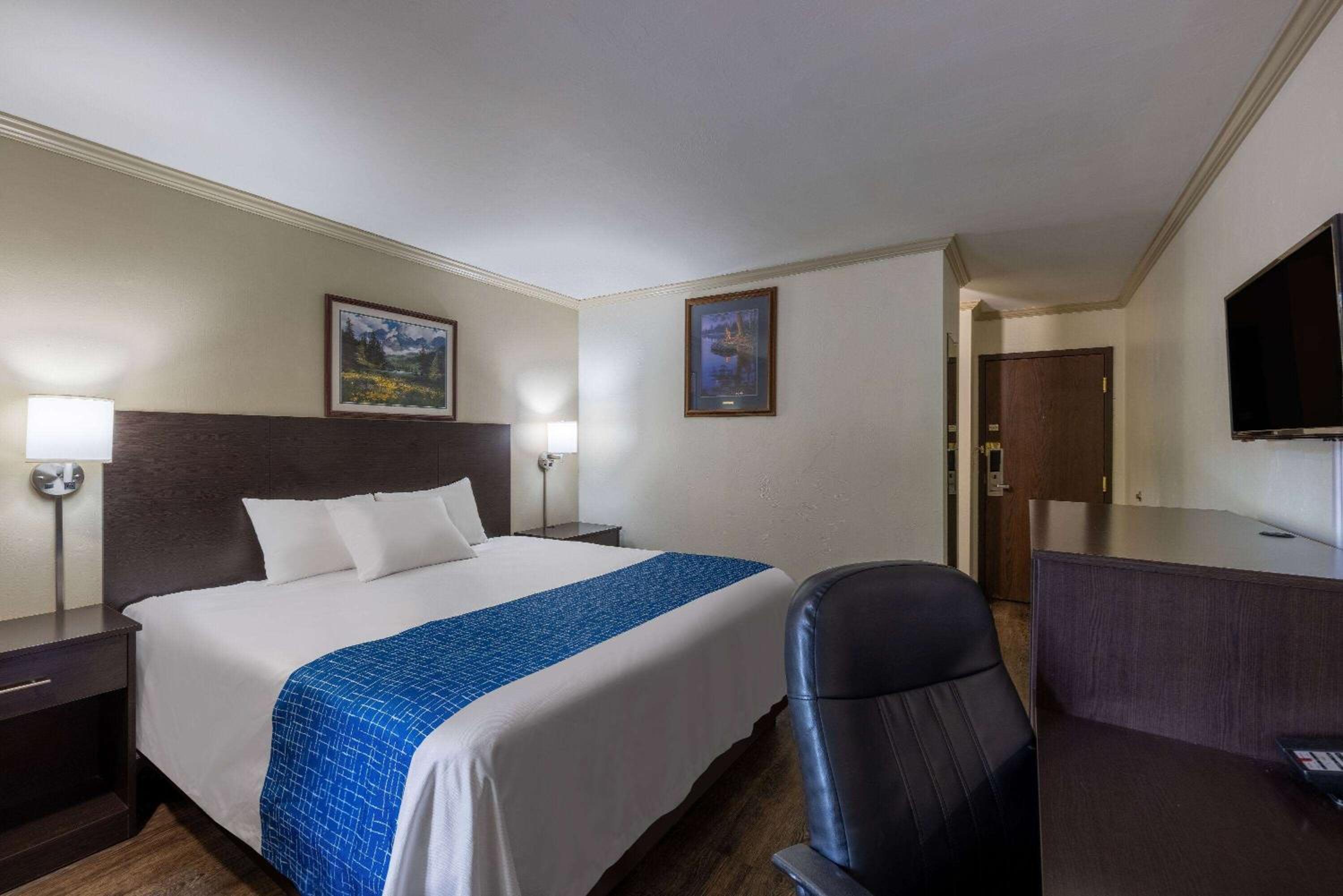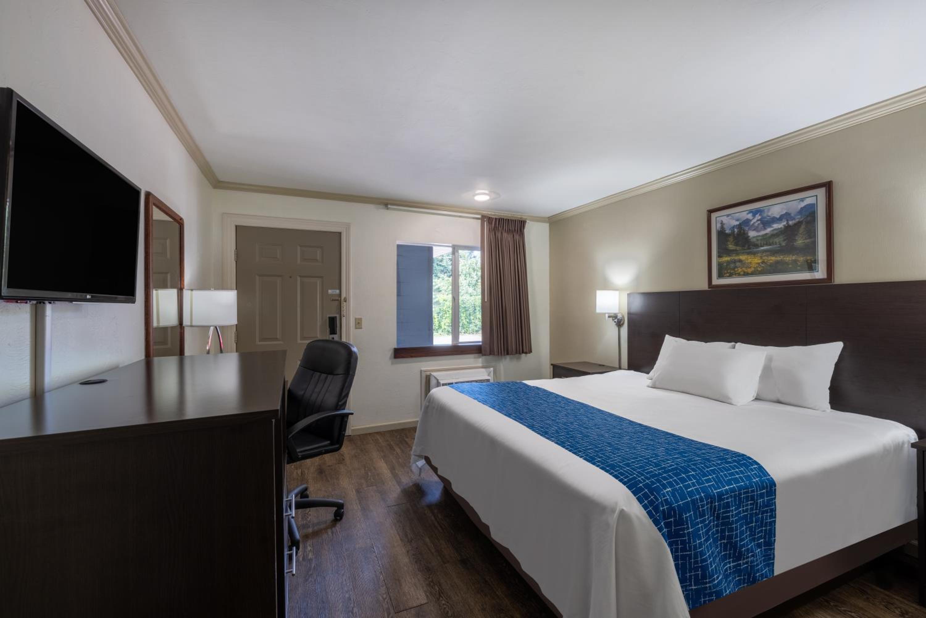 Booked because it was advertised with indoor pool. Pool was closed for repairs. Couldn't change the booking so we were stuck. This is the second time in just a few months that booking showed a pool and/or hot tub and it was locked up. The entry was horrible. So dark I had to feel the wall to get to it, and the snow was not cleared which made it very difficult for two elderly people to navigate. The room was also advertised with coffee makers. There were none. When I asked about it the receptionist said they took them out over a year ago. So why not take them off the ammenities? There were 3 tiny pillows on the king size bed. Not sure why there is a window because all you see is a wall and a roof that totally blacks out the entry and window. The bed was horrible and the walls were filthy and gross. Also spots on the floor that were dirty. The TV control held the batteries in with tape. The inside door opened to a hallway with an open, dirty laundry shoot that is the first thing you see when you open that door. I am so glad I didn't have any children with us. It was a horrible stay, wrongly advertised and a waste of money. I took picture to verify. To post a description that is false should be addressed and fined.