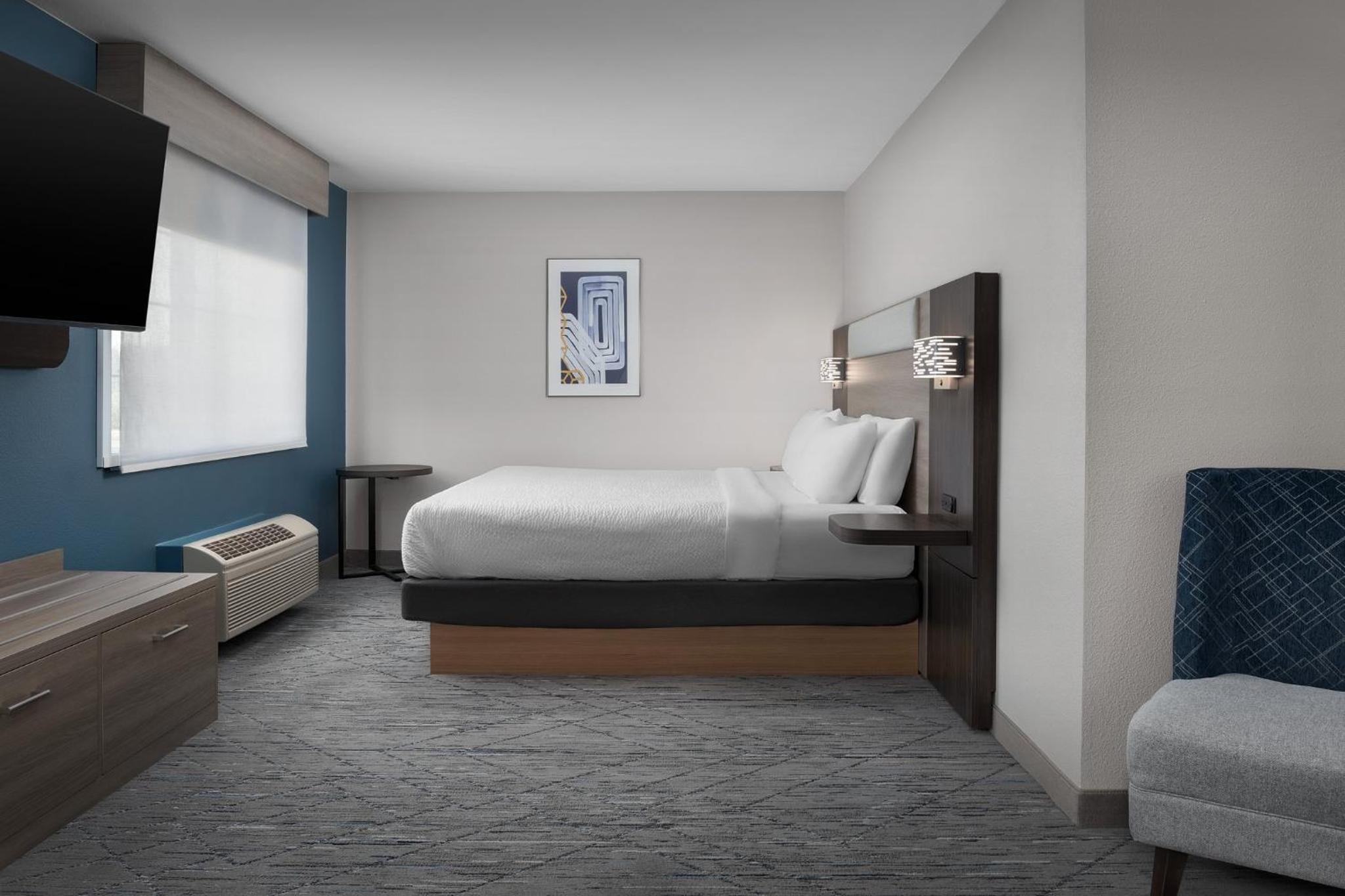 Each guest room at Holiday Inn Spokane Airport is equipped with free Wi-Fi, cable TV, work desk, refrigerator, and coffee-making facilities, ensuring a relaxing stay.
