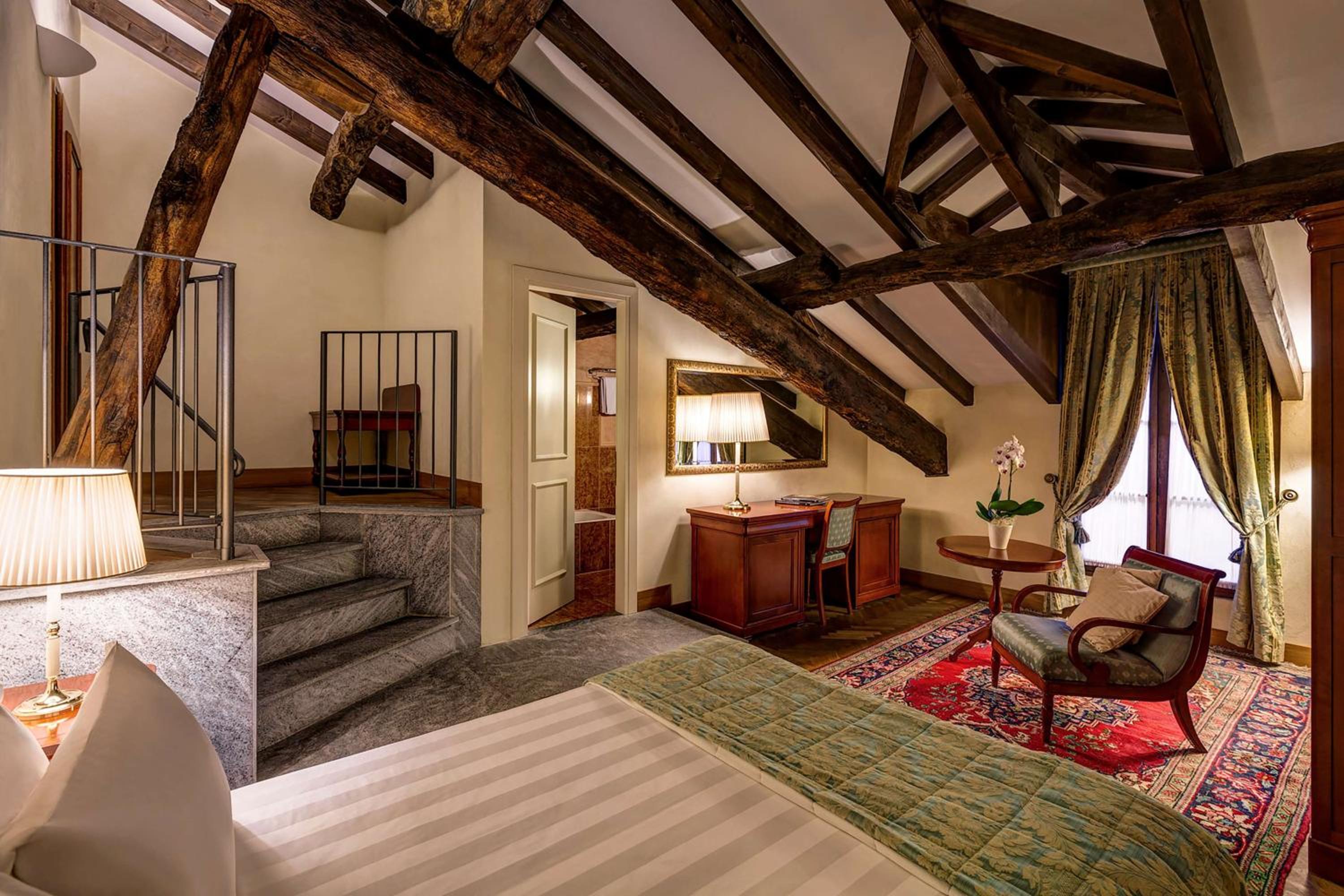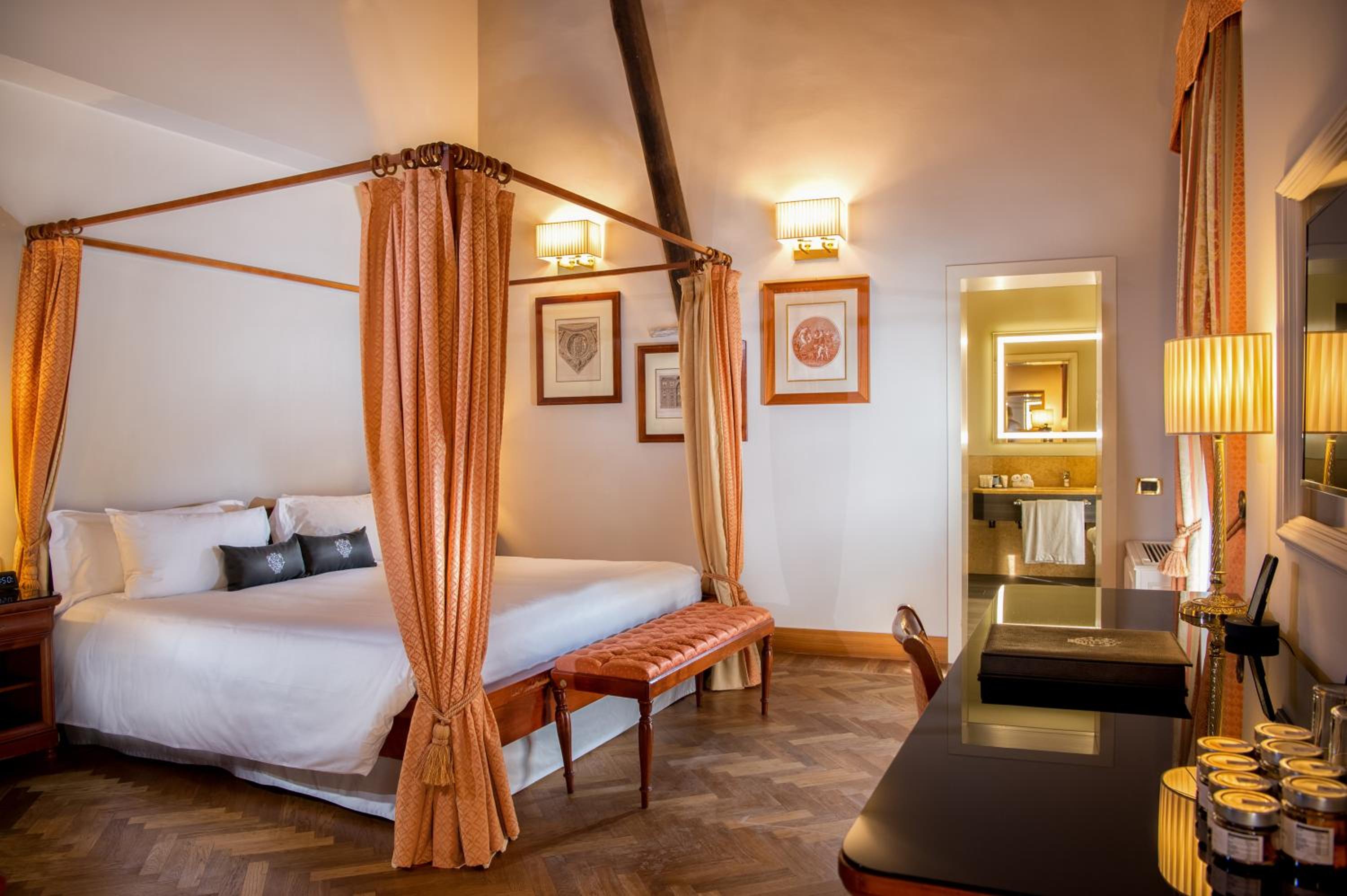 Luxurious Accommodations: Experience classic rooms adorned with opulent fabrics and elegant dark-wood furniture. Each room is equipped with modern amenities such as air conditioning, complimentary internet access, and satellite TV.