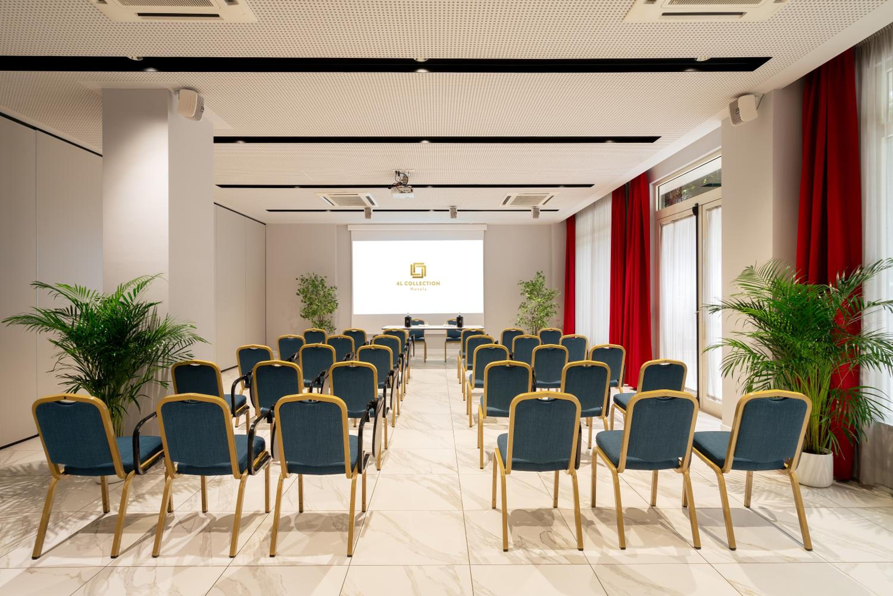 Hotel American Palace Eur, located just 50 meters from the Laurentina Metro Station, offers a unique blend of history and modern convenience. Guests can enjoy drinks in the serene green courtyard surrounded by fruit trees, creating a peaceful oasis in the bustling city.