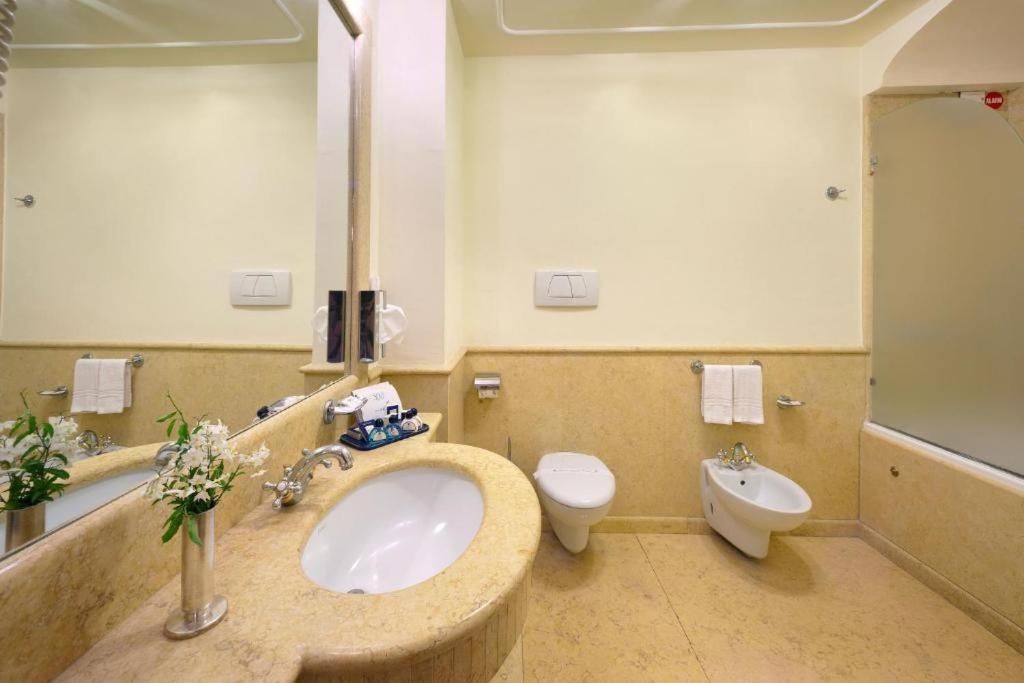 Grand Hotel La Pace offers elegantly furnished rooms with modern amenities such as TVs, air conditioning, and some with spa baths and balconies.