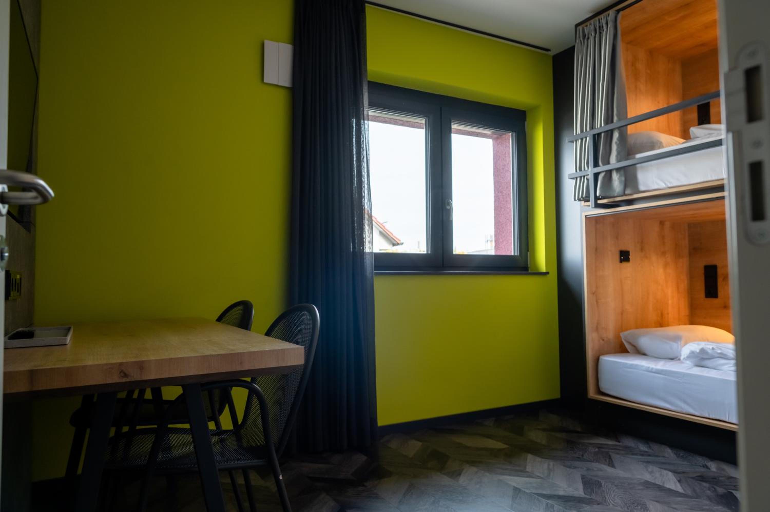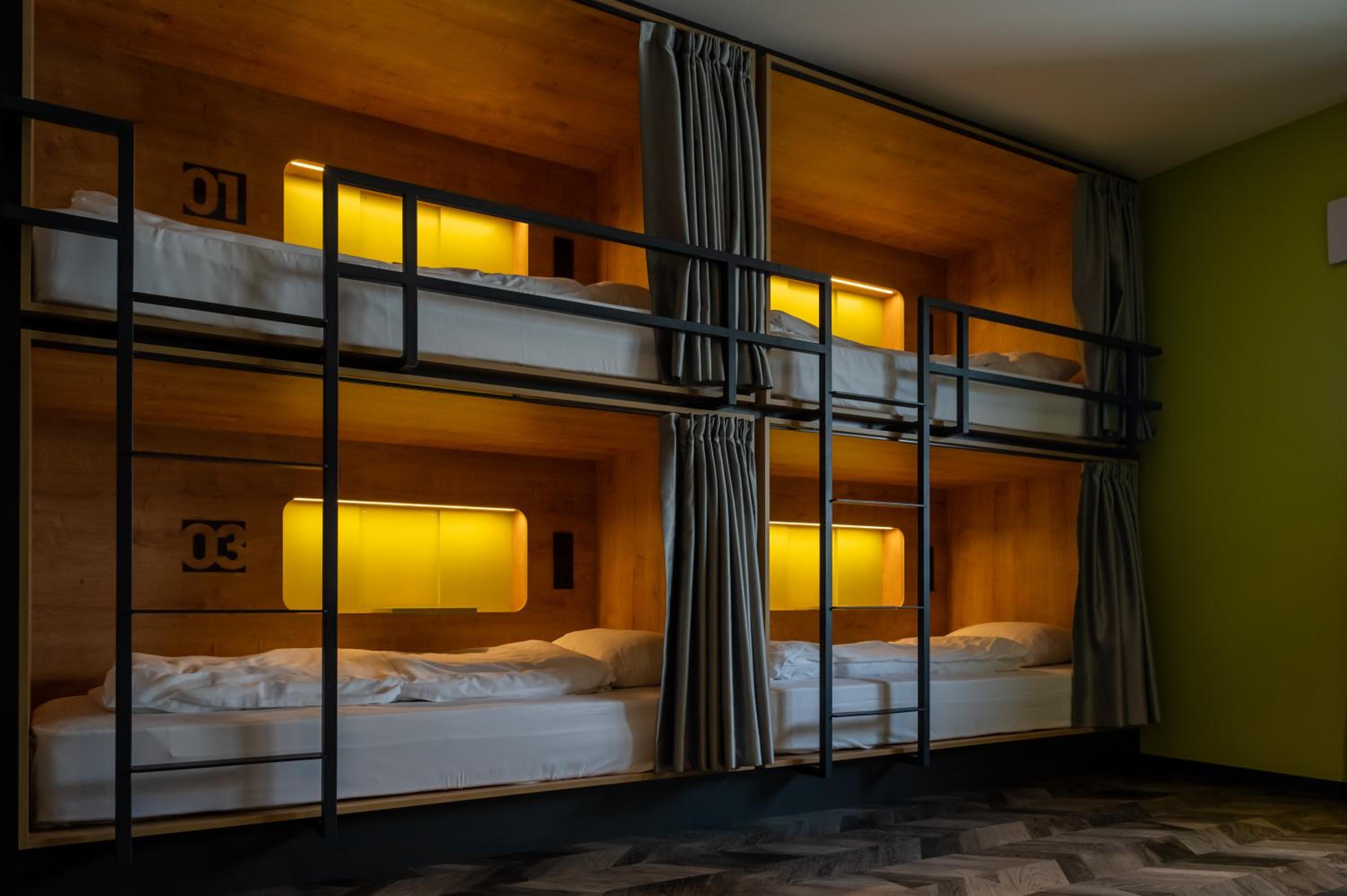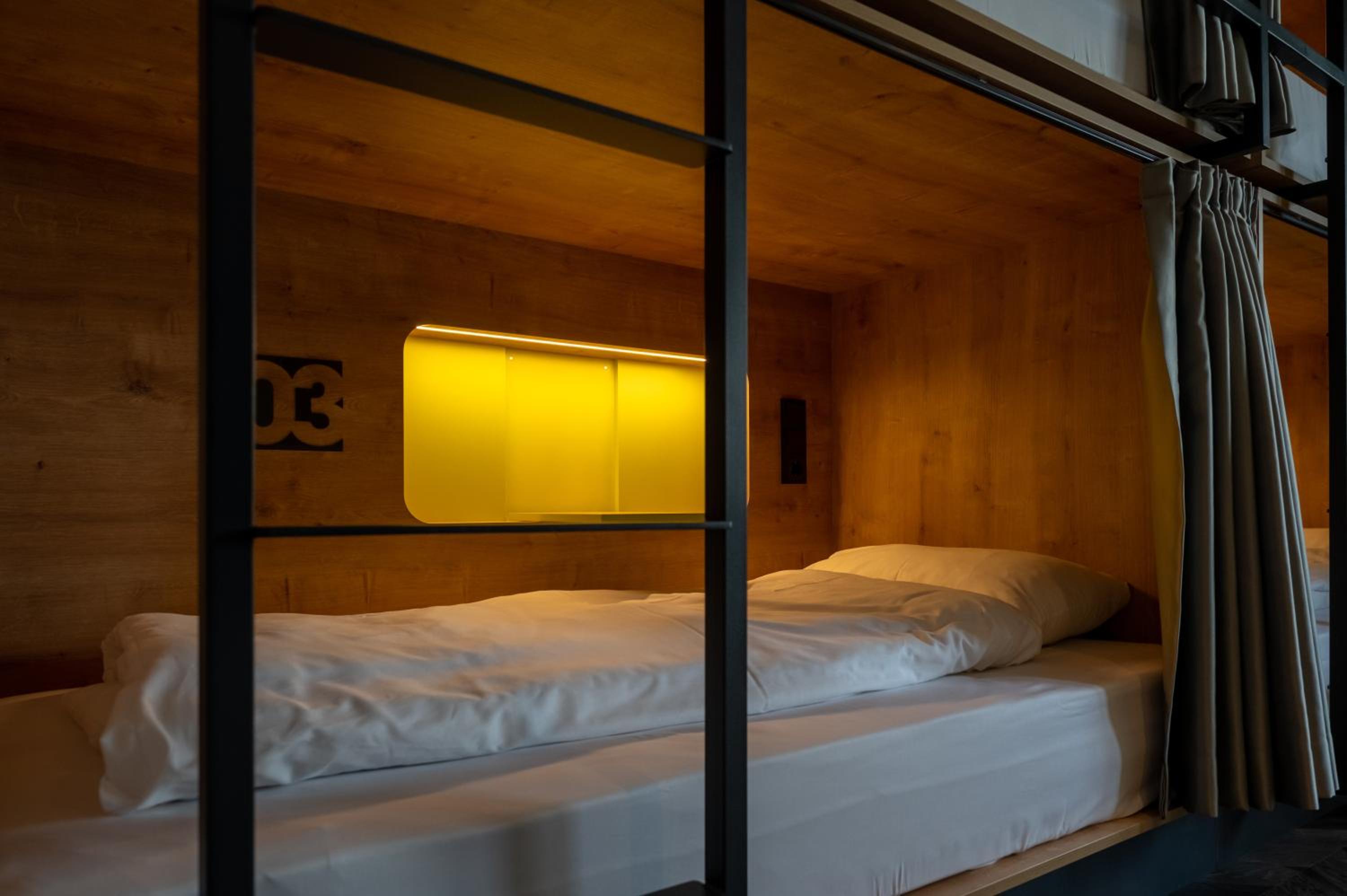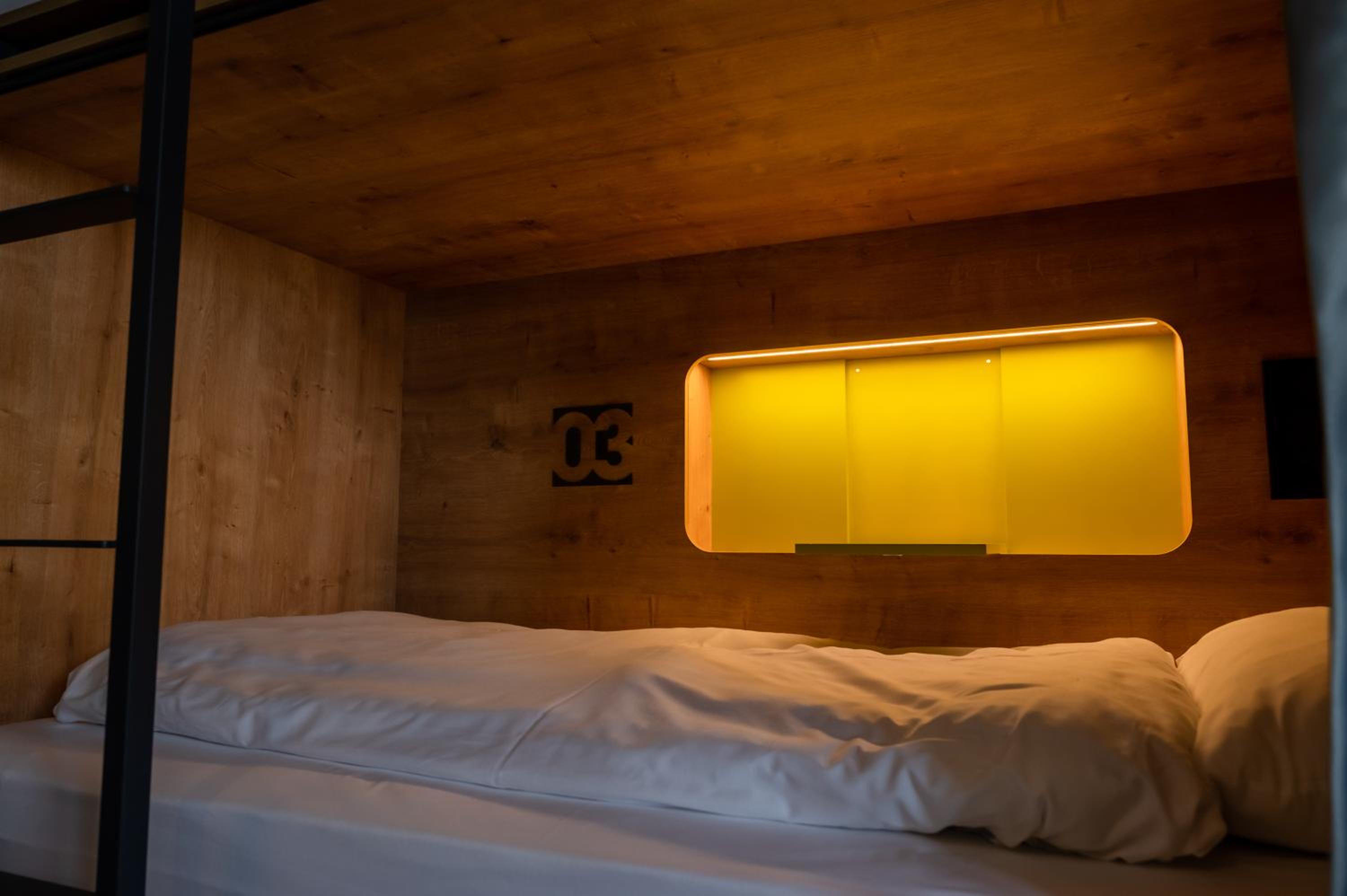 Bedden zijn fantastisch, ieder een eigen hokje met bed, lampje stopcontact etc. Ideaal als je met kids een overnachting wil doen onderweg naar wintersport. Aardige eigenaar die een prima cappuccino maakt voor je in de ochtend, en een goed gesprek.