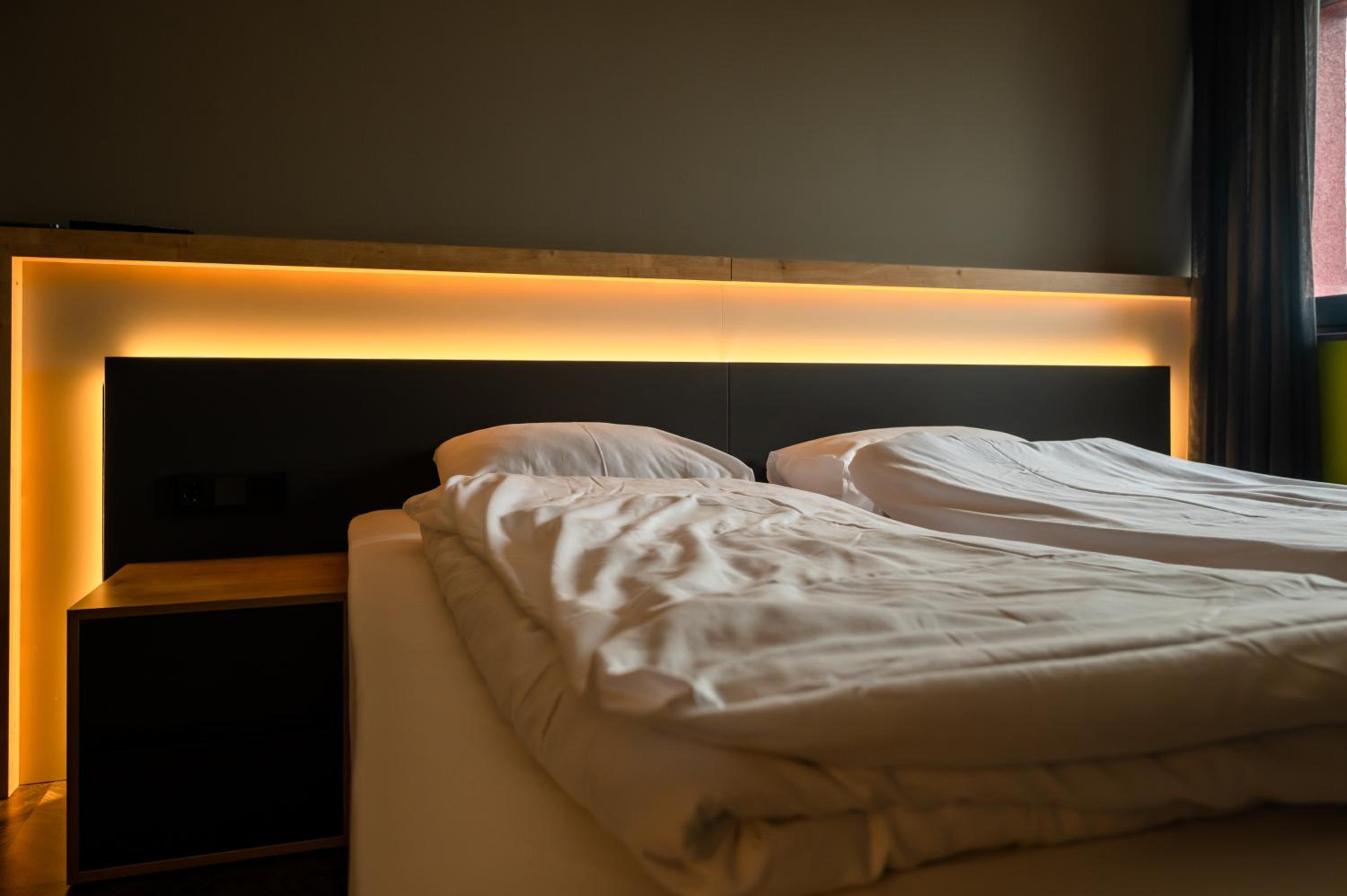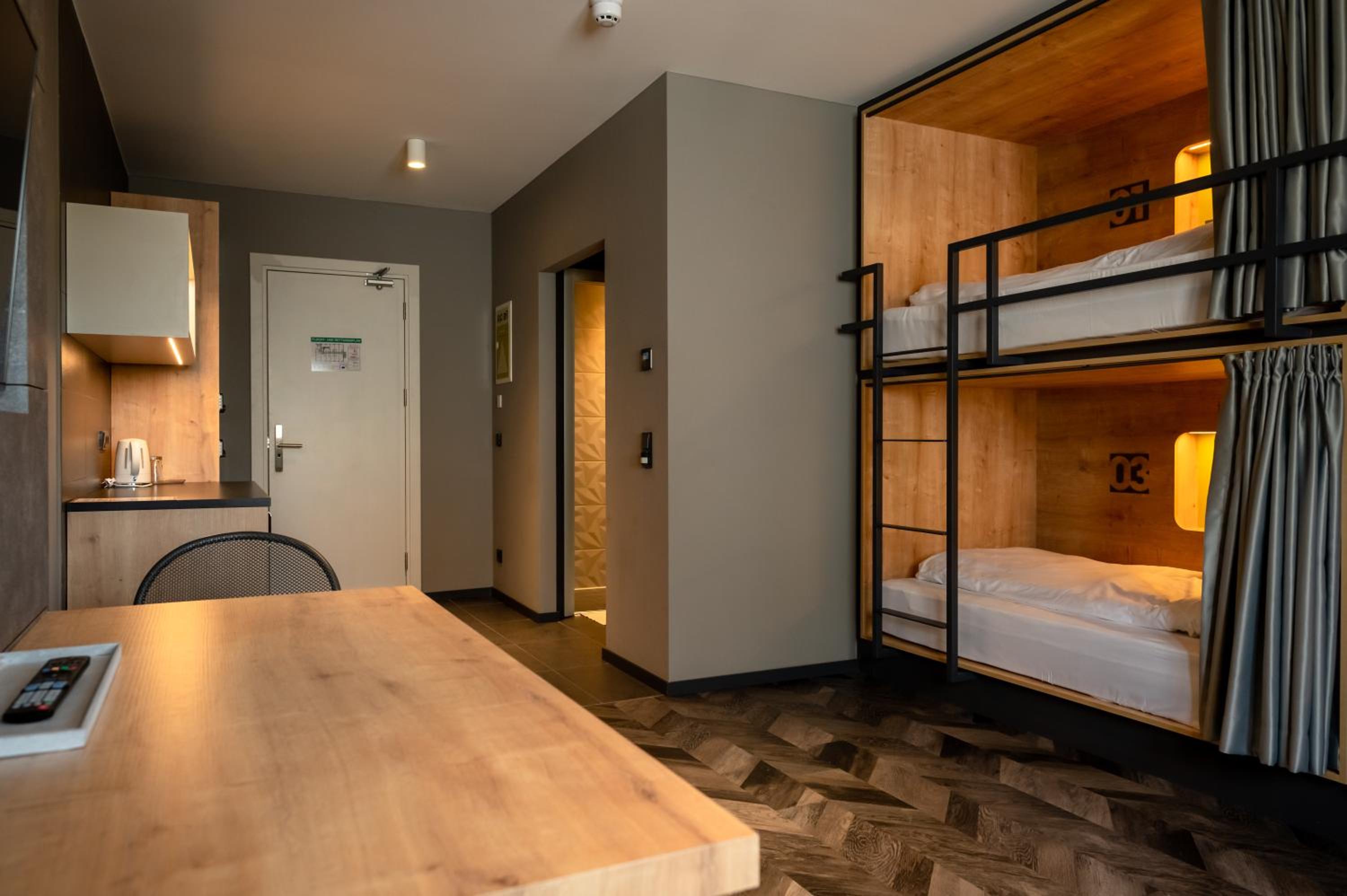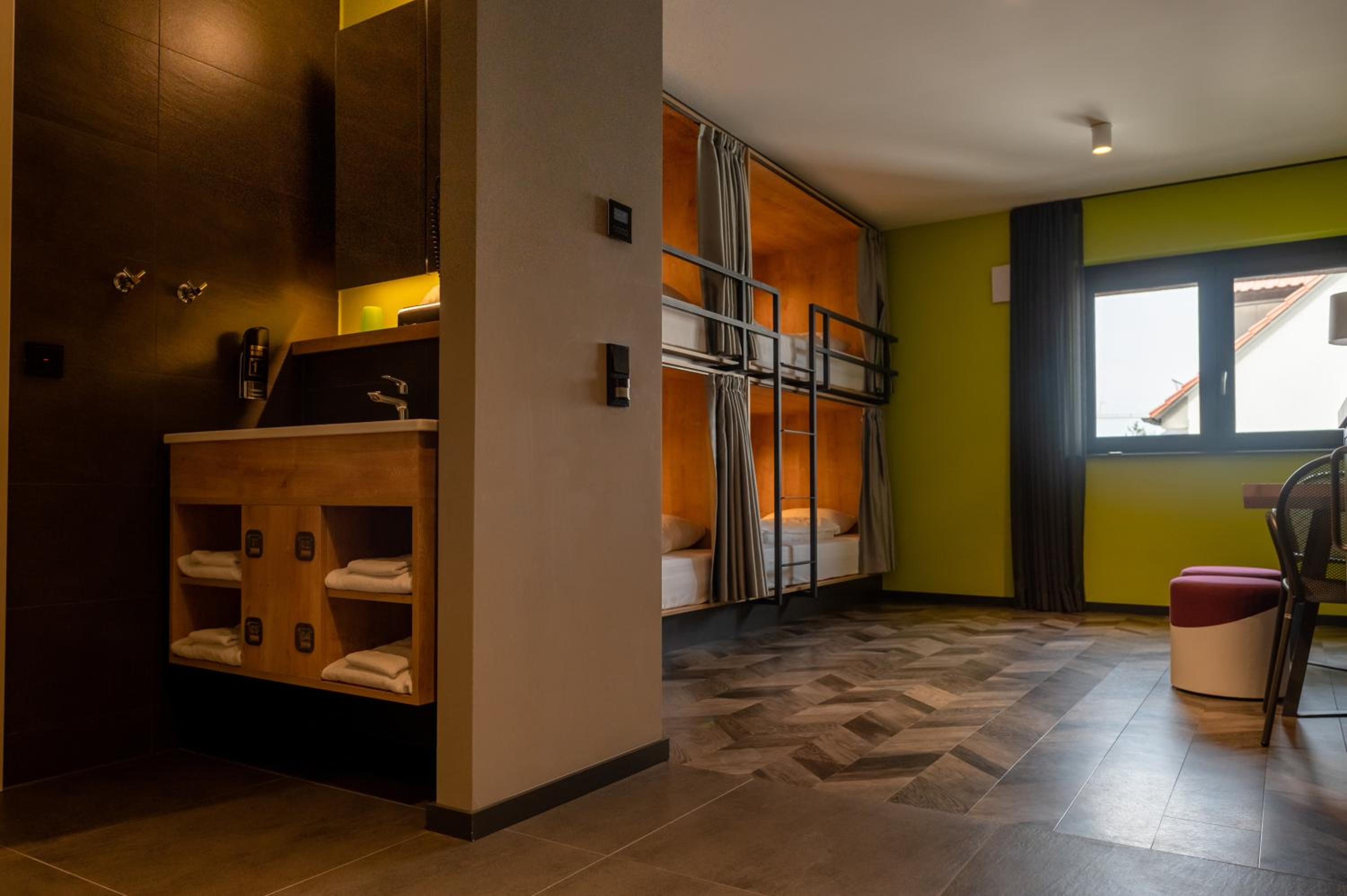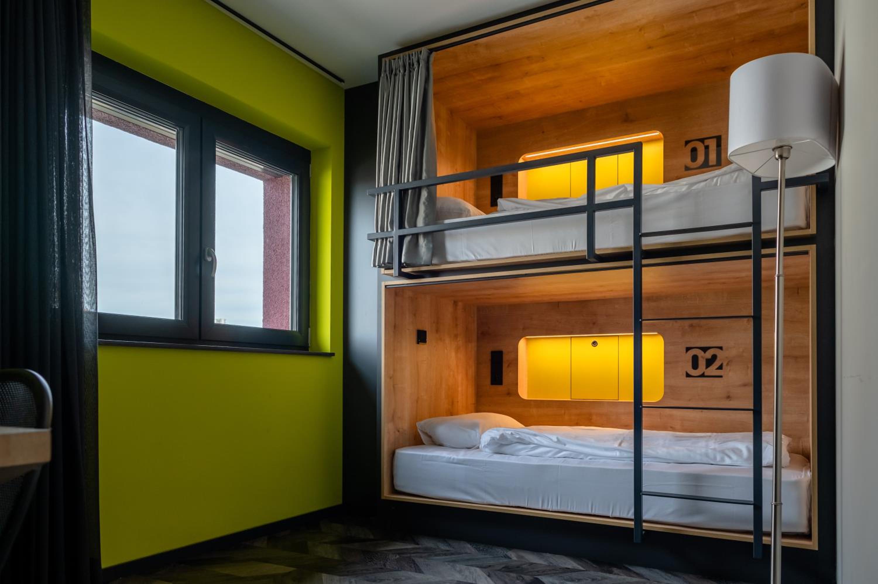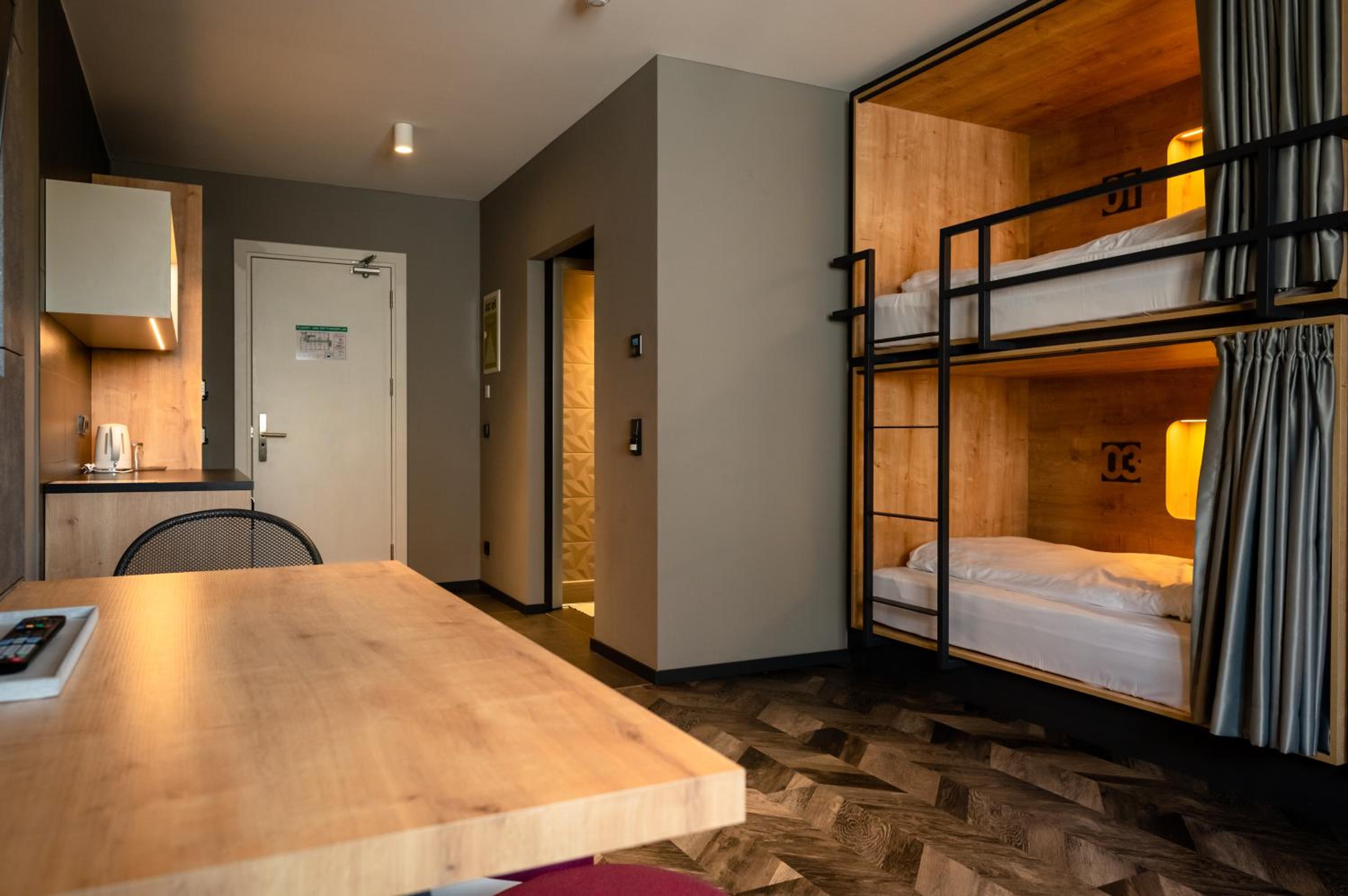 Bedden zijn fantastisch, ieder een eigen hokje met bed, lampje stopcontact etc. Ideaal als je met kids een overnachting wil doen onderweg naar wintersport. Aardige eigenaar die een prima cappuccino maakt voor je in de ochtend, en een goed gesprek.