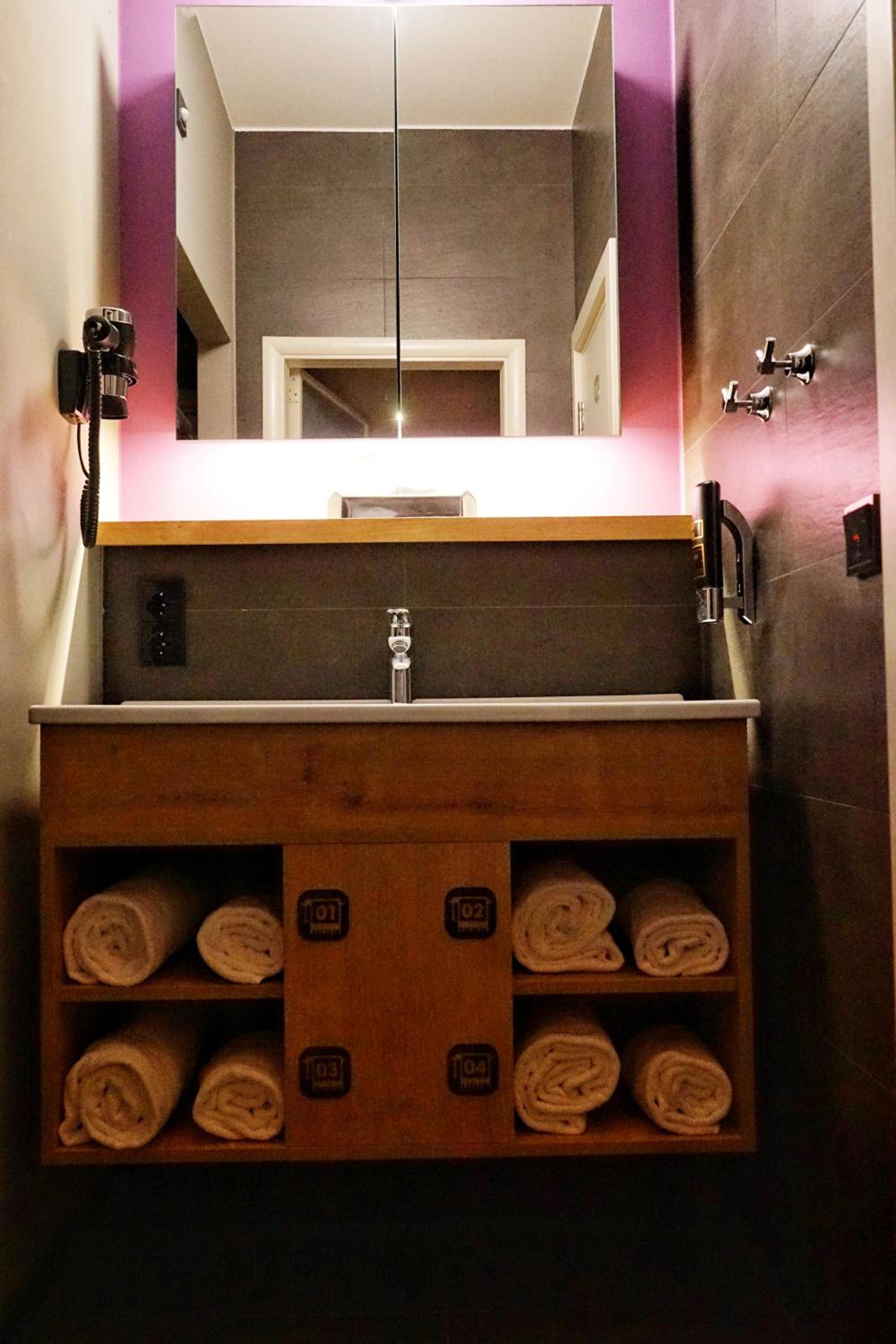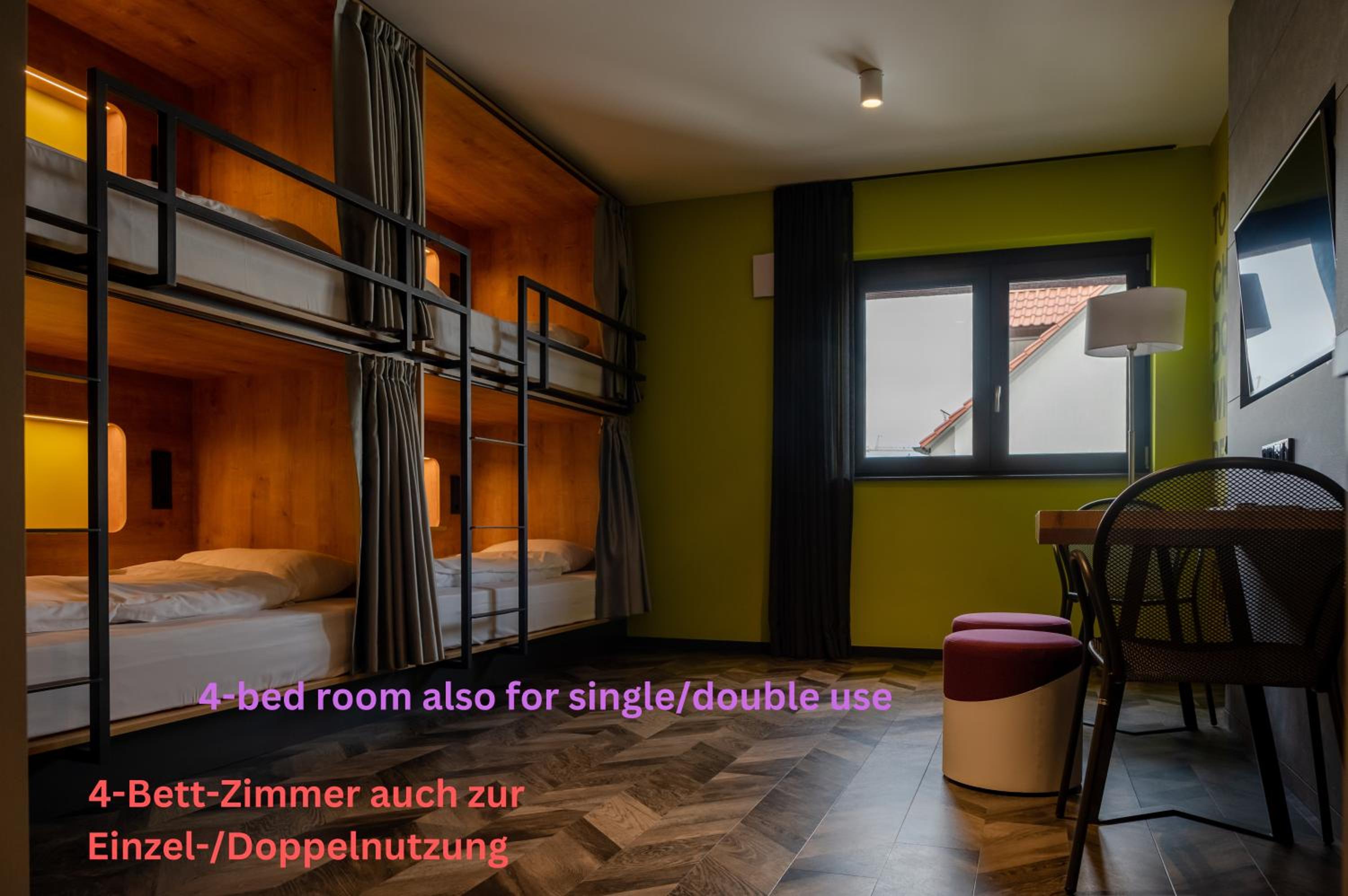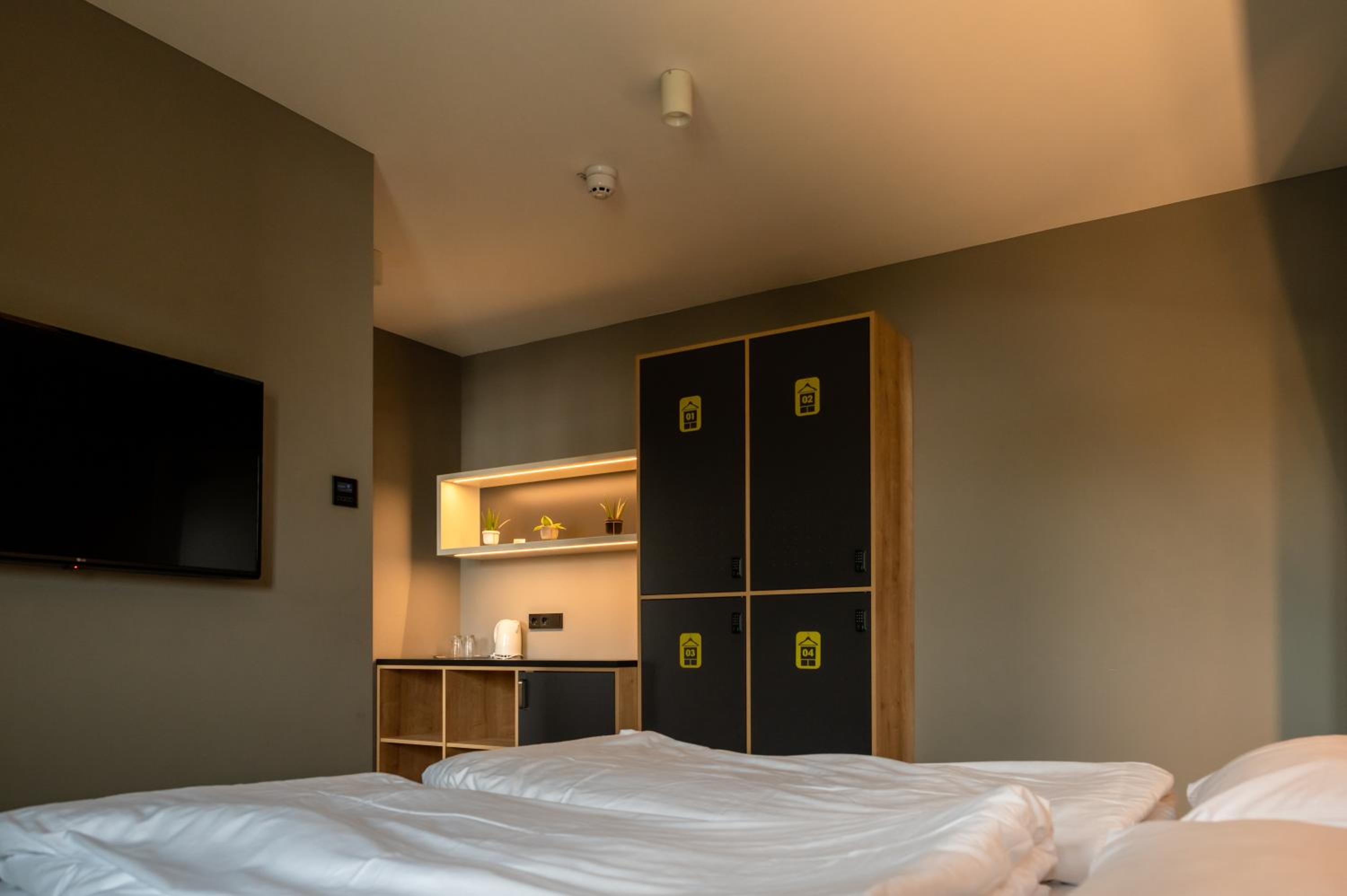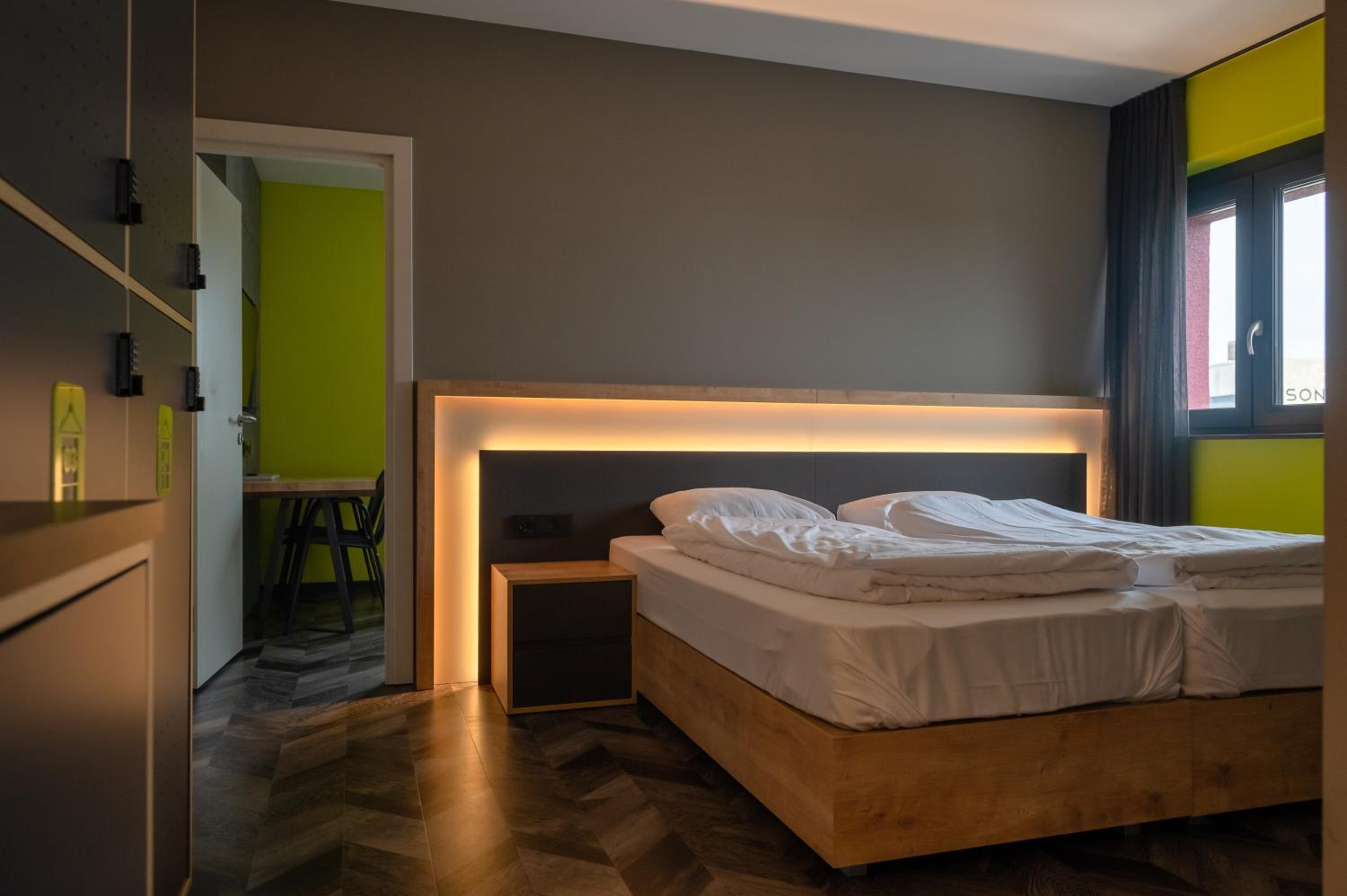 Bedden zijn fantastisch, ieder een eigen hokje met bed, lampje stopcontact etc. Ideaal als je met kids een overnachting wil doen onderweg naar wintersport. Aardige eigenaar die een prima cappuccino maakt voor je in de ochtend, en een goed gesprek.
