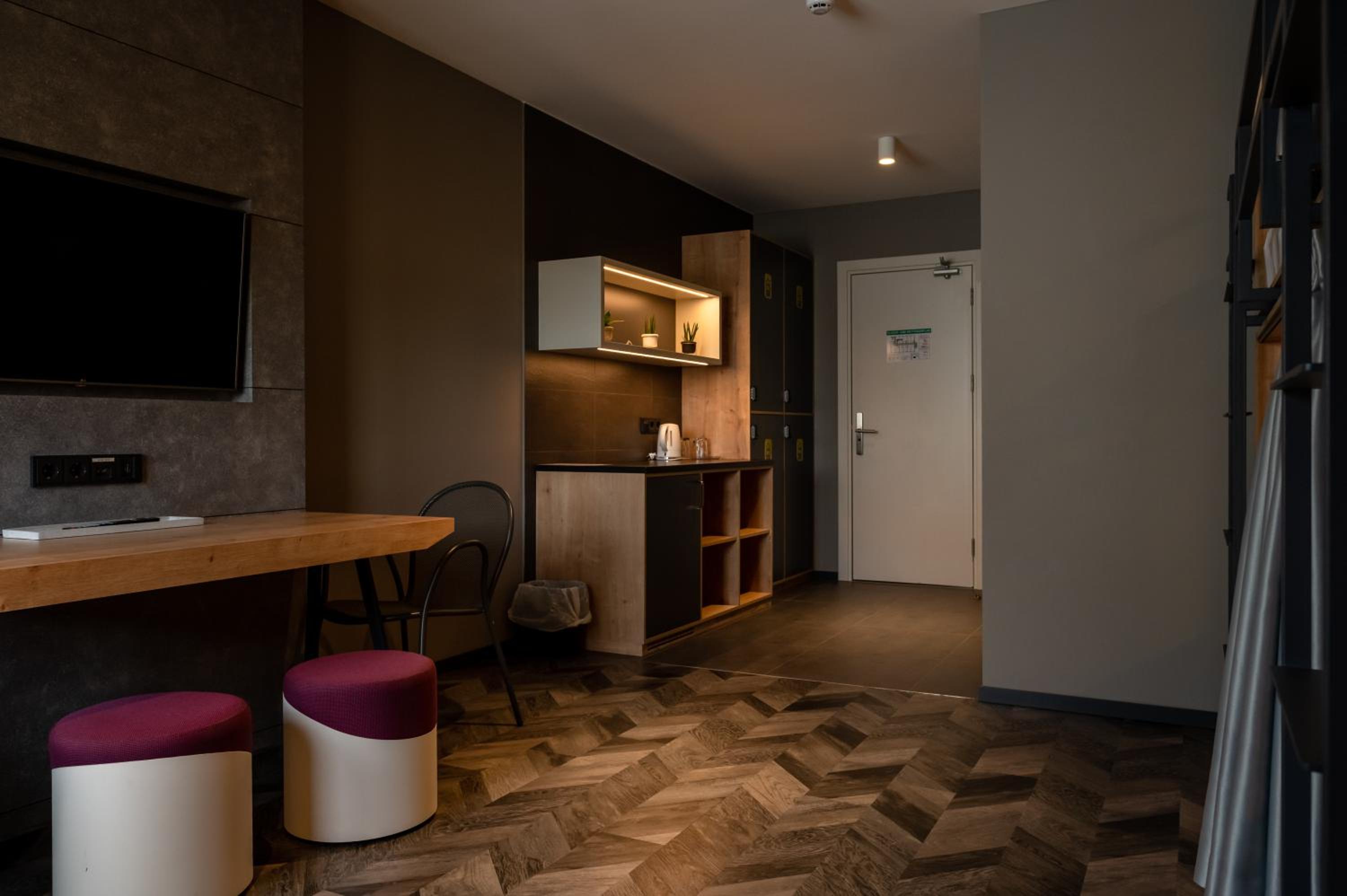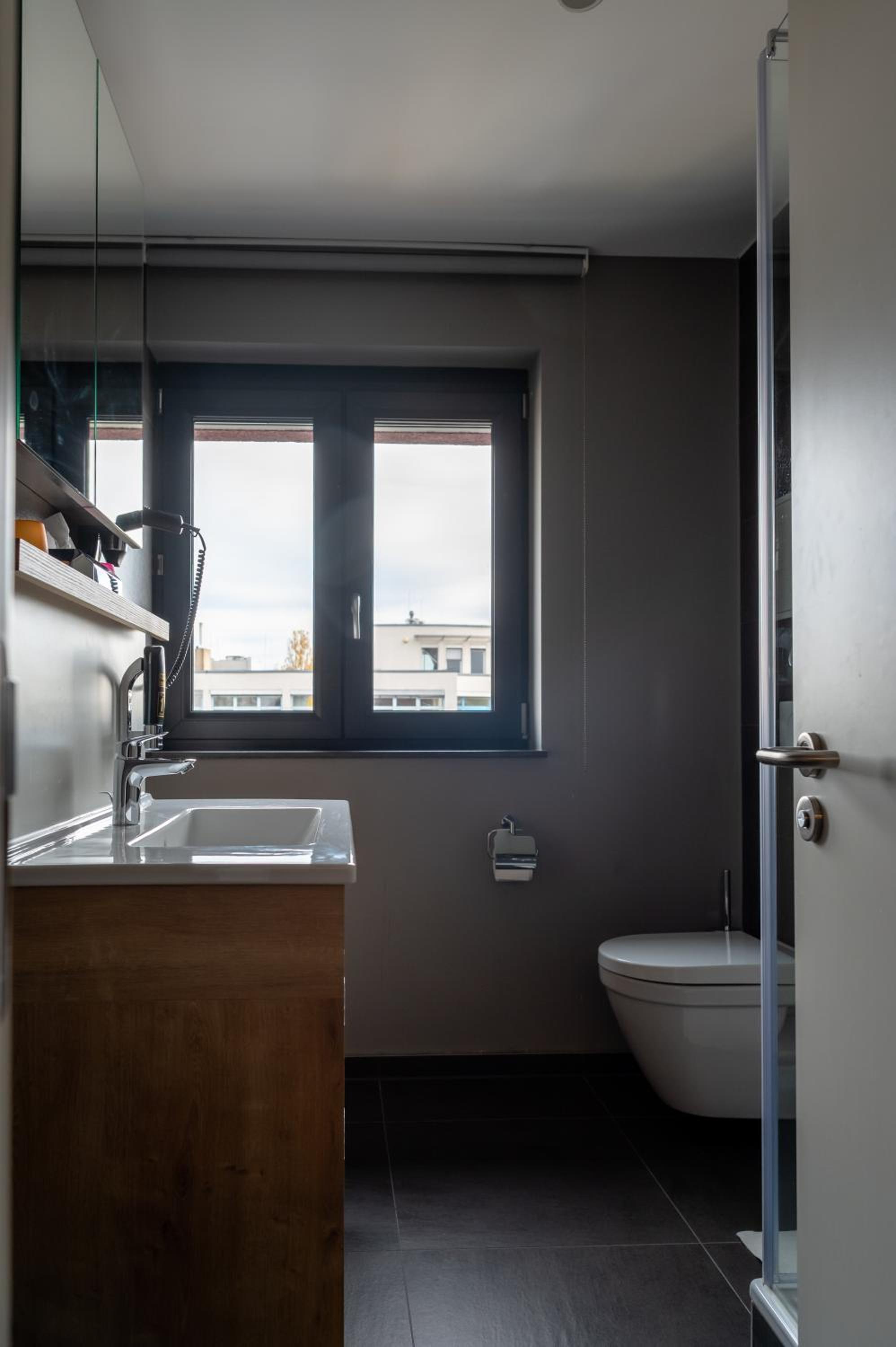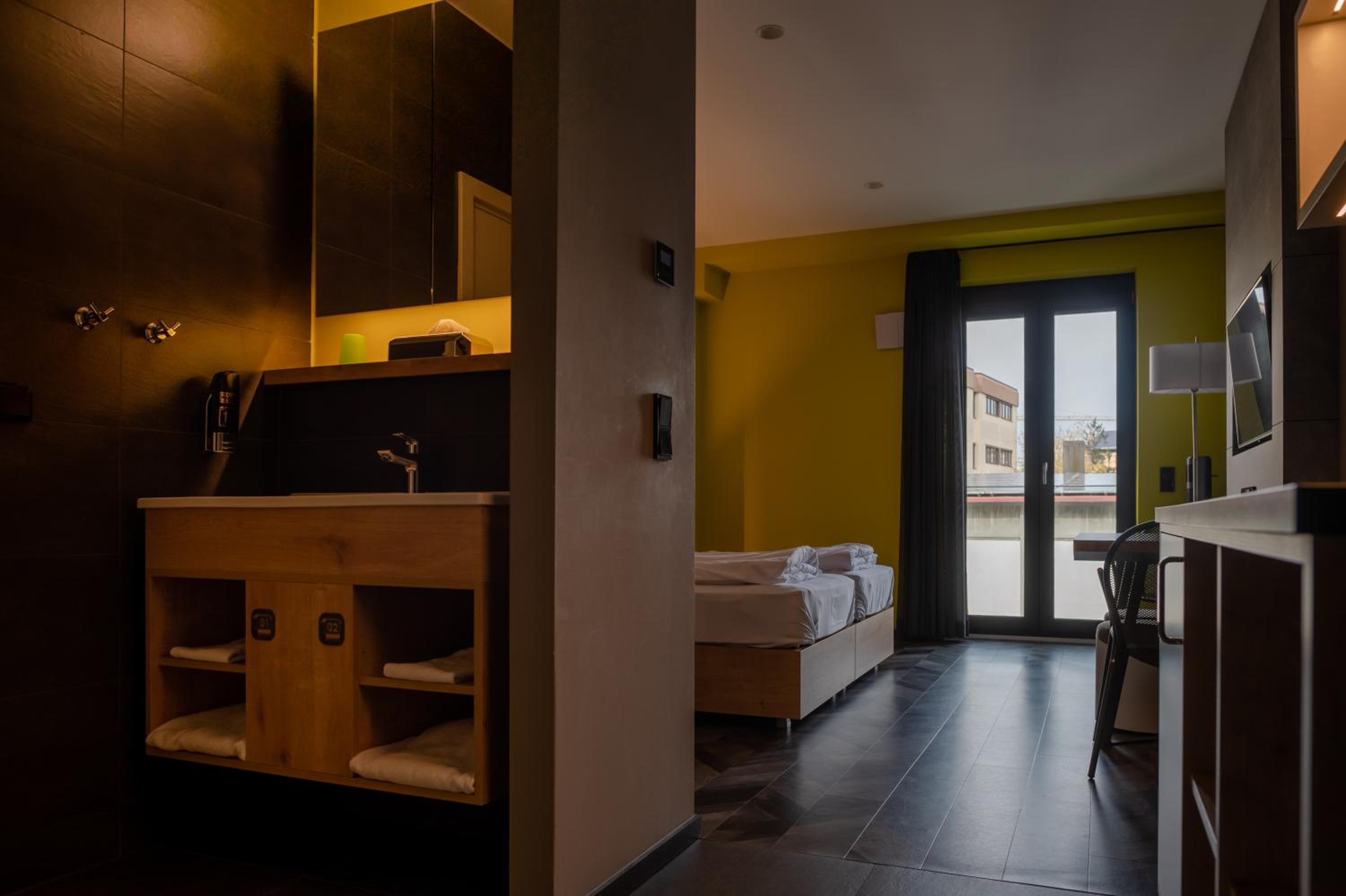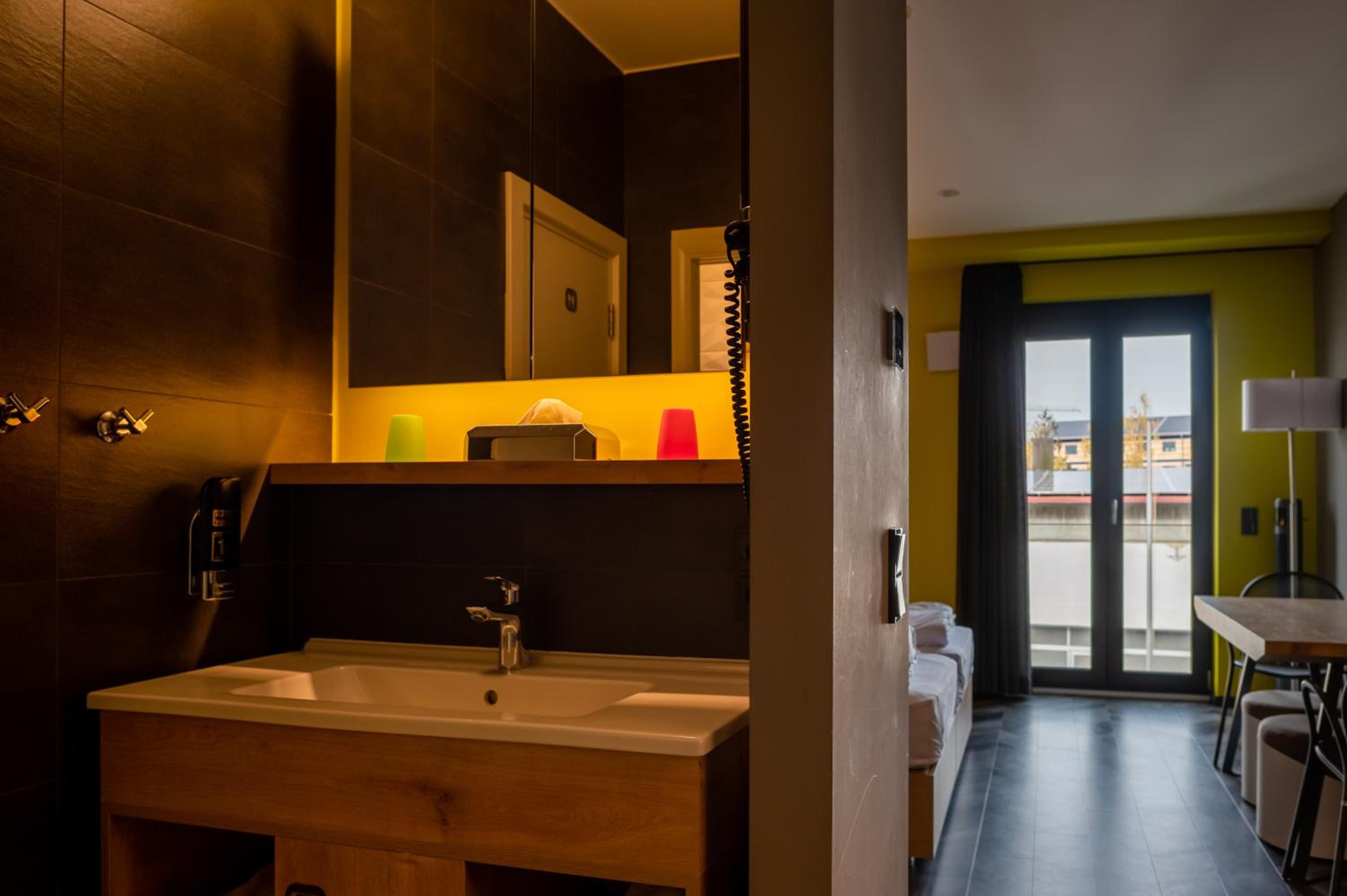 Die Ausstattung des Zimmers war super, besonders die Möglichkeit, die Zimmer komplett zu verdunkeln mithilfe der Jalousien finde ich gut.