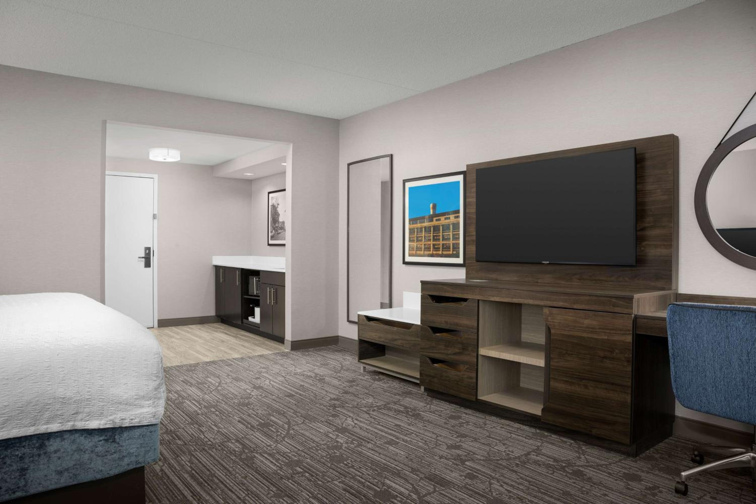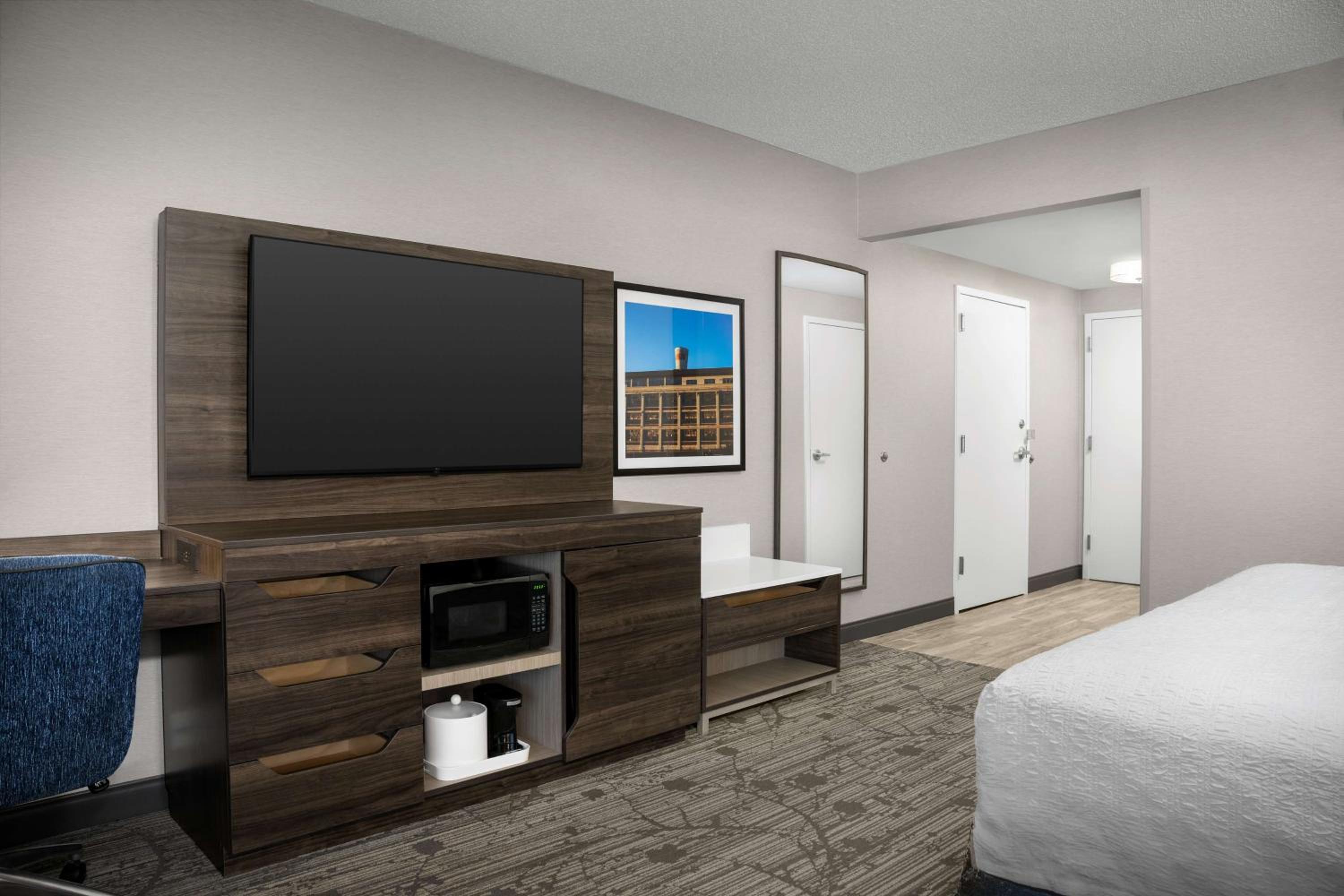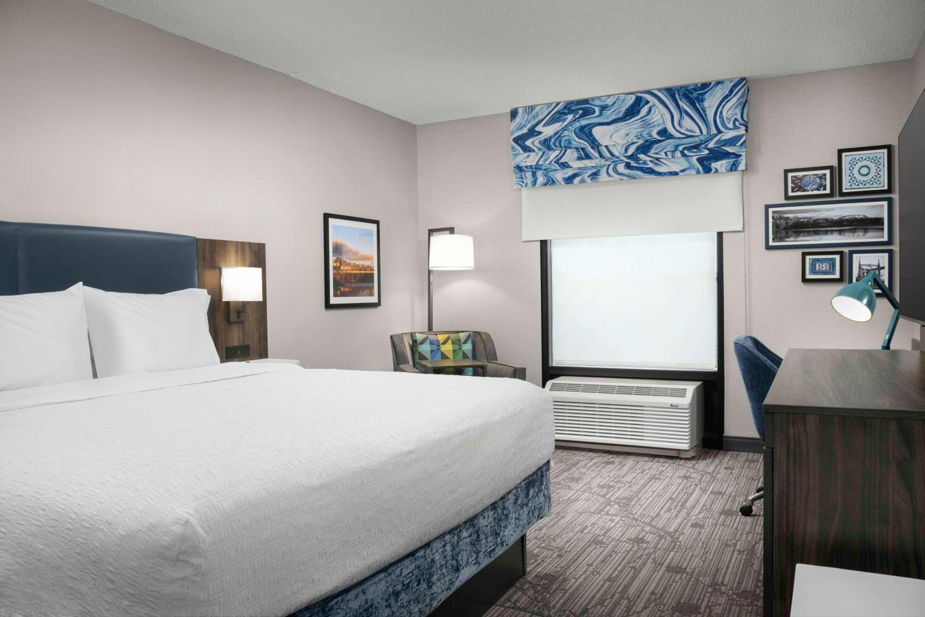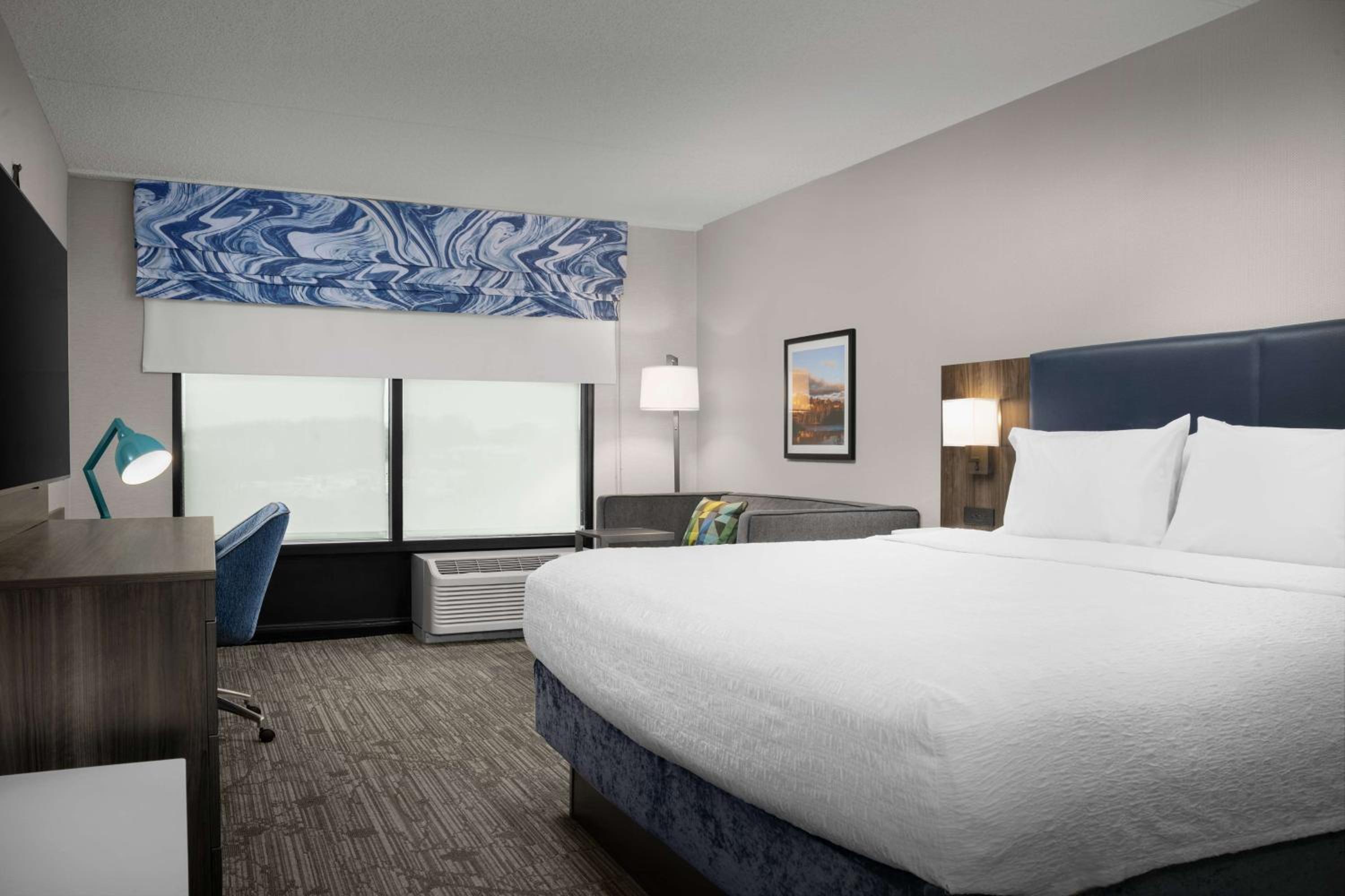 The Hampton Inn Easton in Pennsylvania offers a comfortable stay with spacious rooms equipped with modern conveniences like a refrigerator, microwave, and free Wi-Fi.