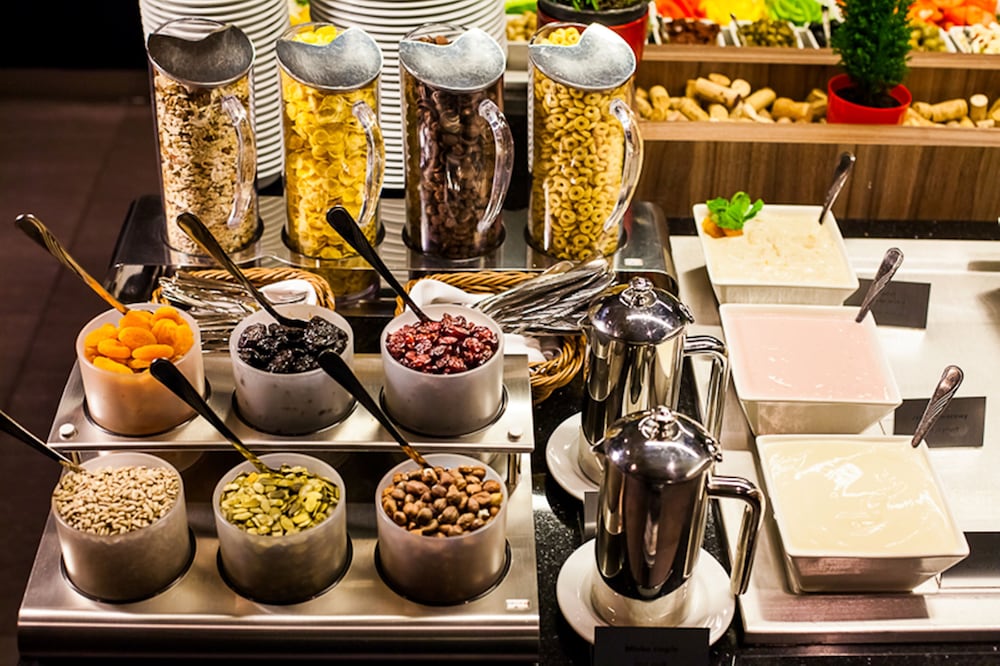 Individually-wrapped food options are available for breakfast