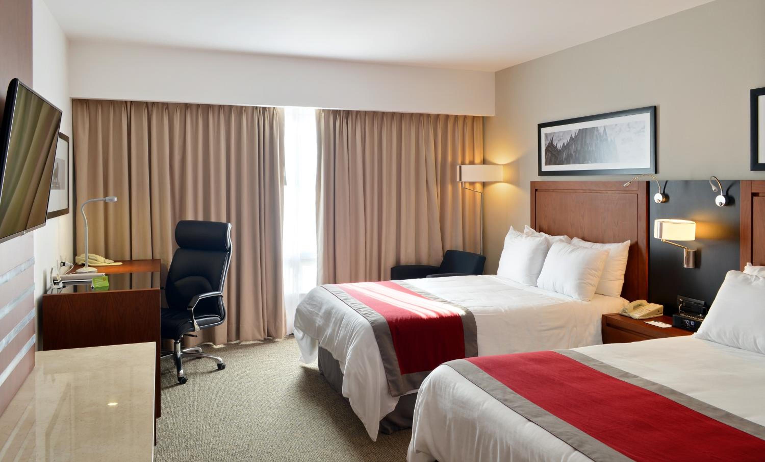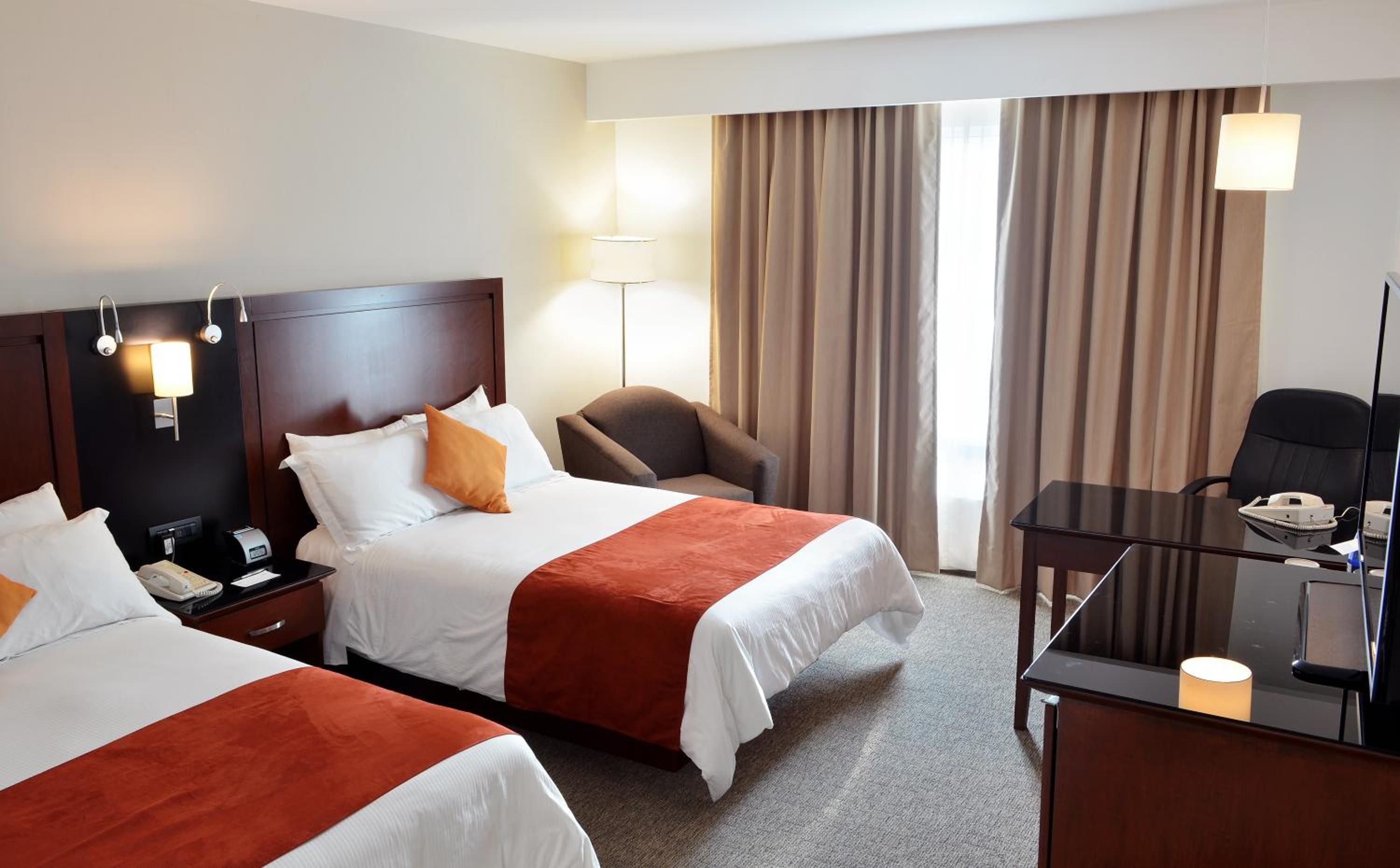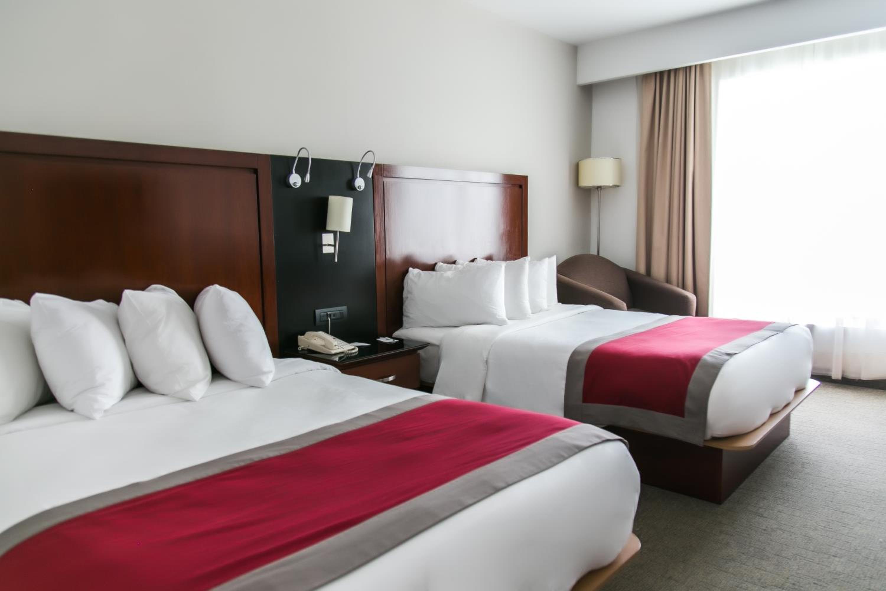 Experience comfort and style at Radisson Poliforum Plaza Hotel Leon. Our air-conditioned, non-smoking rooms are equipped with modern amenities including cable TV, a coffee maker, and a safety deposit box. Relax in our heated outdoor swimming pool powered by solar energy.