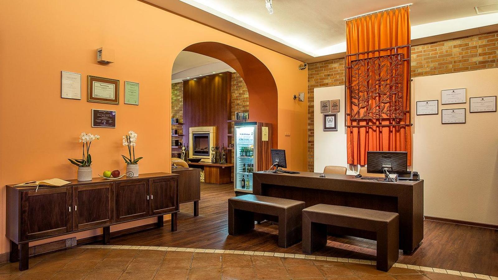 Guests can start their day with a rich buffet breakfast, with discounts for children under 12, in the charming courtyard or garden. The hotel also features a modern fitness center with a sauna for relaxation and a business corner for convenience.