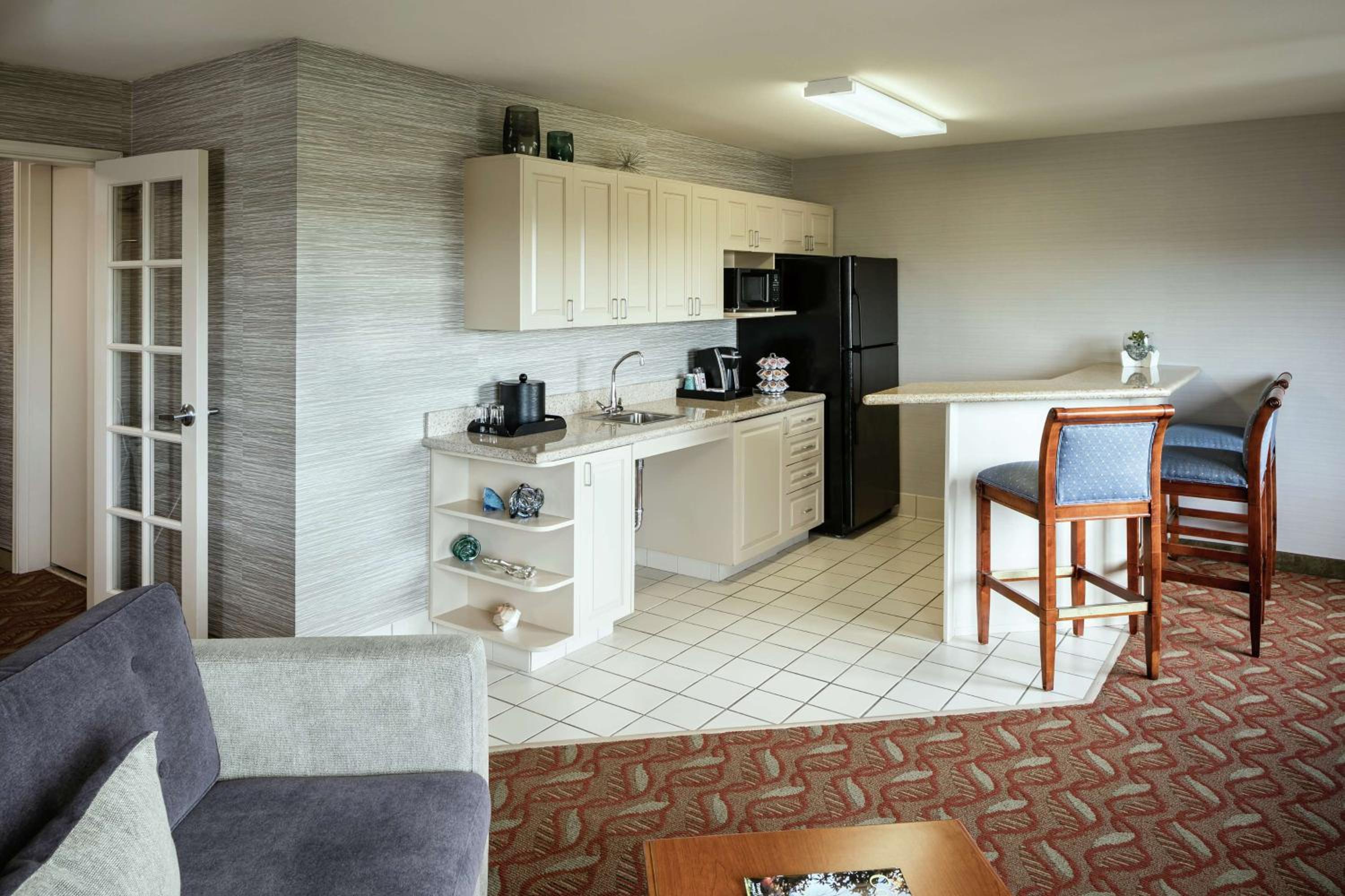 Each room at the hotel is equipped with a coffee maker, microwave, and mini-refrigerator for added convenience. Guests can also enjoy a work desk, cable TV with in-room movies, and video games, ensuring a comfortable and entertaining stay.