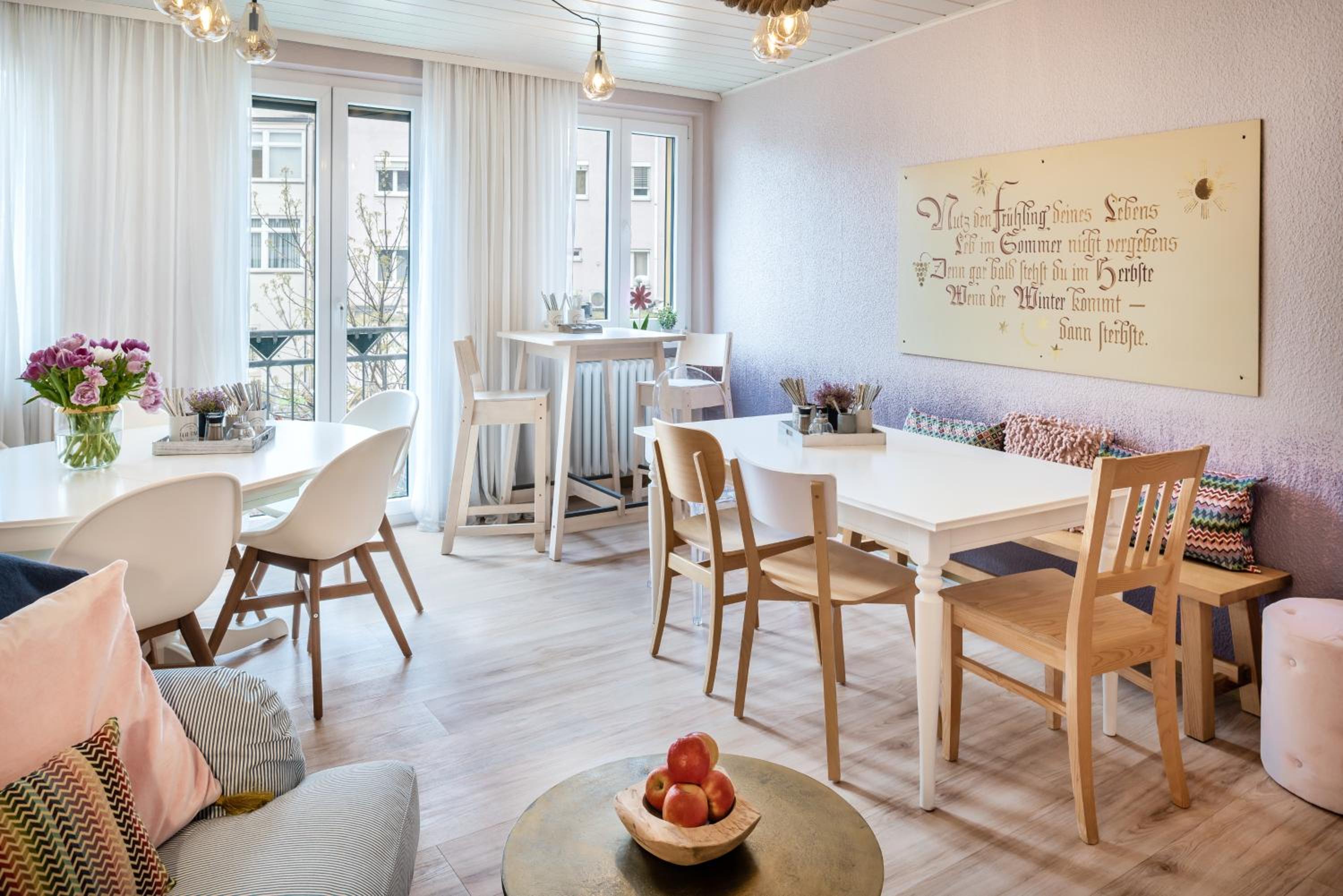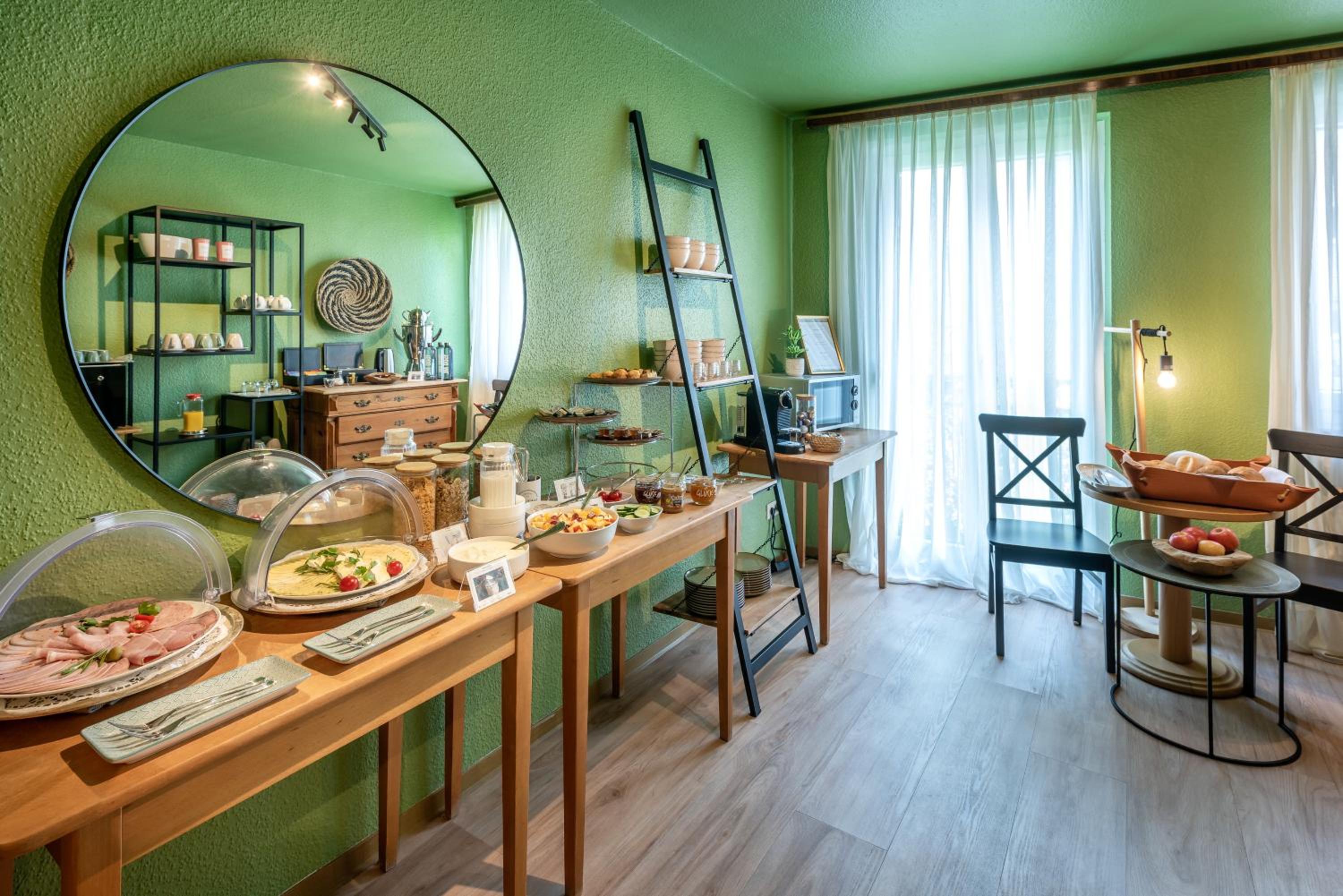 Das Frühstücksbuffet hatte eine hochwertige Produktauswahl und wurde in einem sehr ansprechend "heimeligen" Raum angeboten. Es fühlte sich an wie daheim - plus dem Luxus, dass alles vorbereitet war und man rundum versorgt ist. Sehr positiv auffallend war die Sorgfalt und Achtsamkeit und wie ordentlich und liebevoll die Produkte, Teller und Tassen,... angerichtet waren. Hier fühlen sich Körper, Geist und Seele wohl. Entschleunigt, in seiner Mitte, physisch und energetisch wohlgenährt - ein guter Start in den Tag. Danke für eure Krafttankstelle!