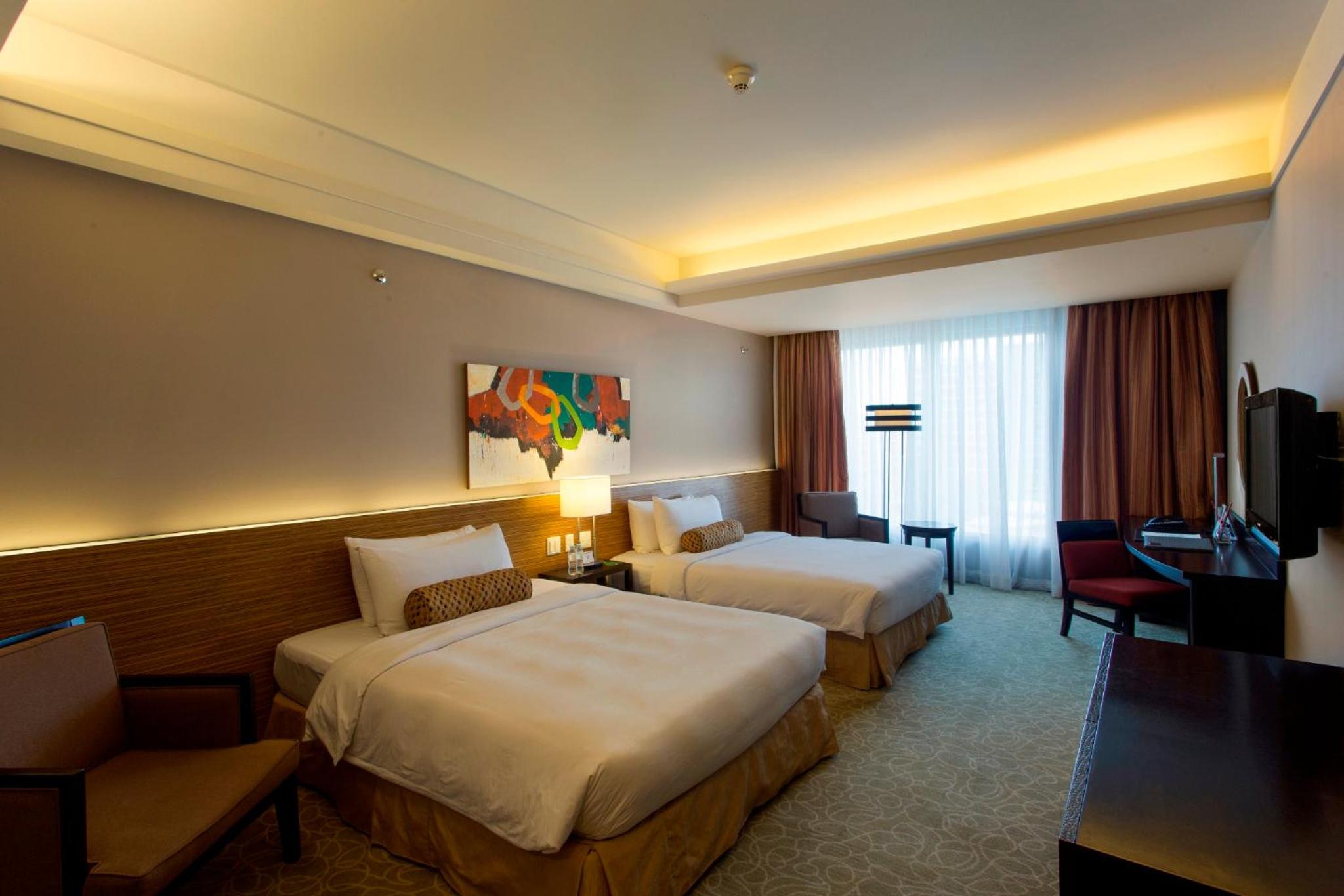 Breakfast buffet at Qsina was great - good selection of food. Room was good -sized. It fit a twin bed with enough room to lay luggage on the floor for packing. Our room was quiet, bed was comfy. Dinner at Johnny's was great - nice view, they have a pool table and dart board you can play while waiting. Staff was exceptional - always friendly, greeting everyone and keeping everything clean. Excellent value for what we paid for. Walking distance to Festival Mall but you also have the option for free shuttle (runs every hour) or public transportation. It's close enough to the airport and convenient that they offer transportation (for a fee).