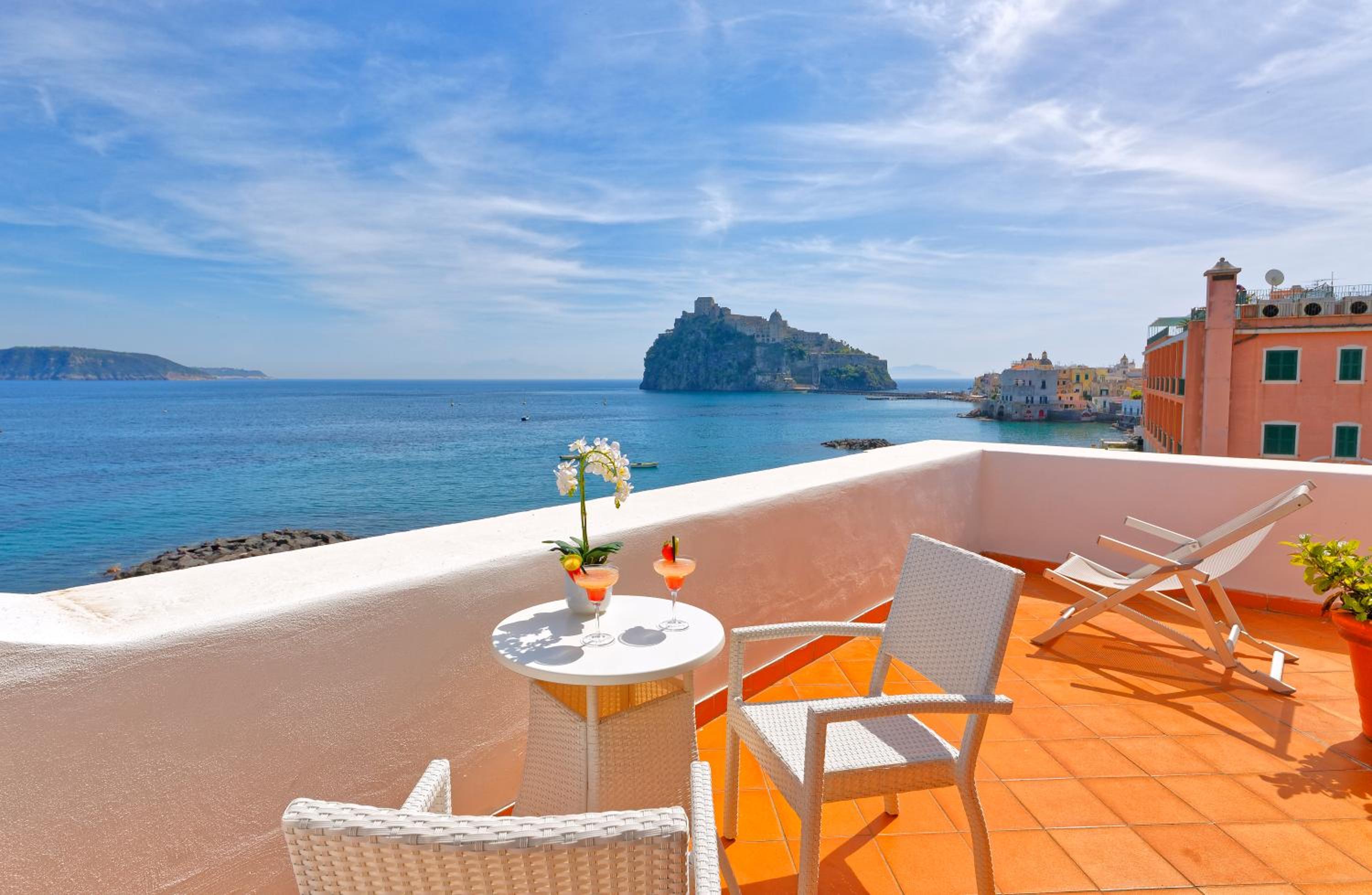 My sea-view room offered a splendid view of the gulf and the Aragonese Castle. The tasteful furnishings, the refined atmosphere, and the carefully chosen music created a sense of harmony and tranquility throughout my stay.