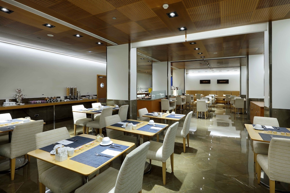 Context of the hotel. It sits a good few km’s from the perimeter of the old town. You’ll need to use the metro which is easy to get to from the hotel , only 200 metres walk away. The hotel shares the high rise building with two other hotels, a three star on one side and a four start on the other side. As a result, the reception is accessed at street level and the hotel restaurant and rooms are located from floor 14 and above. Restaurant is on 14, gym on 23 and pool on 24. The restaurant and bar area is ok but almost an afterthought. The bar lacks any atmosphere and is boring. We only used the restaurant for breakfast which had a variety of options but lacked gluten free options. It was also poorly stocked and frequently we had to ask for things that were empty. The gym was ok but the sauna was in a state of disrepair and there were never any towels in the changing rooms to use. The pool was ok, very cold and a little tired and unloved. A small bar on the roof top next to the pool but not open. The room was nice and definitely 4 star standard. The staff were very attentive but they appeared under staffed at all areas.