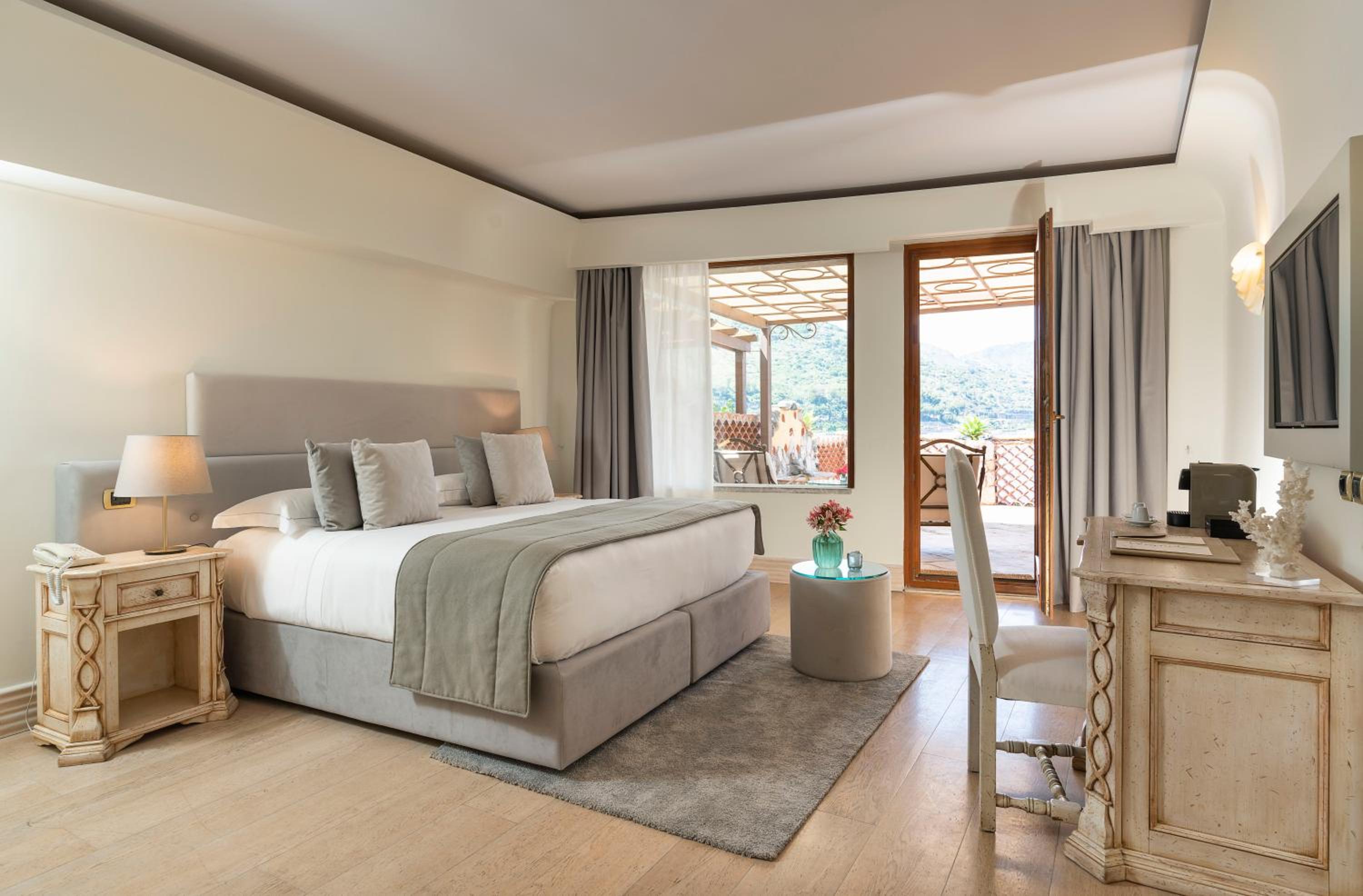 Atlantis Bay, perched on a cliff overlooking Baia delle Sirene Bay, offers breathtaking views and a tranquil escape for guests seeking a serene getaway.