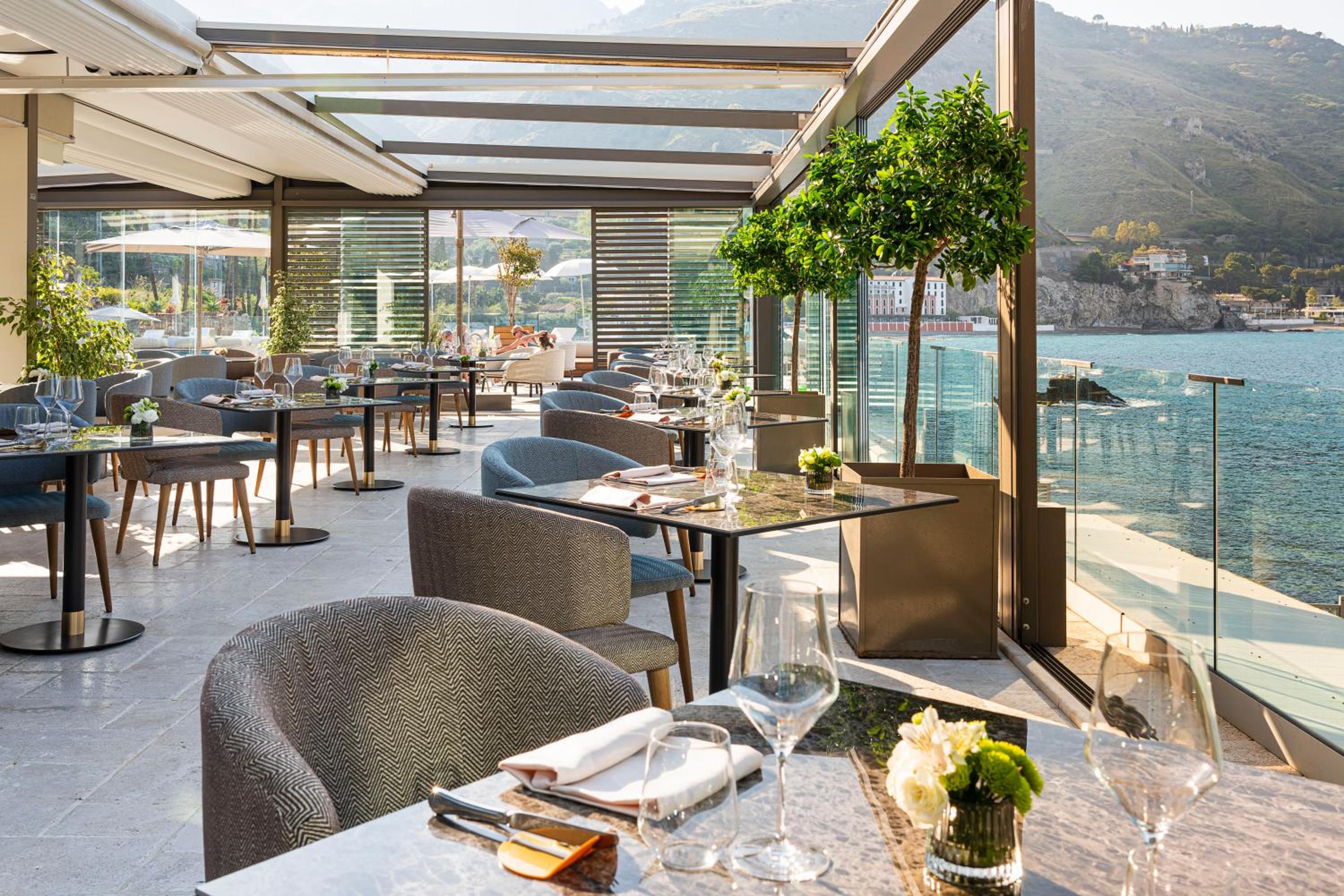 The restaurant is 5 star the waiters are very professional and polite and cheerful i had a good experience with mr. Stefano, mr. Lorenzo, mr. Cateno, and miss Gusy .