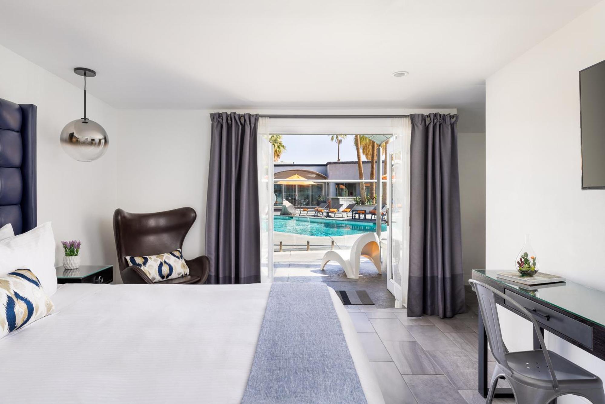 Renowned design house ModShop by Room Service has curated the art and furnishings at this stylish hotel, blending mid-century aesthetics with a contemporary twist. The result is a unique and upscale ambiance that sets The Palm Springs Hotel apart.