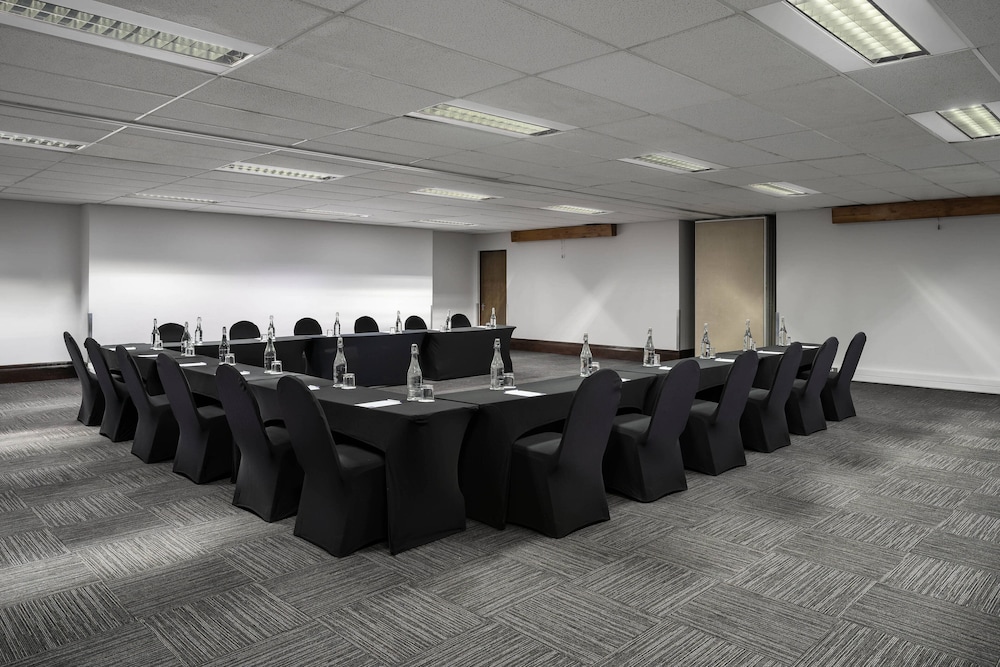This hotel is a short walk (less than 1 min.) across the parking lot from the Wanderers Club conference center. The staff are very friendly, organized, and efficient. The restaurant is very good, and it opens early (630am) and closes late. My room was very clean, and the desk was large and good for working.