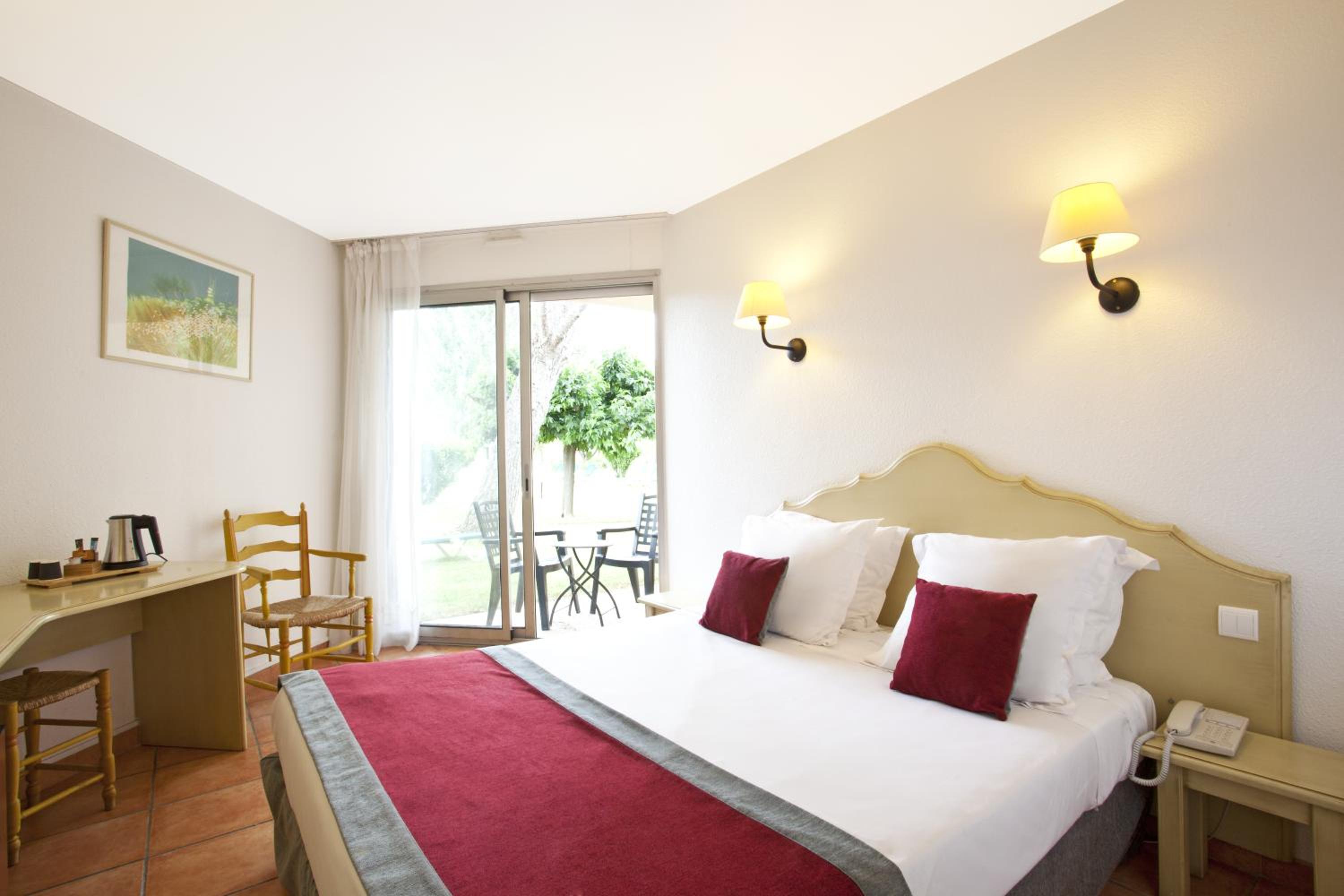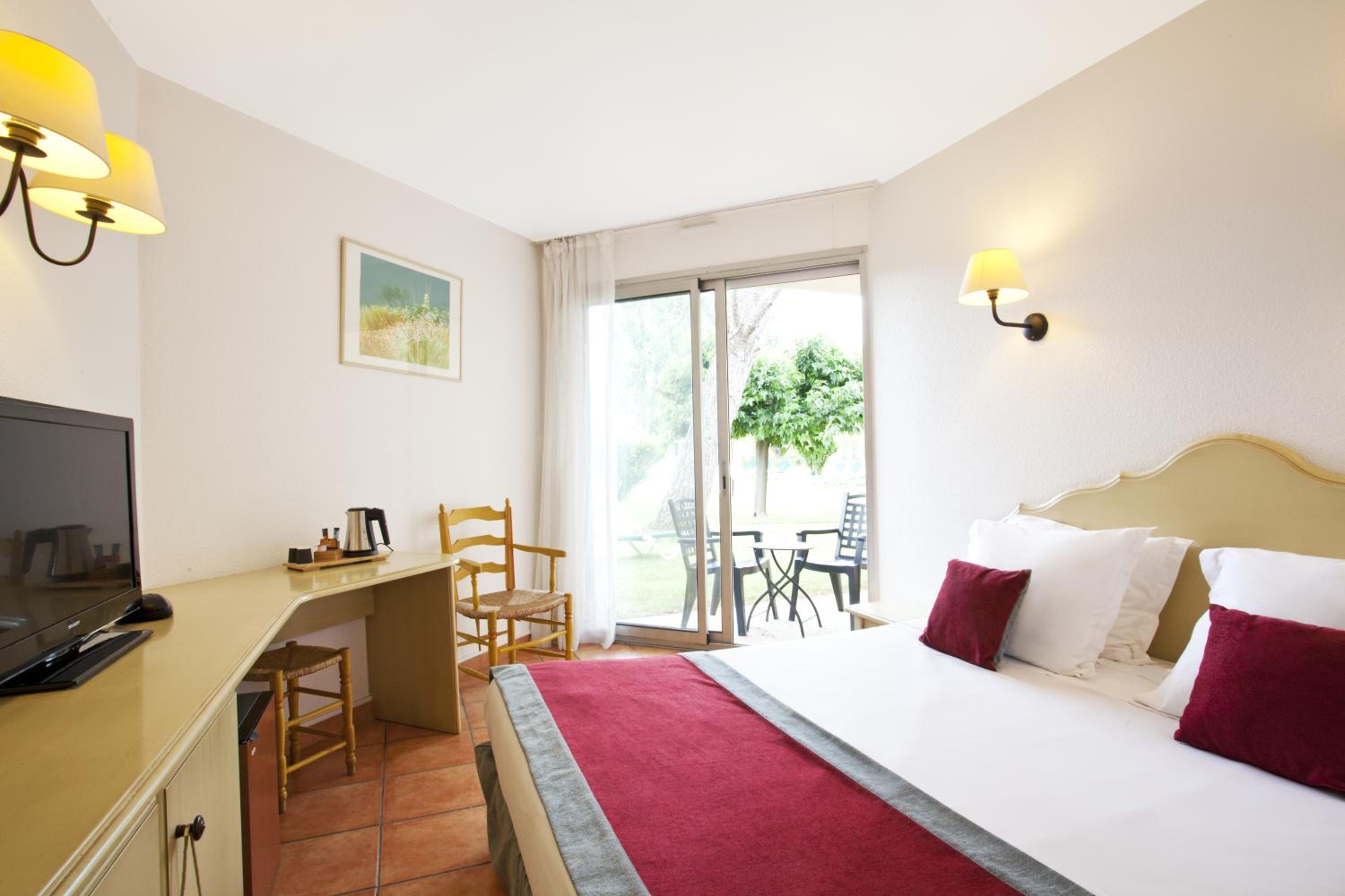 Luxurious Accommodations - Hôtel Paradou Avignon Sud offers soundproofed, air-conditioned rooms with picturesque views of the pool or garden. Each room is equipped with modern amenities such as cable TV, a private bathroom with free toiletries, and high-speed WiFi, ensuring a comfortable stay.