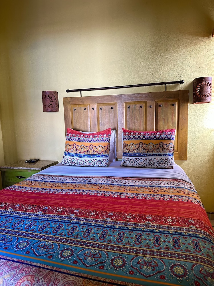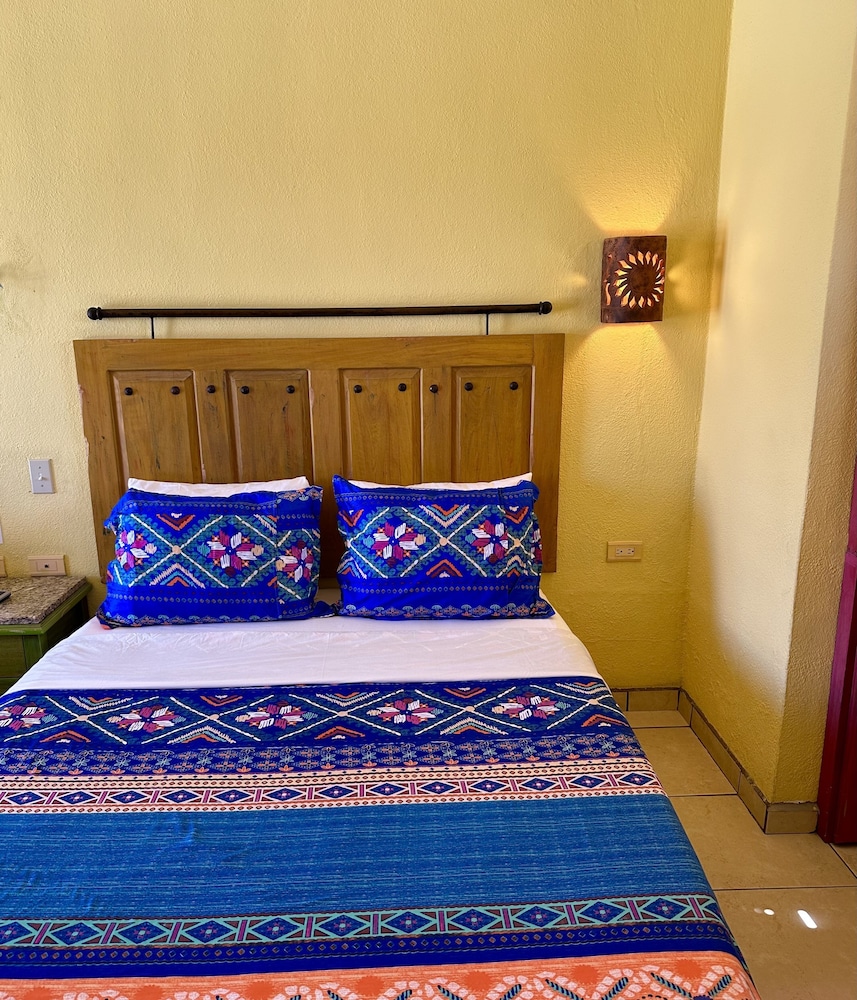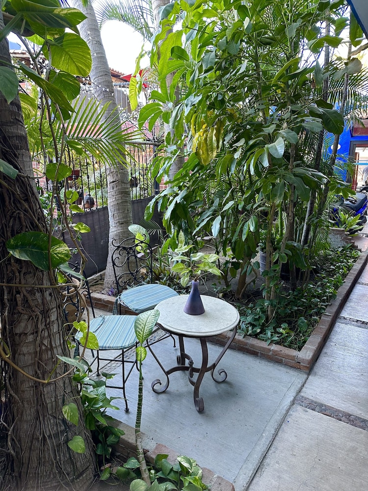 Siesta Suites was everything I had hoped for. I was able to speak to the owner prior to arrival. She is American, so English no problem. She assured me we could have a first floor room. When we arrived the room was ready, and charming. A small bedroom, with a door that closed. A living room with a couch. A fully equipped kitchenette and marble topped table. The decor was colorful and Mexican. Walk out the door and be right in town. Get a boat to the beach or for a tour two blocks away. Local supermarket a block and a half. Pharmacy next door. Half a block to a gallery.Look no further. Stay at Siesta Suites.