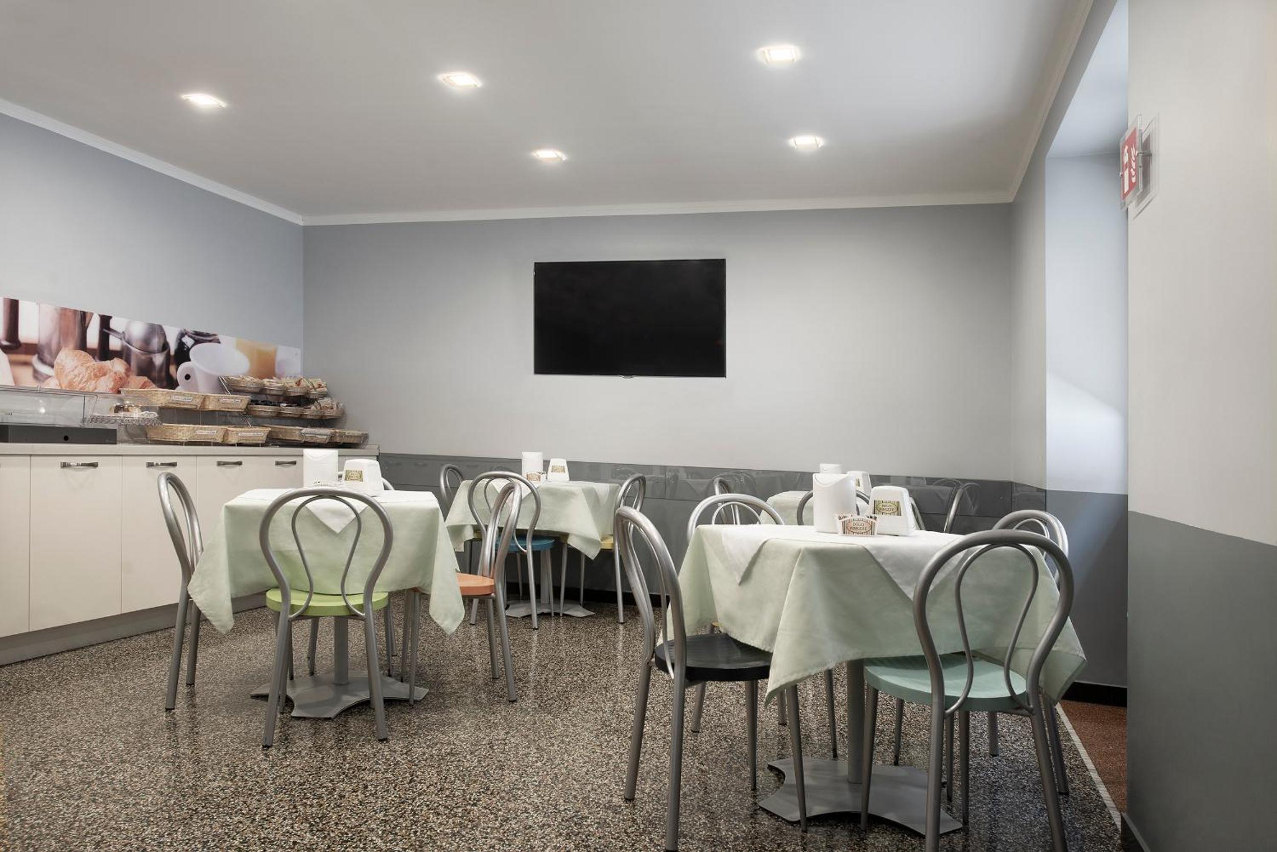 Colazione stringata, prodotti scadenti, buoni per gli stranieri, di cui l'hotel abbonda.