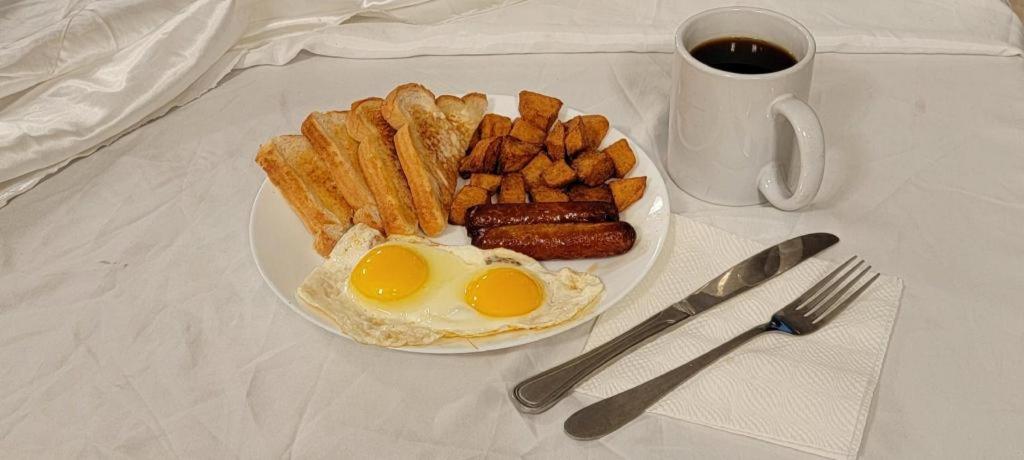 When I first drove up, I was skeptical. The surrounding area around was poorly kept. The outside of the place was quite dirty. Windows, doors, floor. I booked on line through Hotels.com, fully expecting someone to be available for check-in. No one around, the phone number provided had a full mailbox. I had to go to the place next door who called a security guard who tried to check me in and couldn’t, who called someone else. Finally, a lovely young lady arrived and was able to get me checked in. The add said breakfast available, however no restaurant on site. Except a phone order option. The saving grace was that I was given an immaculately clean room with two Queens and all the other amenities. I was concerned about vandalism, so was given a room overlooking the parking lot where I could see my vehicle. The place has one Security guard which is somewhat of a deterrent. I was disappointed by the lack of cleanliness of the surrounding areas. The fee could have been a little lower to compensate.