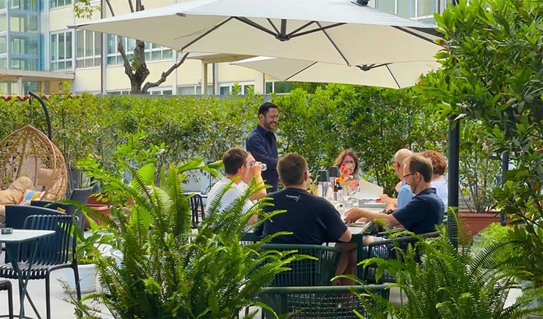 Relax in our serene urban garden oasis, complete with comfortable seating areas and a cozy ambiance.
