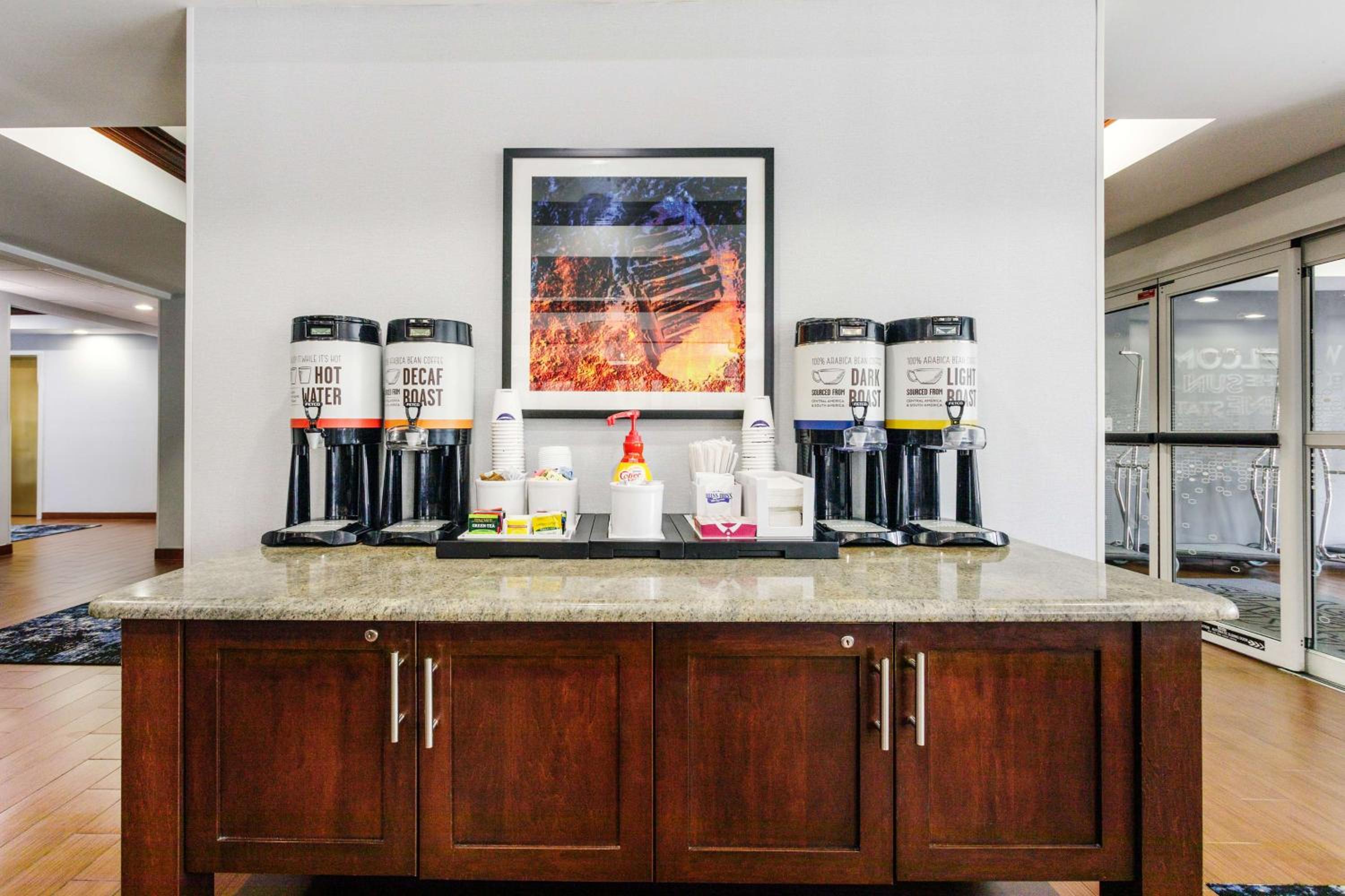 I stopped staying at Hampton Inn hotels about 10 years ago because of the increase in price, the lack of real rewards for Hilton Honors and the terrible breakfasts provided. Due to a last minute situation we stayed at this Hampton Inn. The room was ok and it was clean and quiet but the breakfast was disgusting. Eggs and sausage made from god knows what. The “juice” was merely colored water and very little color. I guess the potatoes were real but not good. They did have yogurt and boiled eggs. The eggs, sausage and potatoes were cold. If the “free” breakfast gets you to pay $200 for one night at this hotel then it needs to be a better breakfast.