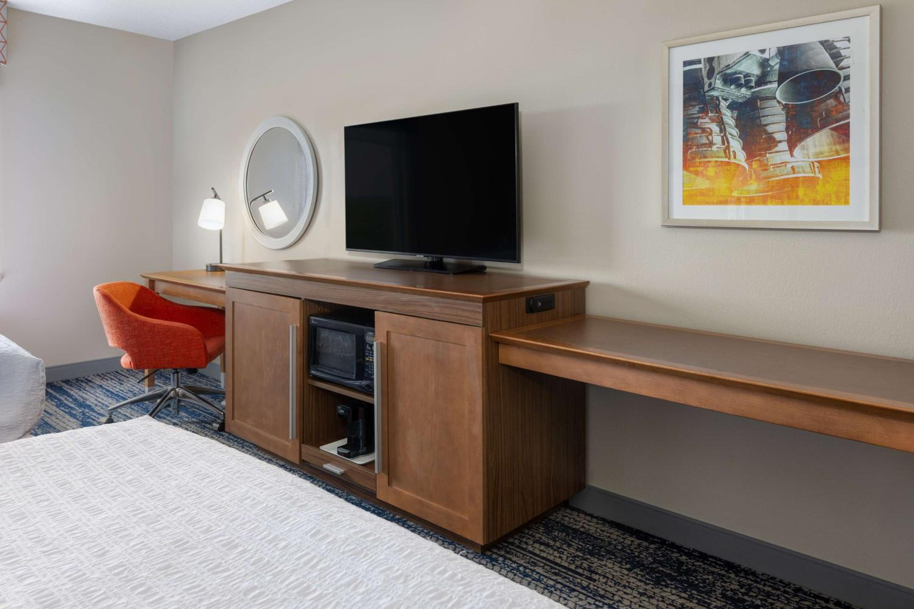 The Hampton Inn in Titusville offers rooms with flat-screen TVs, free WiFi, and work desks with free wired internet. Guests can also enjoy the convenience of a microwave and small refrigerator in each room, with some featuring a cozy seating area with a sofa bed.