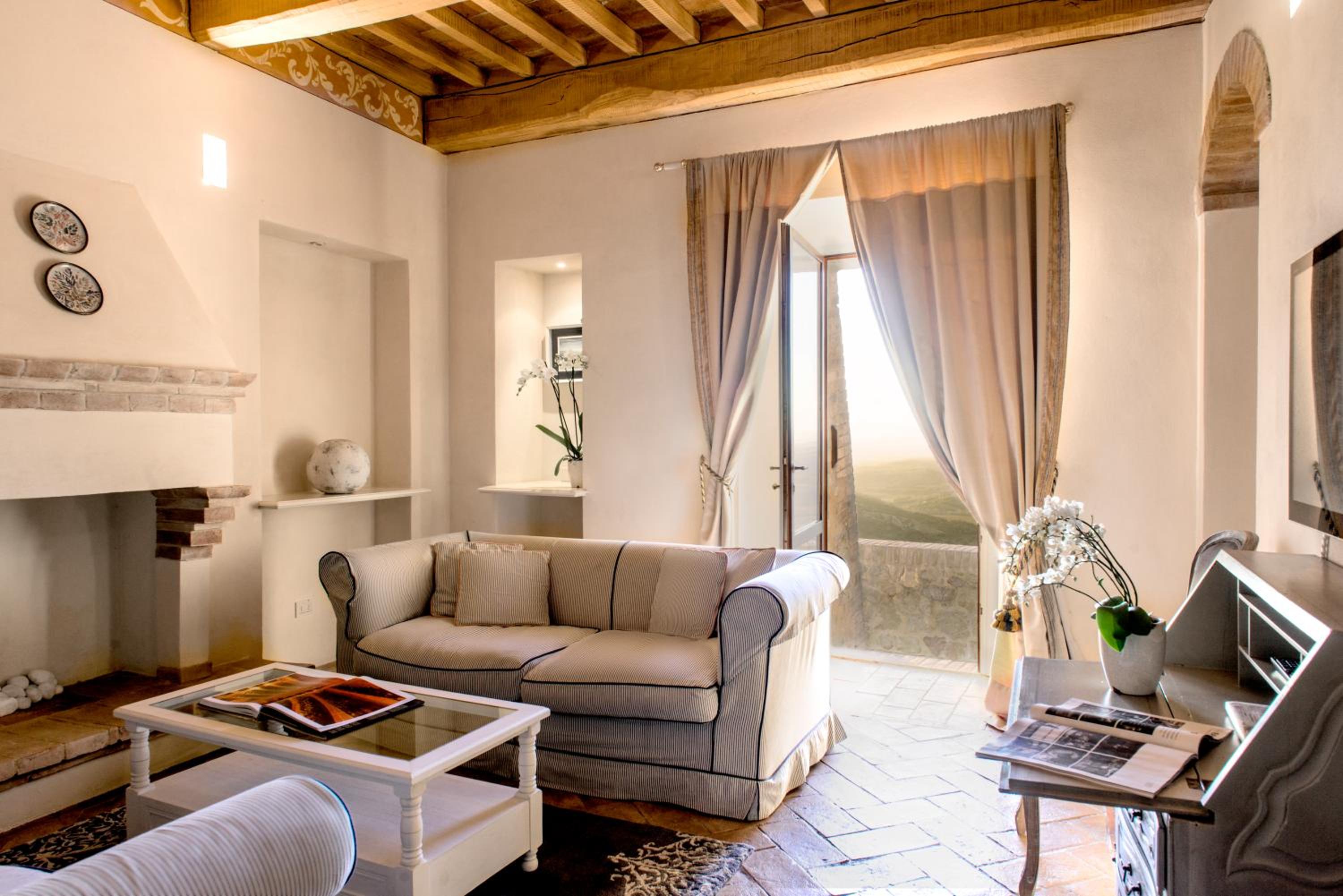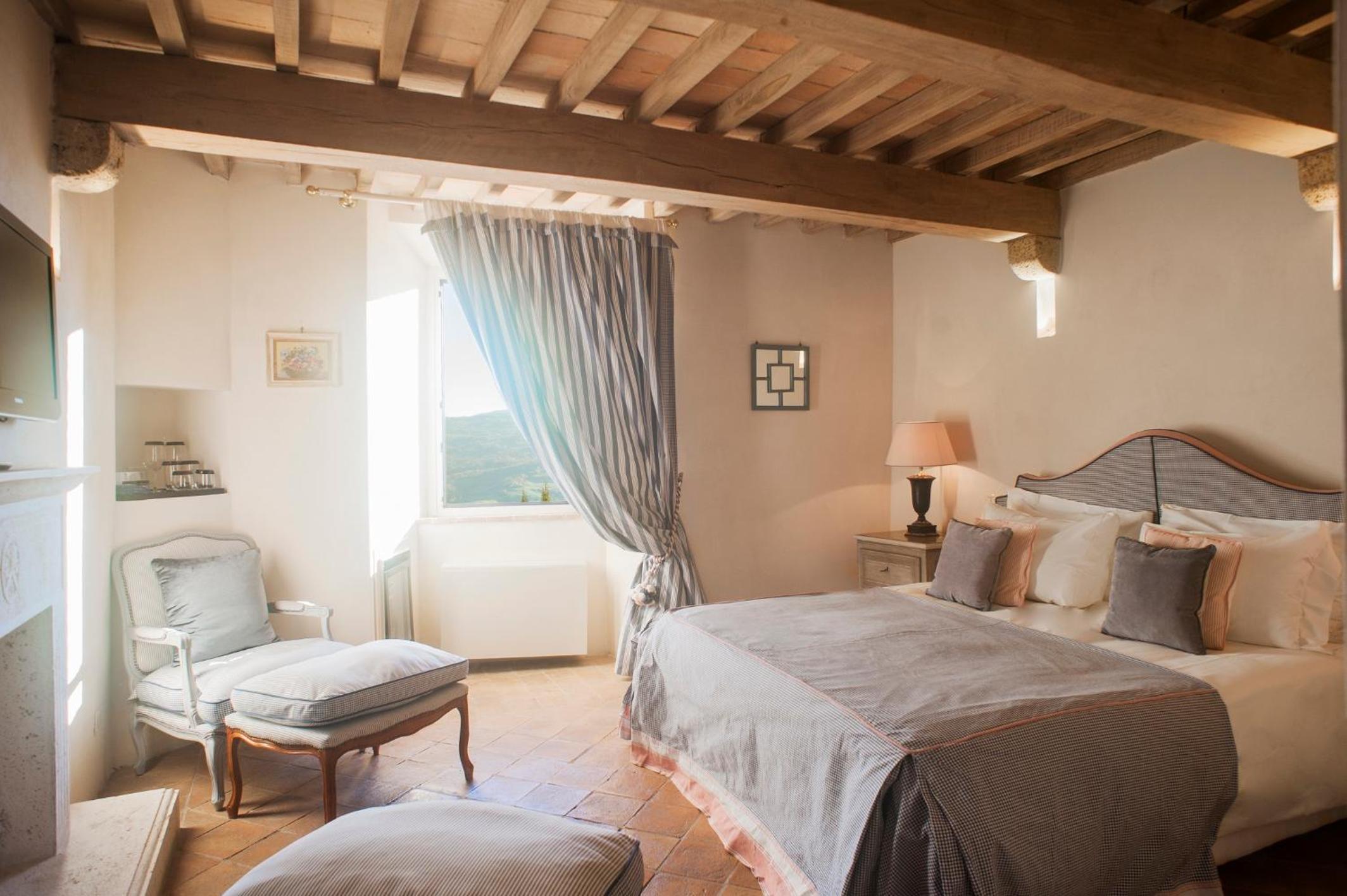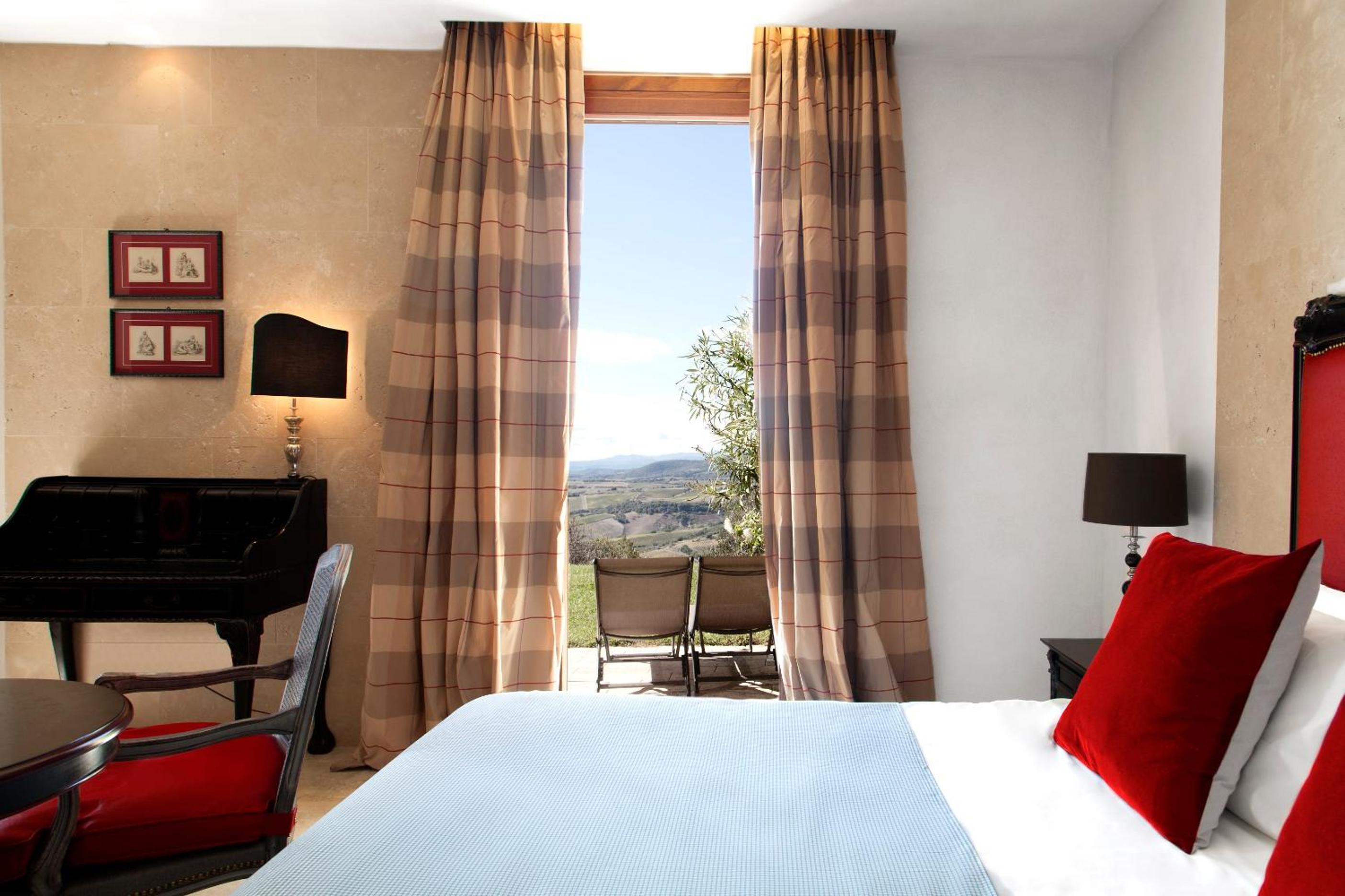 Indulge in rooms with stunning vistas of Tuscan vineyards, air conditioning, log fires, and marble bathrooms. Opt for the new wing for a private patio and a relaxing spa bath.