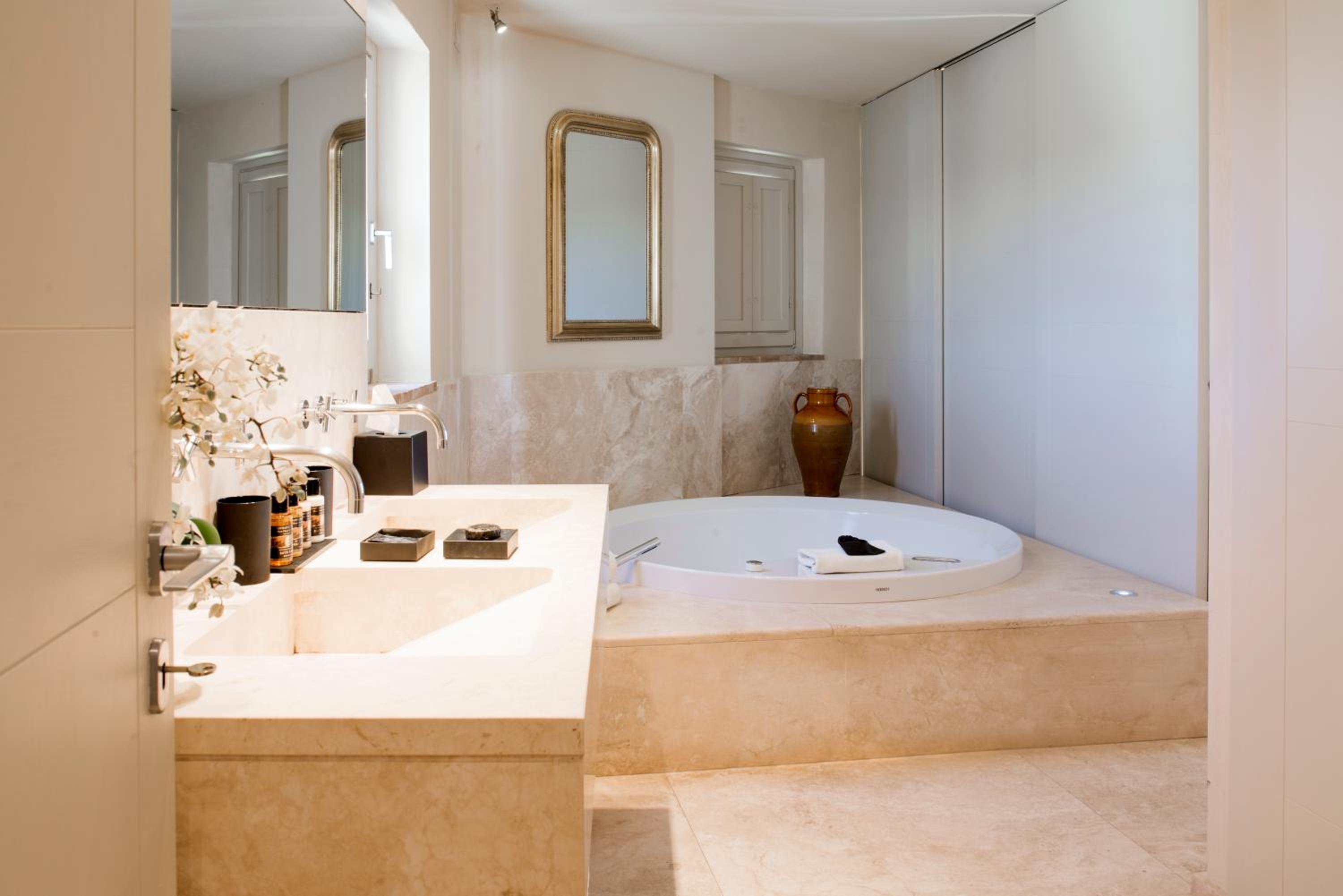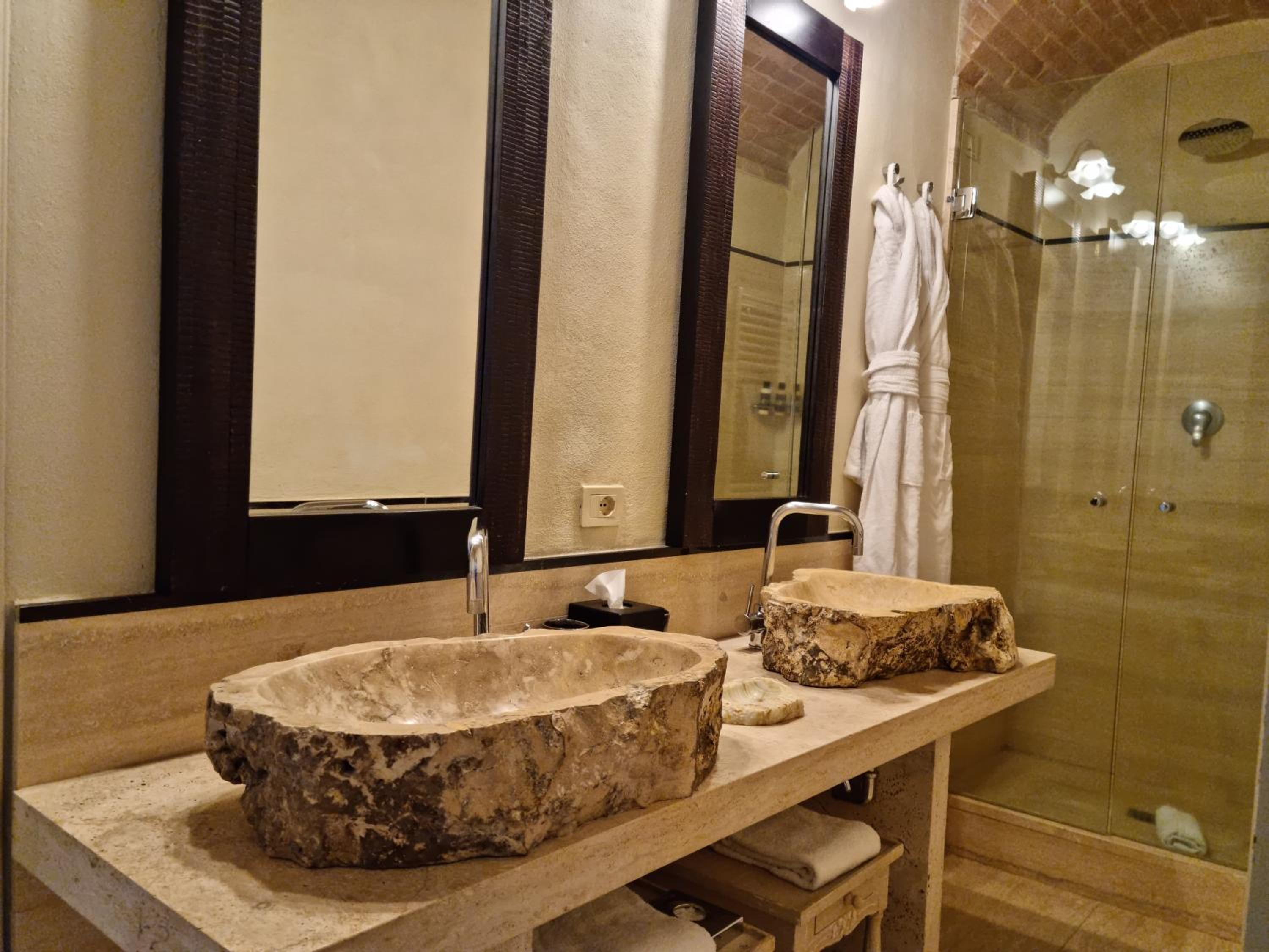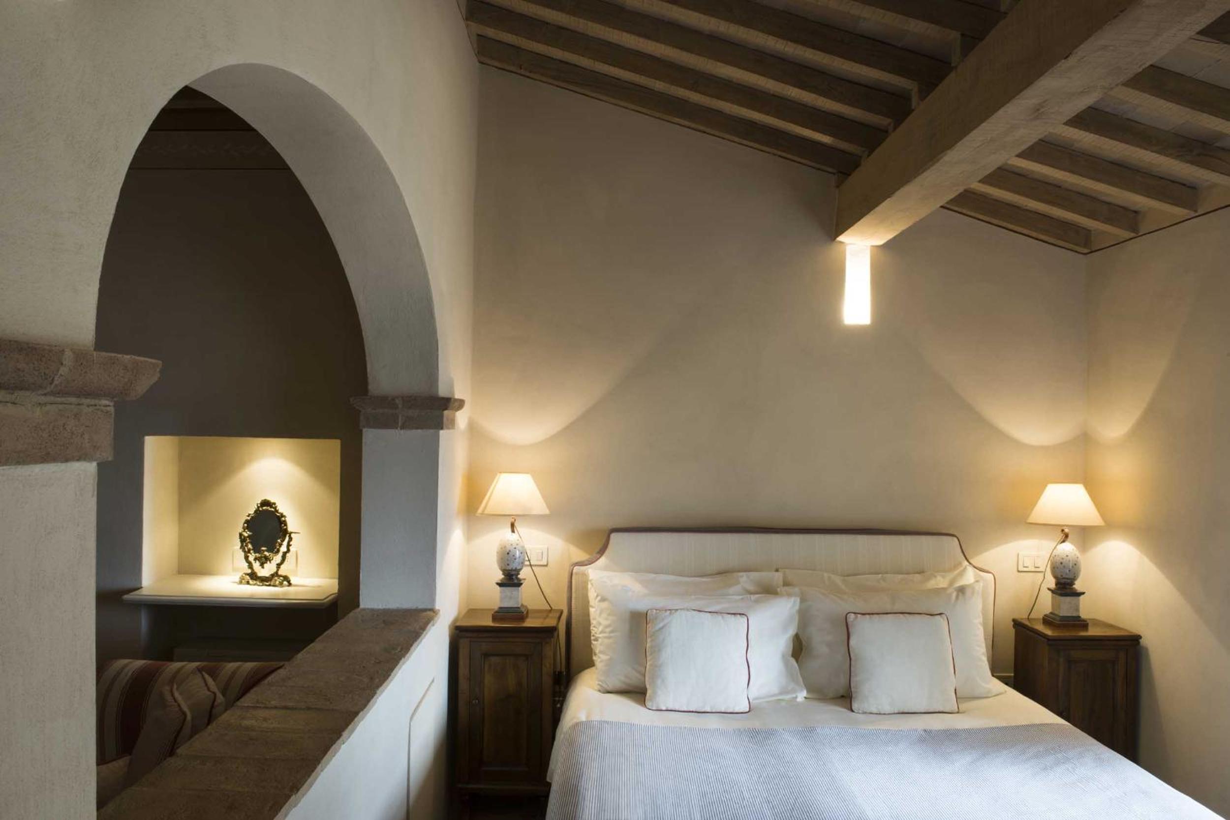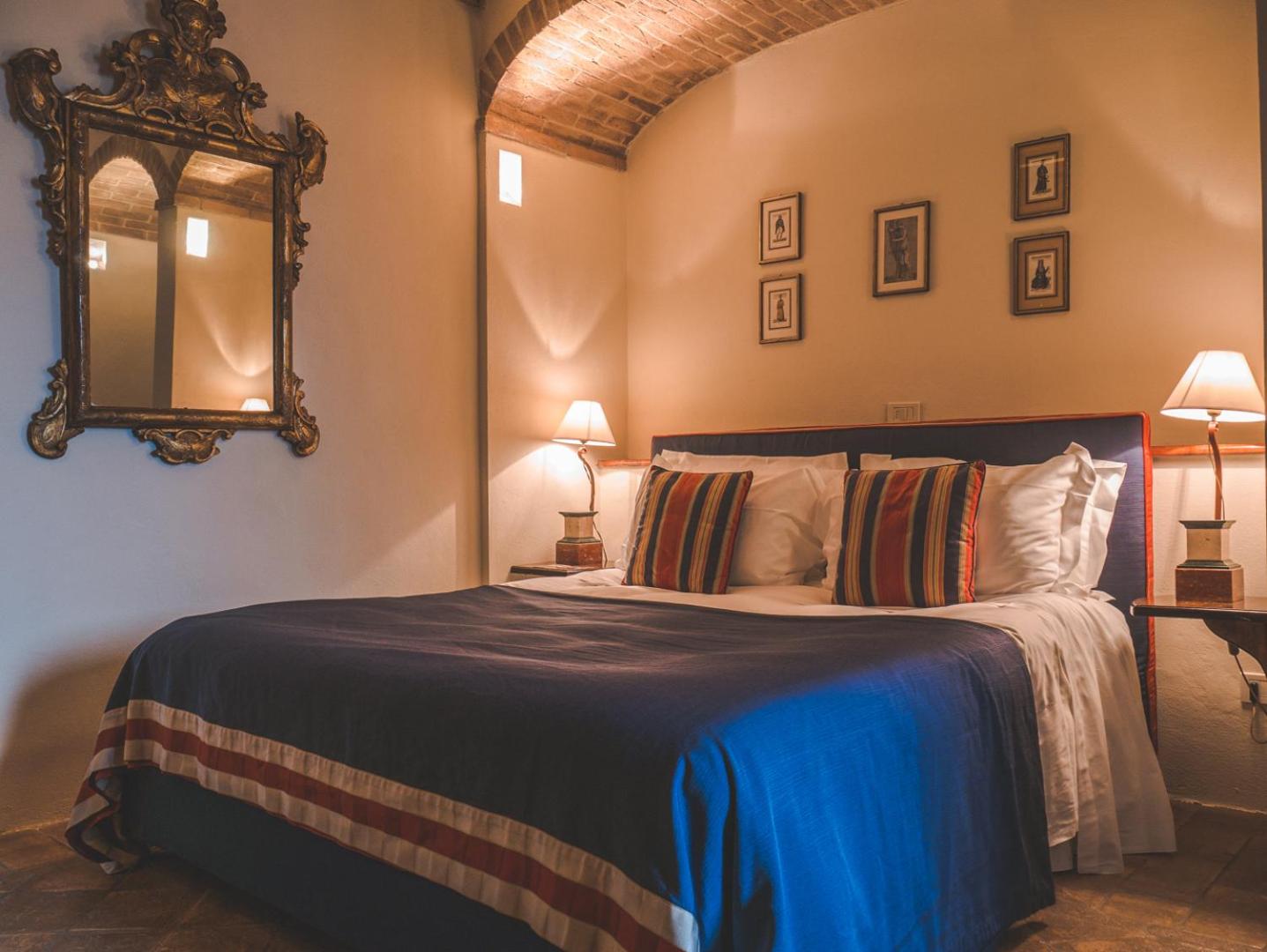 Indulge in rooms with stunning vistas of Tuscan vineyards, air conditioning, log fires, and marble bathrooms. Opt for the new wing for a private patio and a relaxing spa bath.