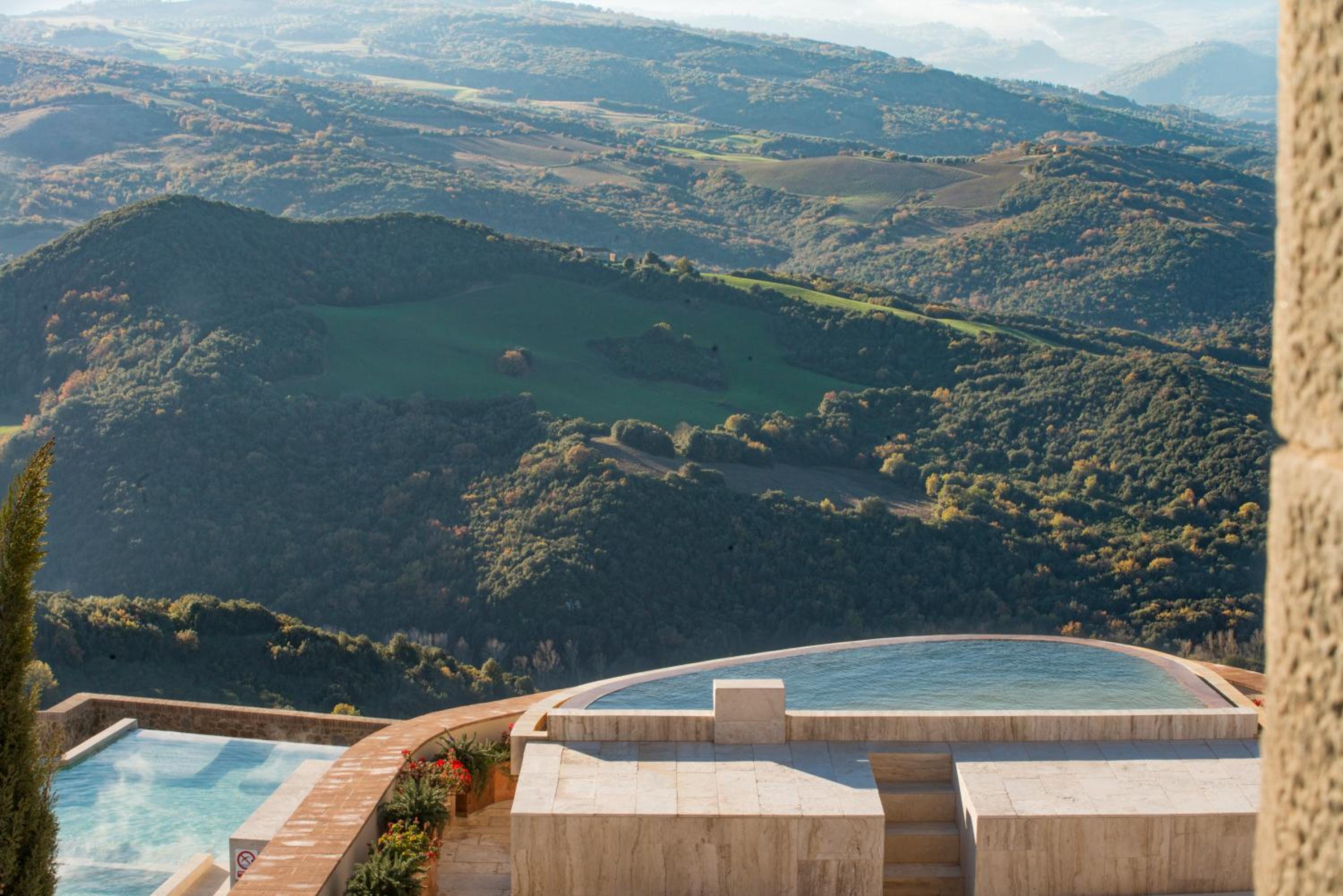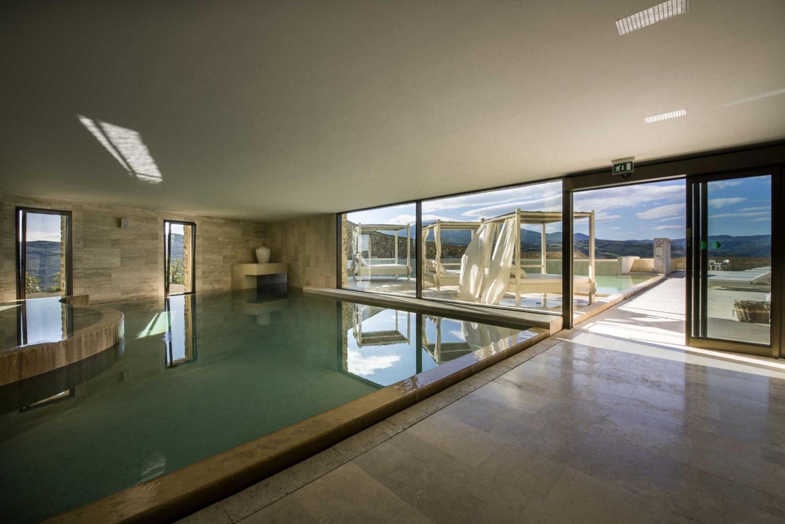 Experience the ultimate luxury at Castello di Velona Resort, Thermal SPA & Winery, perched on a hill with breathtaking views of Val d’Orcia.