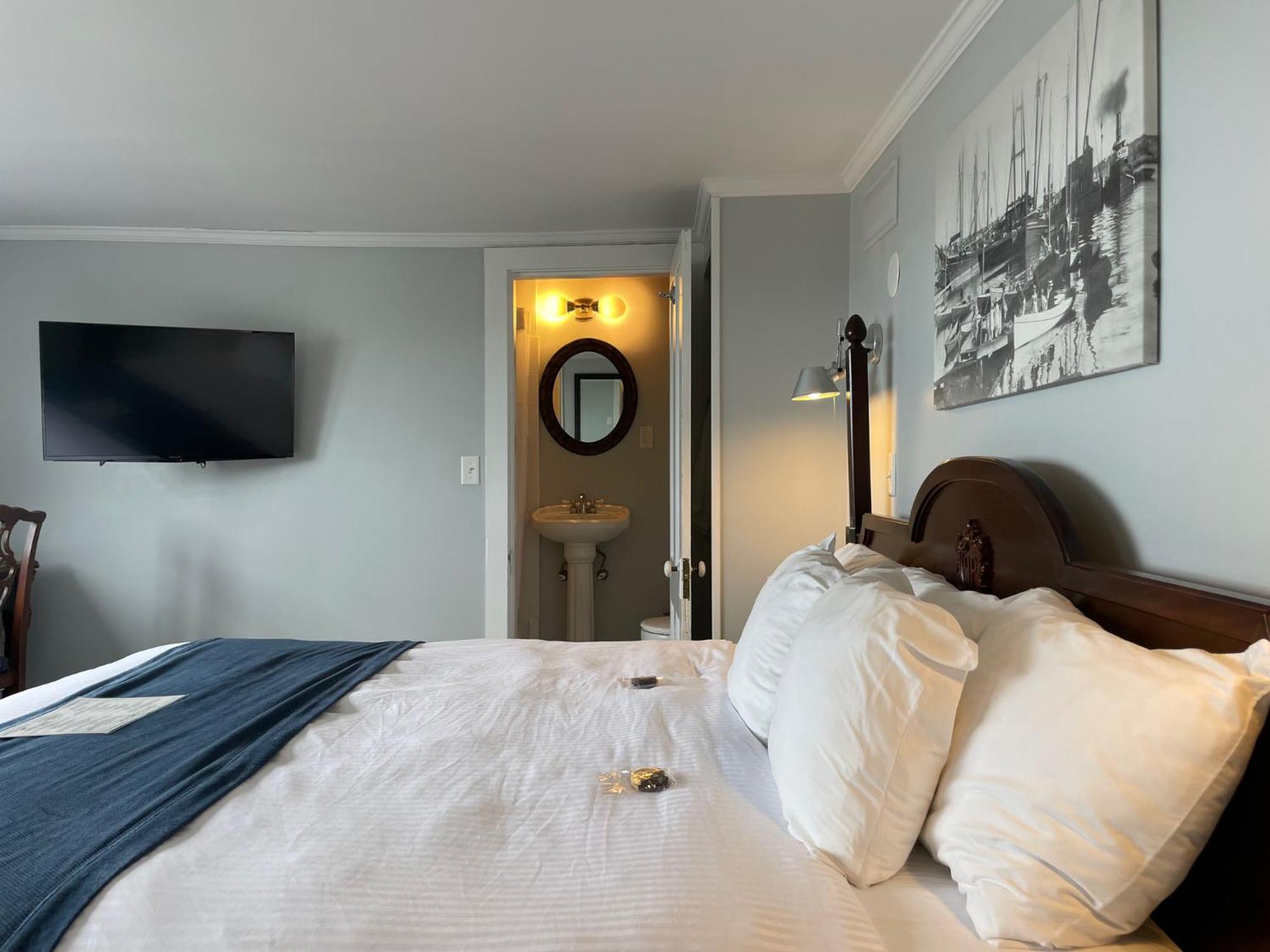 I read the reviews, and knew there was no elevator, but didn’t really think about carrying a large suitcase to the third floor of an old inn🤪. If this is an overnight stop on your trip, do yourself a favor and pack a carry on. Otherwise the inn was lovely. Room was small but comfortable, great view of the ocean. The staff could not have been nicer. We had dinner there, it was delicious. Our waitress was Nicole, very personable and engaging. We were lucky to be there on a Thursday, very good piano player who sang too.