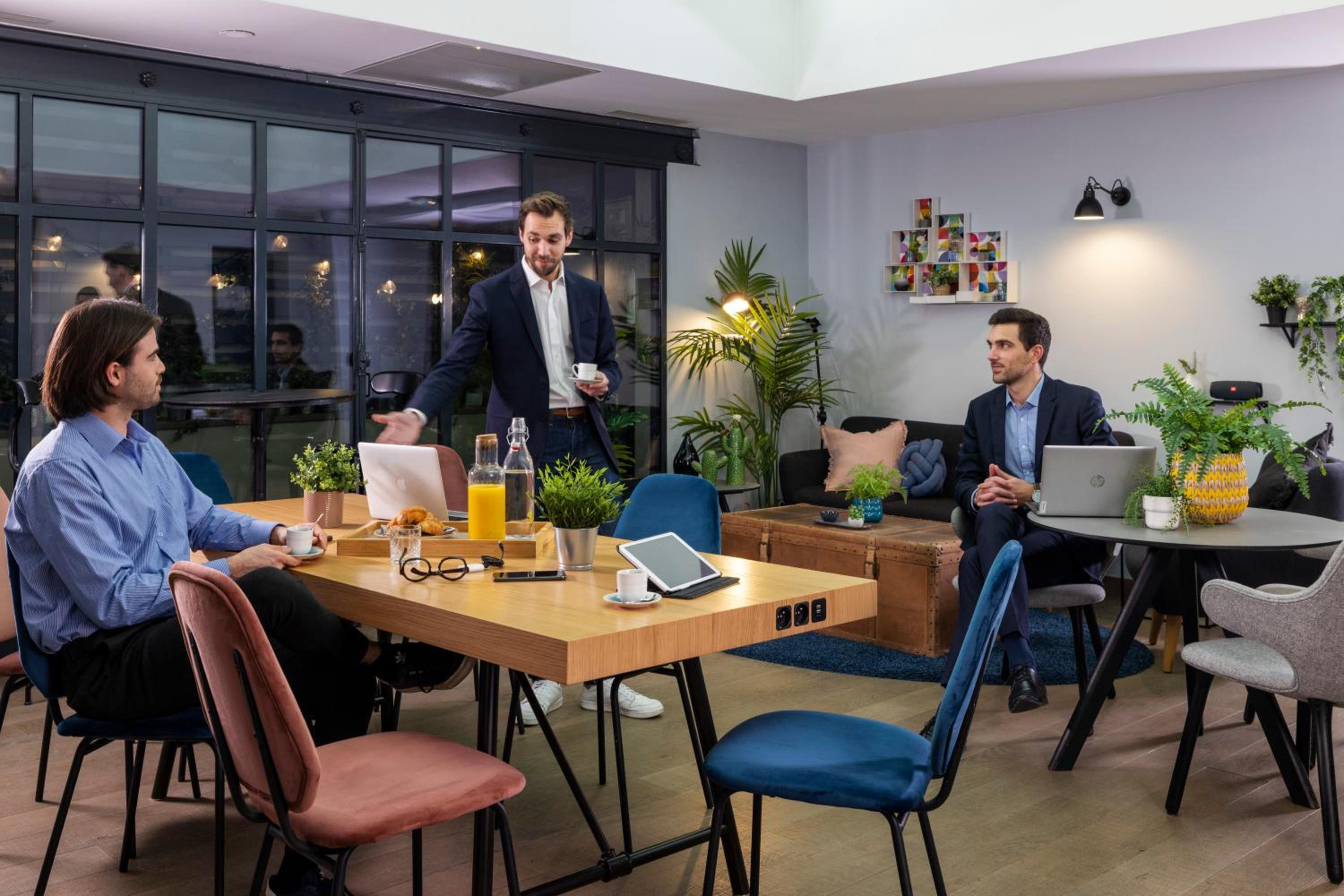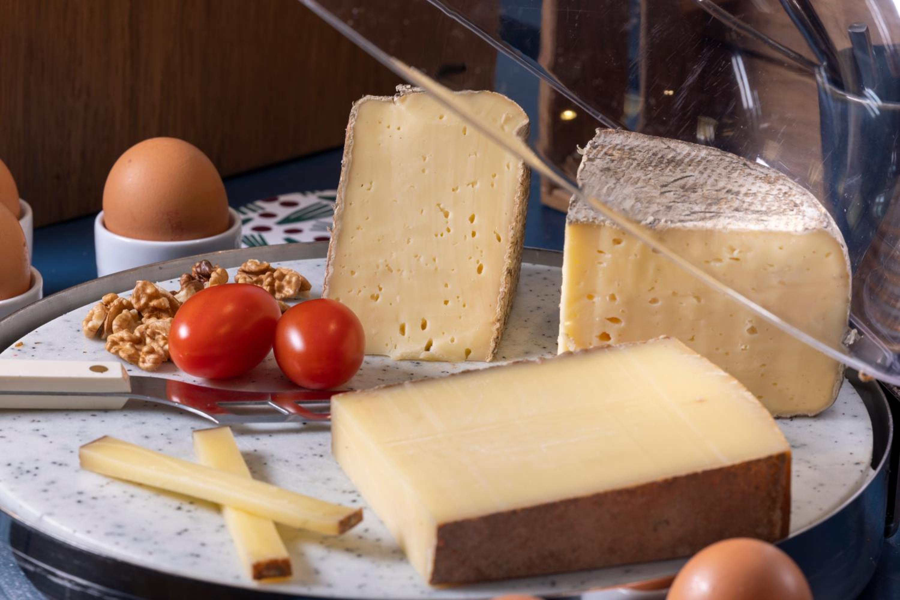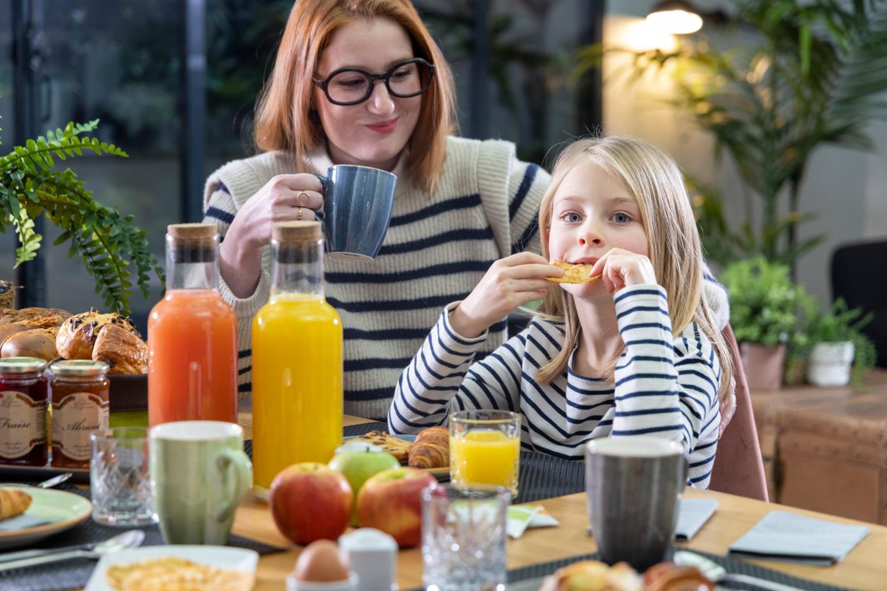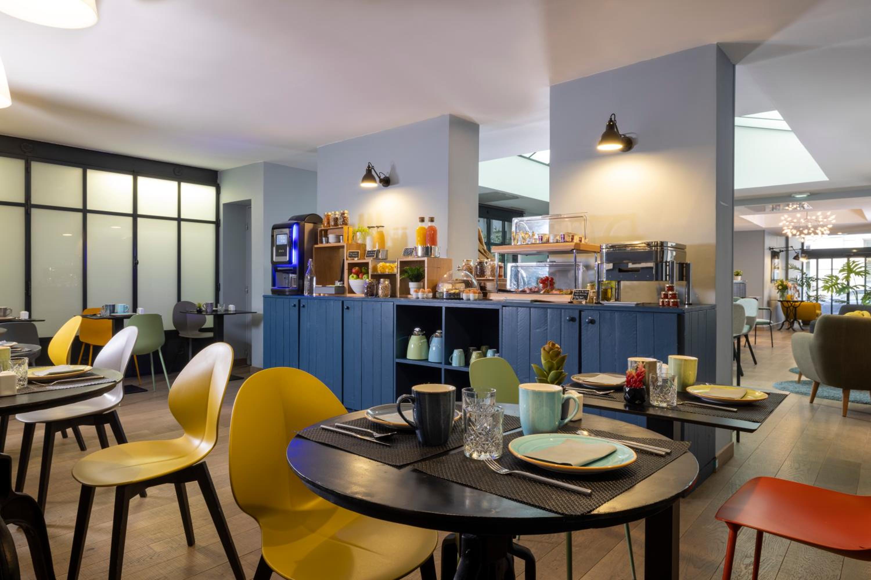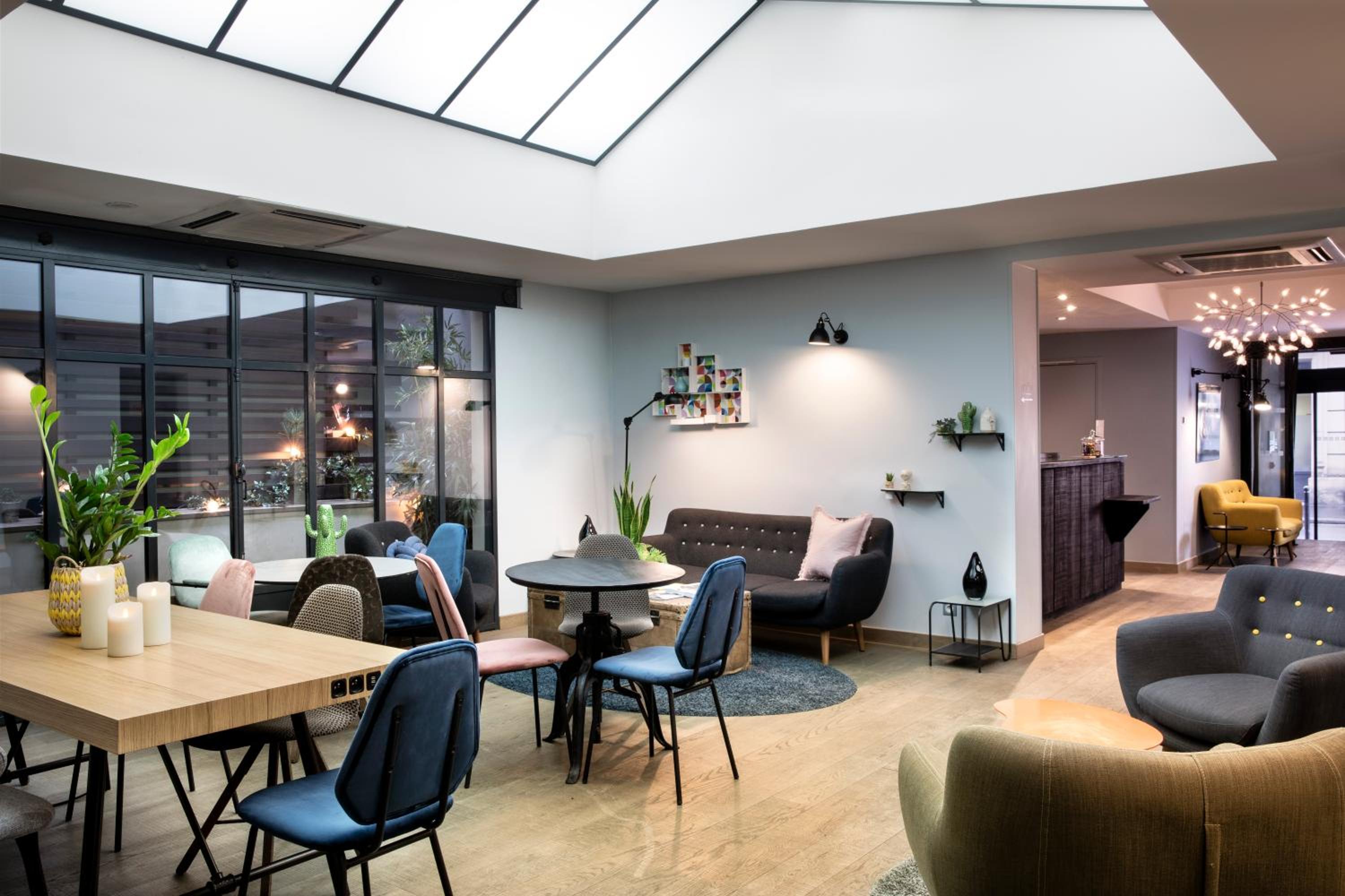 Start your day with a delightful buffet breakfast featuring local and organic products, as well as a cheese plate. Enjoy a cup of coffee under the hotel's beautiful stained-glass roof.