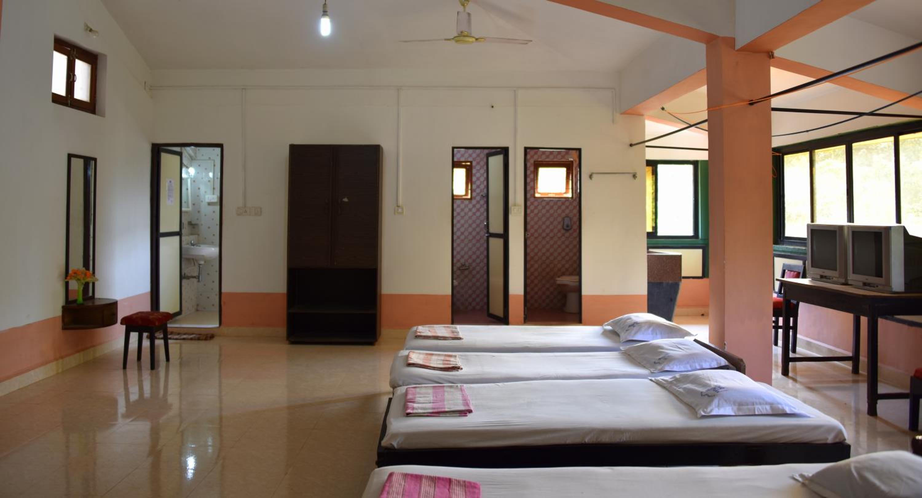 The room was very small, the picture showed AC but there was no AC in the room during the month of March it was difficult. The entire property was misleading, nothing like the pictures in booking.com, the room was not clean it had beach sand throughout. They didn't even bother to clean the washrooms, it was throughout wet and the WC is indian cum western which was extremely inconvenient/uncomfortable for me personally. Either it should be indian or western. They had nil options for breakfast which is included in the room. They just told us that we can only pick one either two slices of bread or masala omelette or aloo partha which are of only one qty each per person. The roads are extremely small if you are going in a car, there is no proper place to park. It had cockroaches and the cupboards were dosty. They didn't even provide us a proper bedsheet, it was stinking, the room was damp I think they didn't change the bedspread and bedsheet post the previous guest. As we went in our own car we carried some cushions and bedsheets so we got saved. Overall an awful experience. Good that we just went for a weekend so we just stayed for 6-7 hours in that room. If you are coming for a proper Goa trip, please don't opt for this property.