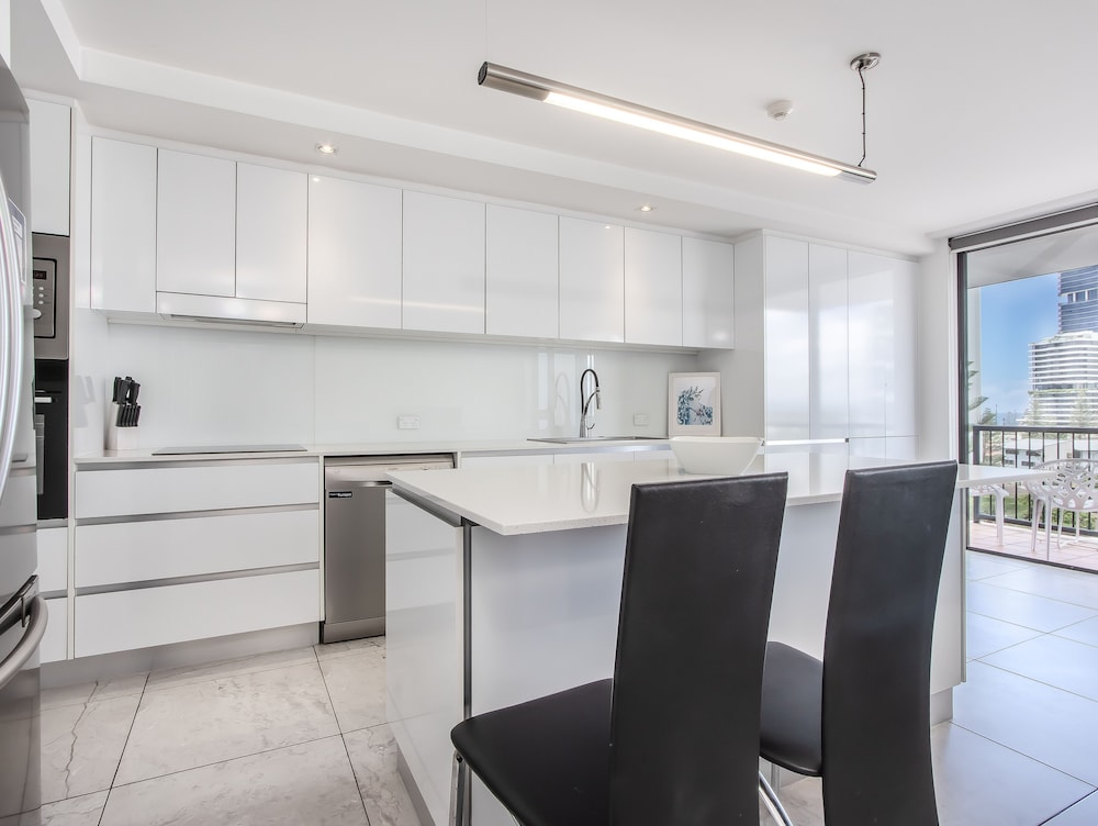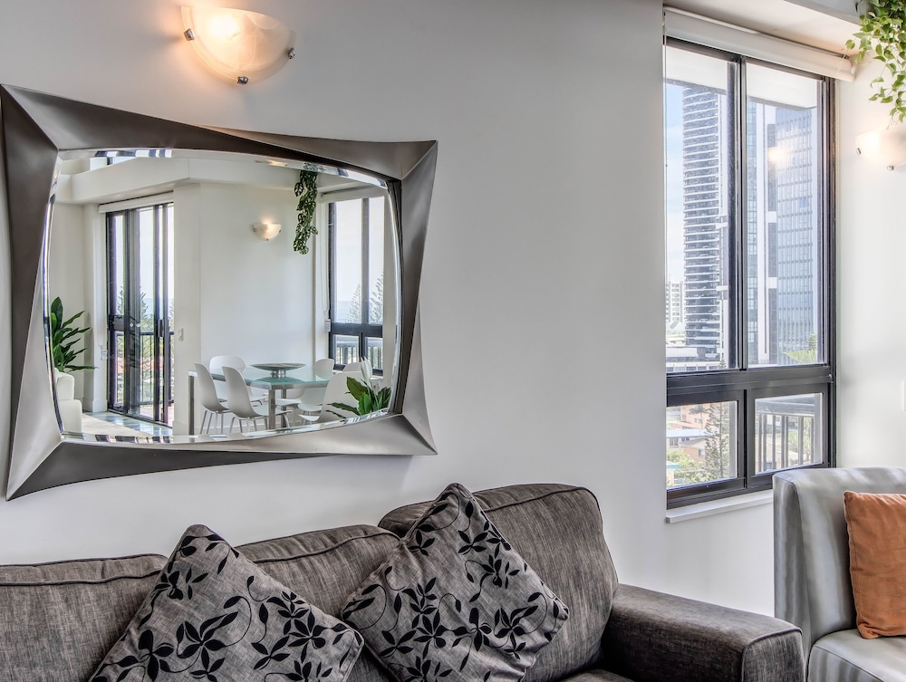 Very conveniently located for beach, shopping and dining options. Literally a 3 minute walk to the beach, diagonally across from Pacific Fair Shopping Centre, and surrounded by food/ dining options, including Toms downstairs which was great for breakfast/ lunch and coffee.