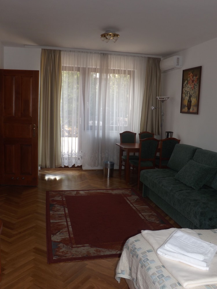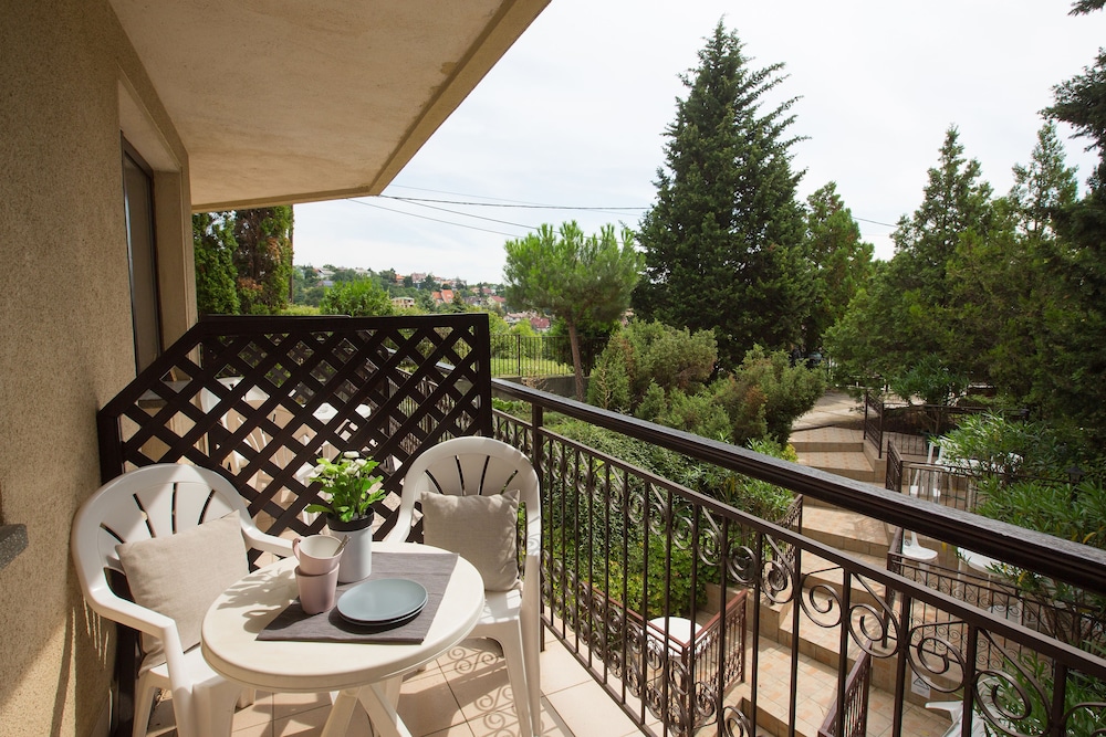 Would definitely stay here again. Very quiet and pleasant area with gated parking. One bus will take you to the center of Budapest.