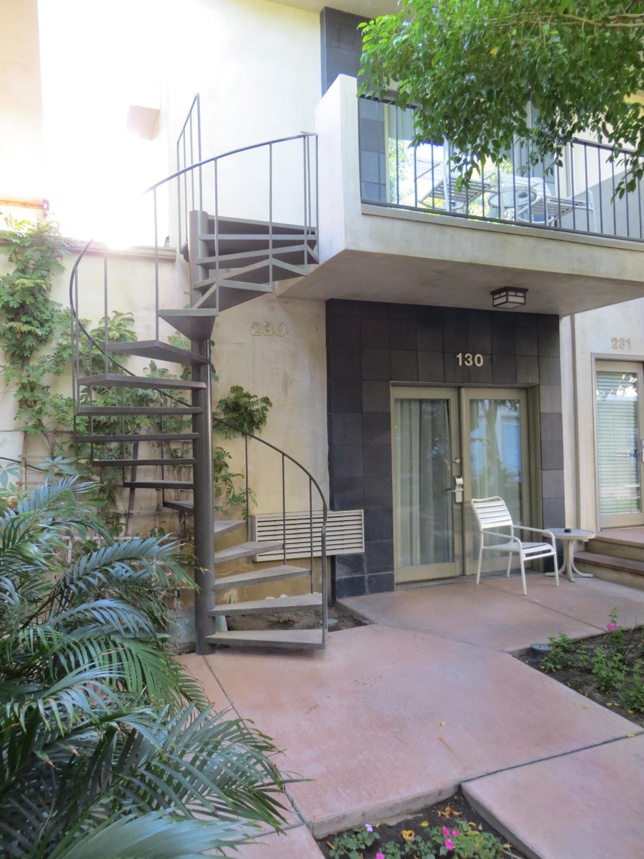 The hotel has a retro vibe to it. Our check in staff was great, very friendly! Room was clean and quiet. The large hot spa was right outside our door which was very convenient. Very cute place, would stay there again!
