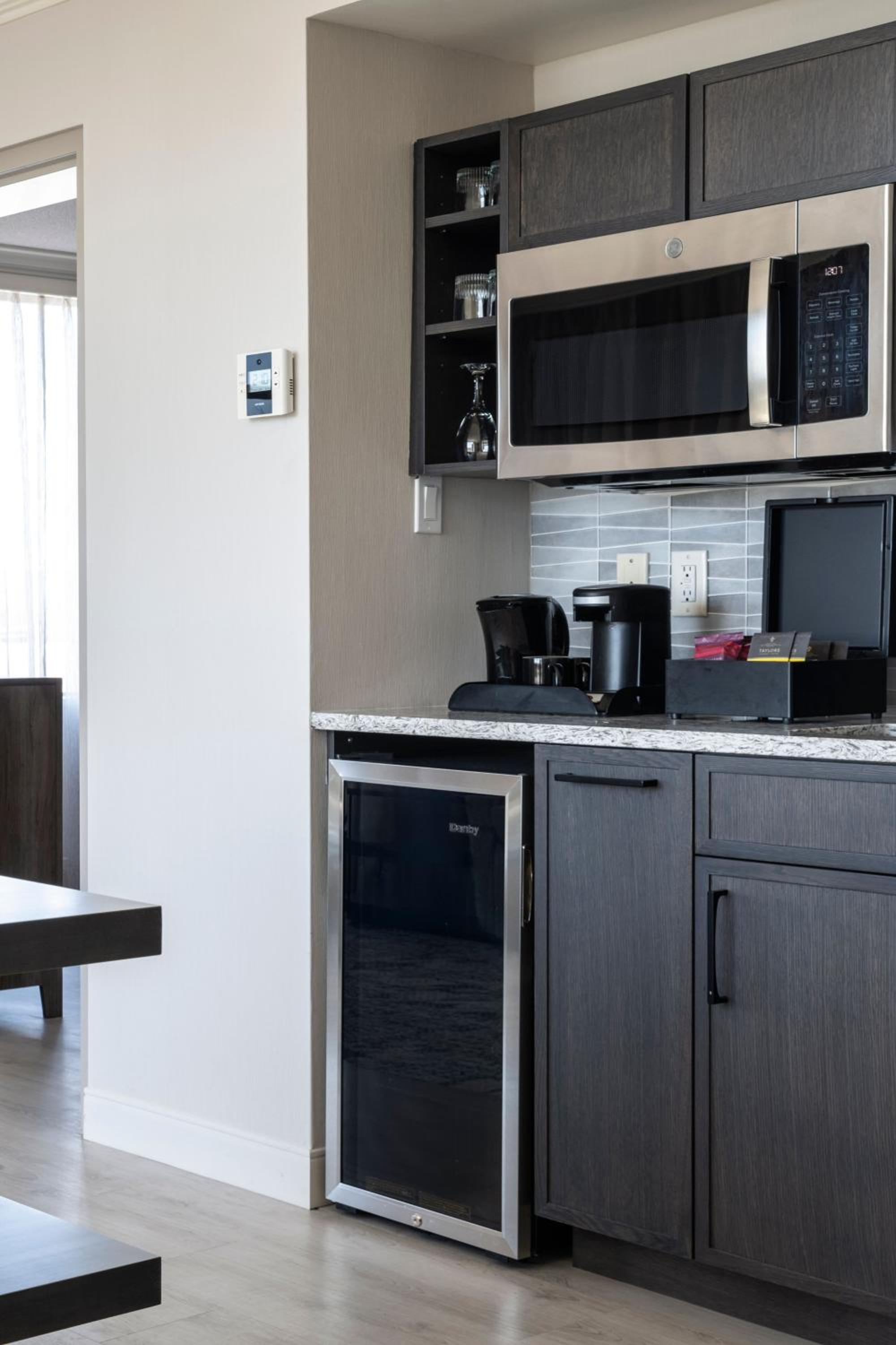 Only one comfortable chair in room…2 people…could use another comfortable chair. If watching tv it was not central to room…difficult to watch from chair across the room and hard on back to sit in bed and watch. Ice machines only every 2nd floor. You had to be very quick with your room key in elevator before selecting your floor or you would bypass your floor. Would have been nice to have complimentary coffee in lobby.