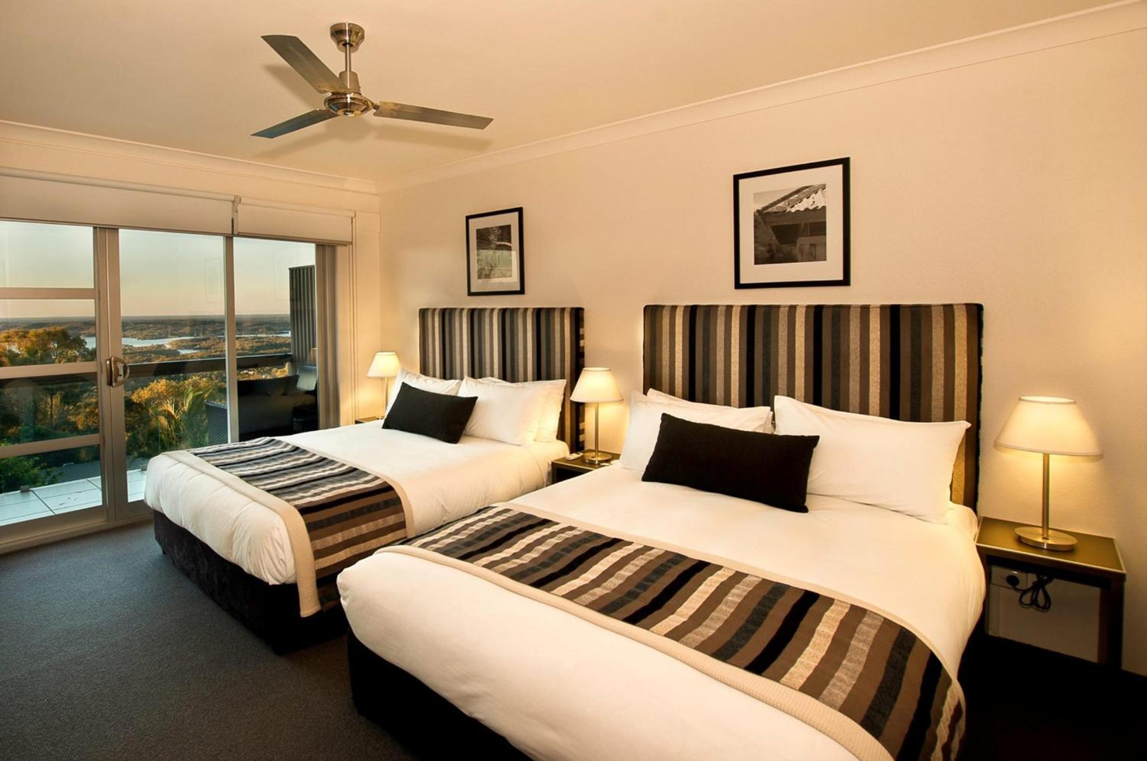 The modern rooms at Mercure Clear Mountain Lodge are a blend of comfort and style, complete with air conditioning and plasma TVs. Step out onto your private balcony to soak in the stunning vistas of the surrounding mountains and Moreton Bay islands.