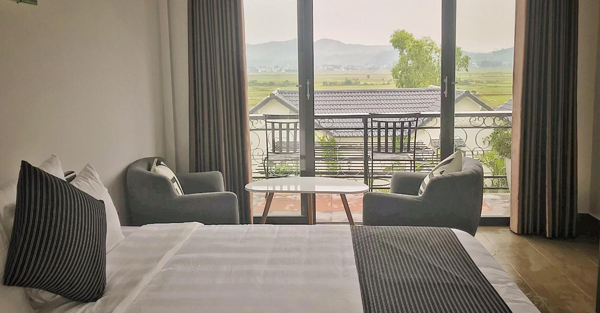 La chambre et balcon était comfortable ainsi que la literie, avec une magnifique vue sur les montagnes Karstique, les rizières et la piscine. Le jardin bien fleurie et ça ajoute au charme de cette endroit.