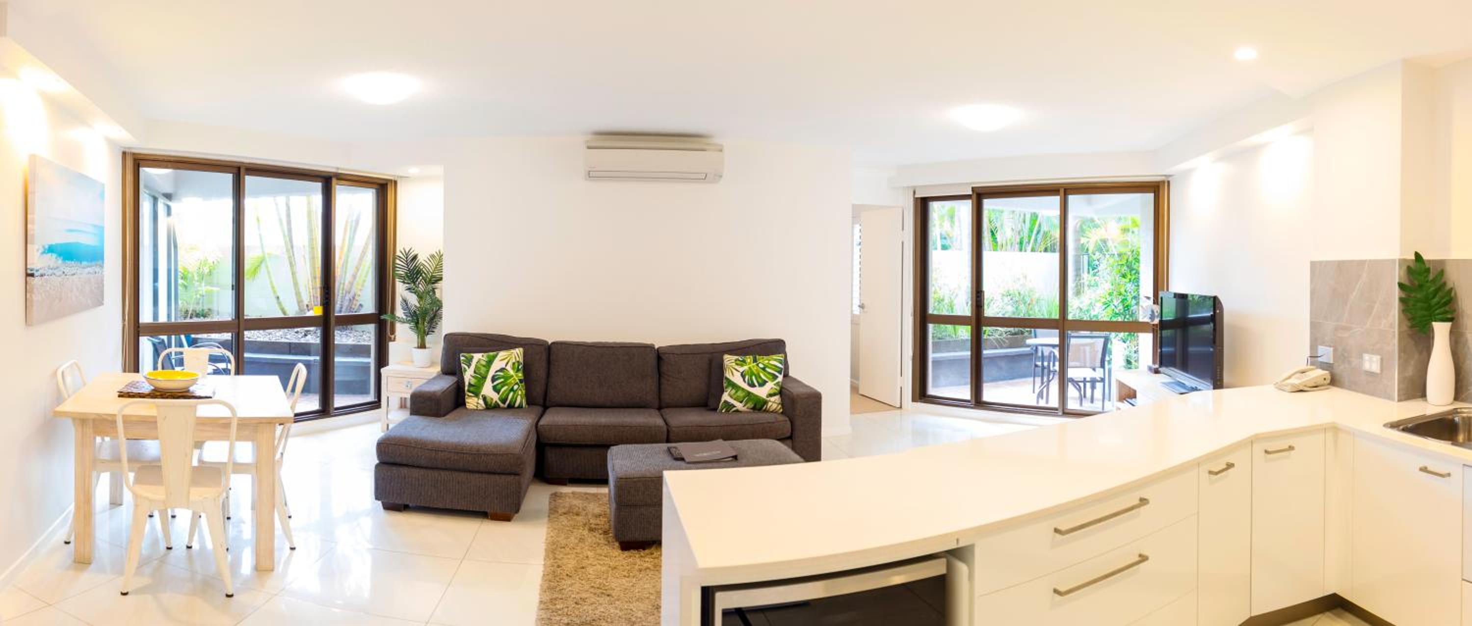 With kitchenettes, balconies or courtyards, and cable TV in each apartment, along with laundry facilities and en suite showers, your stay is made comfortable. Explore Noosa National Park just a short walk away, and visit Australia Zoo within a 45-minute drive.