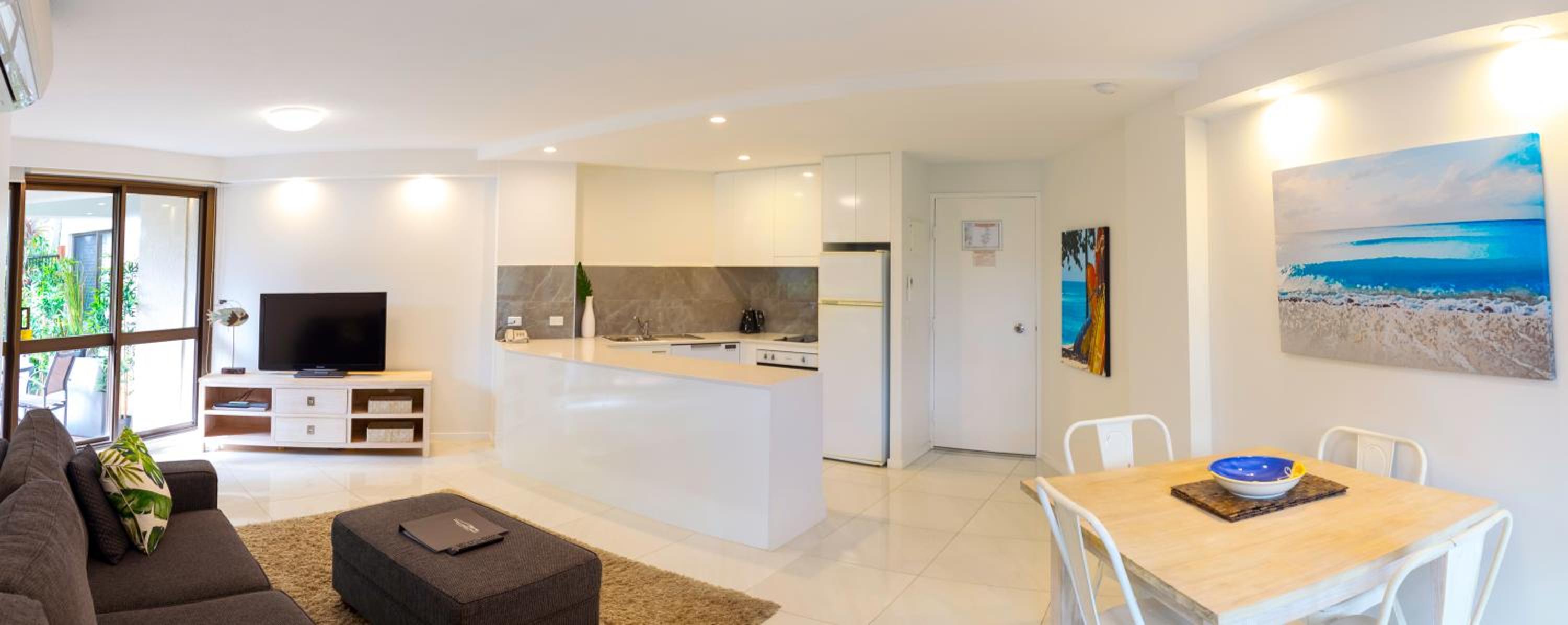 The accommodation was spacious, clean and well kitted out. The location was outstanding and being able to park on site in the underground car park was fantastic. The staff were pleasant and accommodating and you are a stones throw from the beach, restaurants and shops.