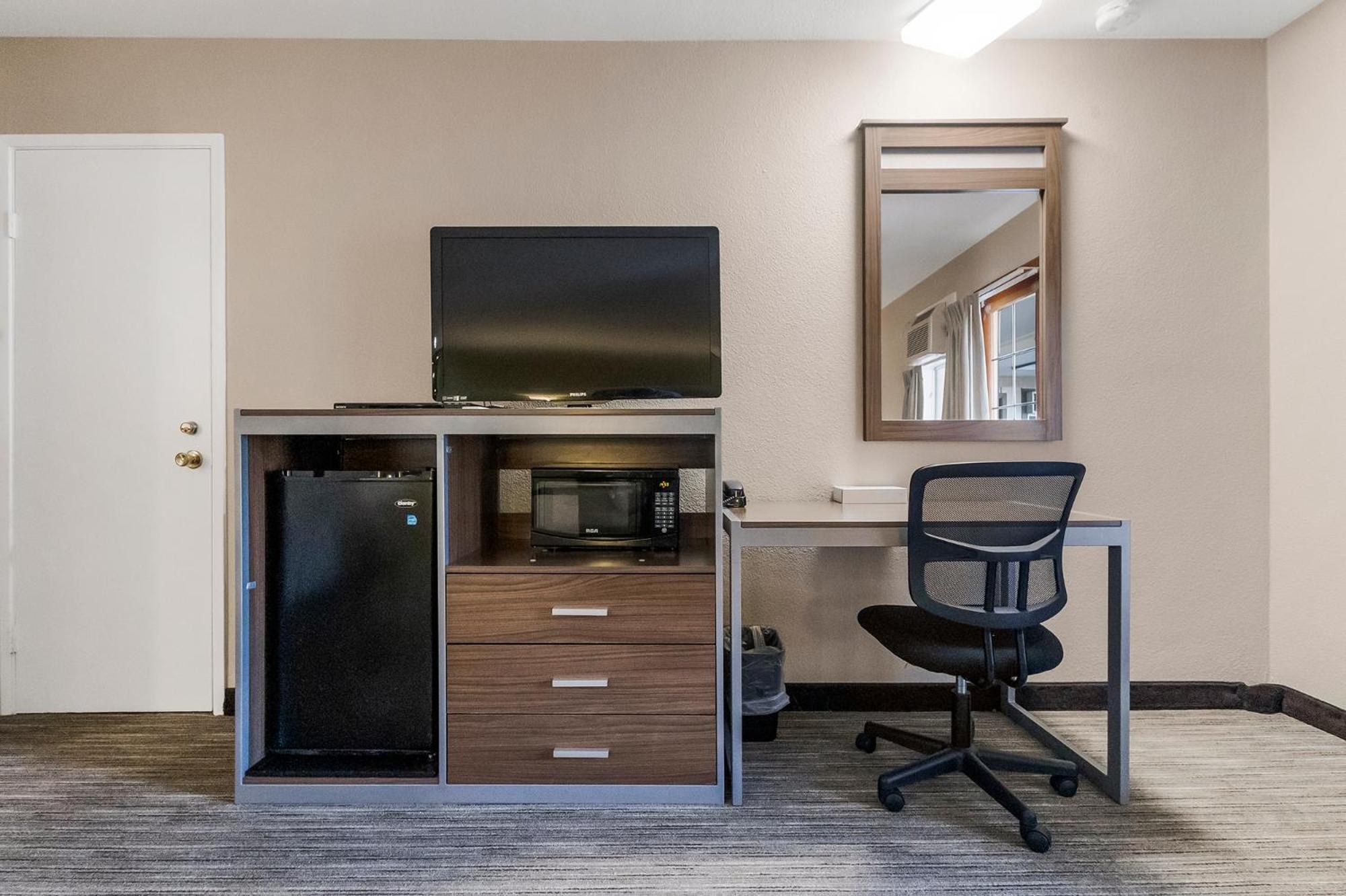 They said they were dog friendly . Found out I had one little poodle pup, and a during boxer mix I had with me they charged me 100 for a pet stay fee on top of the room . I paid for the first night through booking com it was easy more than they advertised for it. The second night I paid for I had invited my brother and his girlfriend over to see me at the room. they brought their little dog with them so the dogs could visit the supposed manager Ginger busted in the room without permission seen scrapping from where my brother rolled his legal marijuana into a joint and tried to throw them out when I was not there saying that they were smoking in the room because he rolled a joint on the table and smoked it outside then charged me $475 on top of the $110 from booking.com and on top of the $100 that they took for pet fee so all together they charge me $700 for one night at that hotel room
