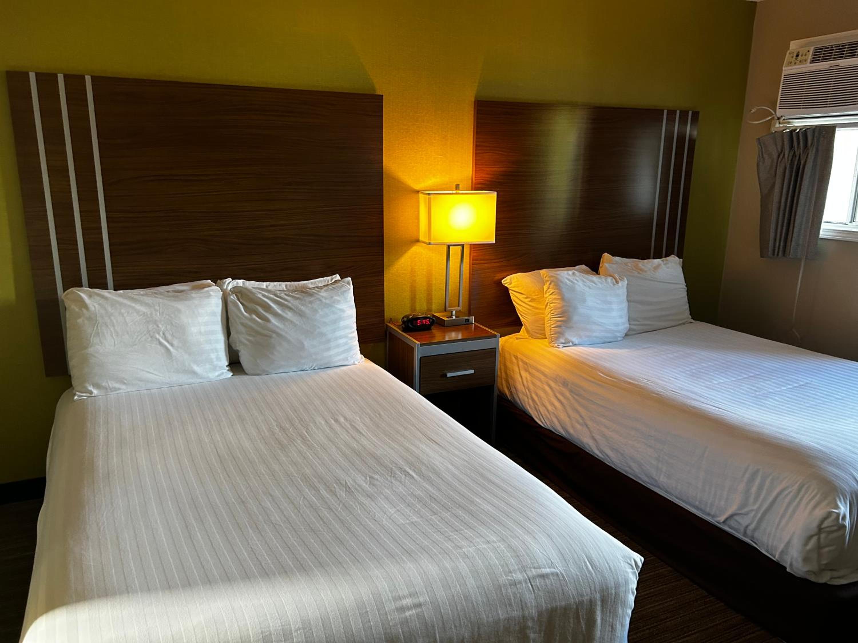 Found a long black hair on bedding. Coffee could be better. AC up high and a wall banger style. Noisy. Turned off to sleep and room became stuffy. One 2 x 2 window, so easy for room to become stuffy. Overall a nice stay however.